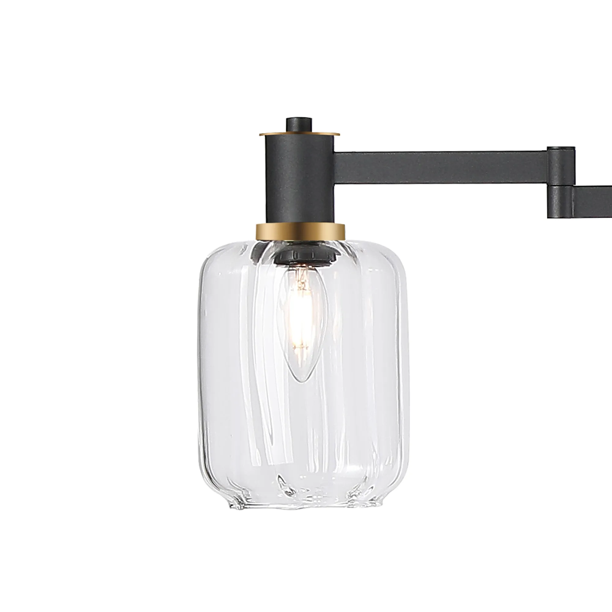Alberni Swing Arm Telescopic Linear Pendant 6 x E14 Brass/Satin Black/Clear Twisted Cylinder Glass