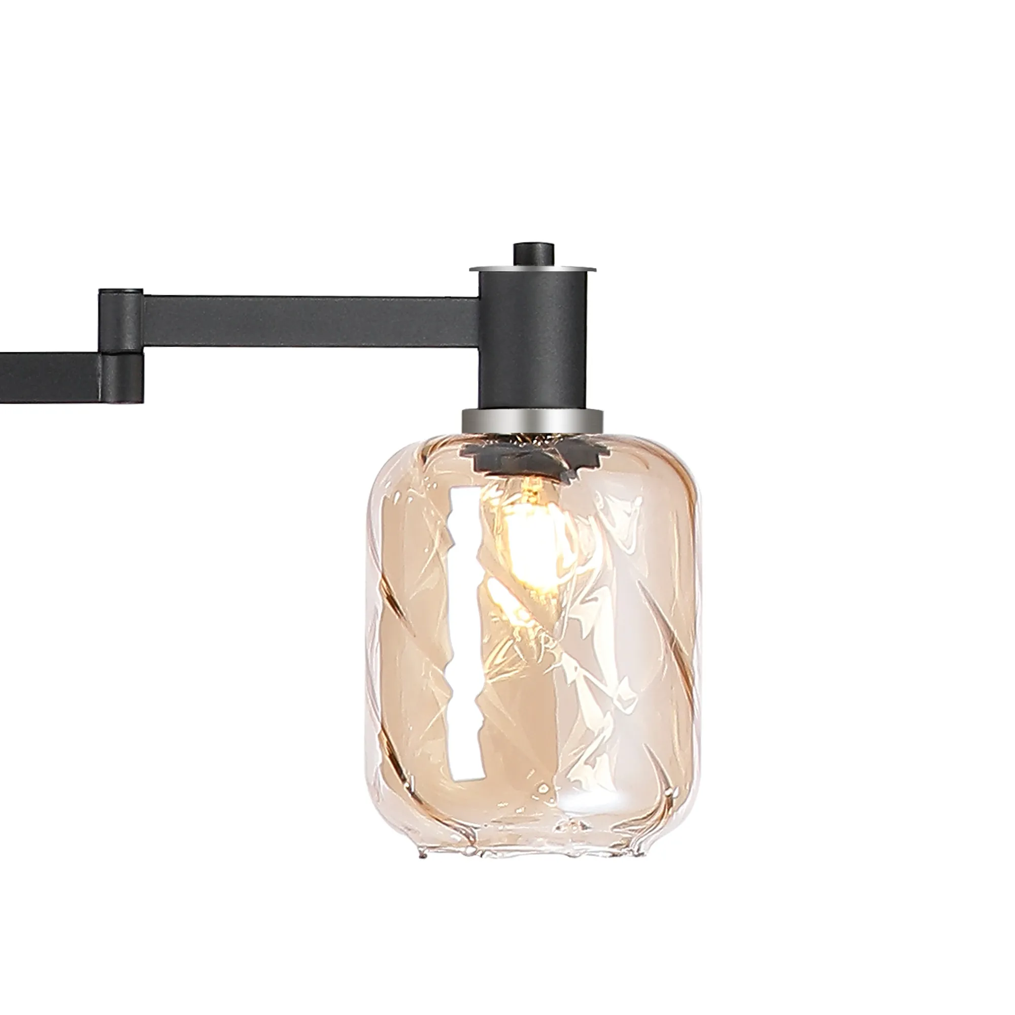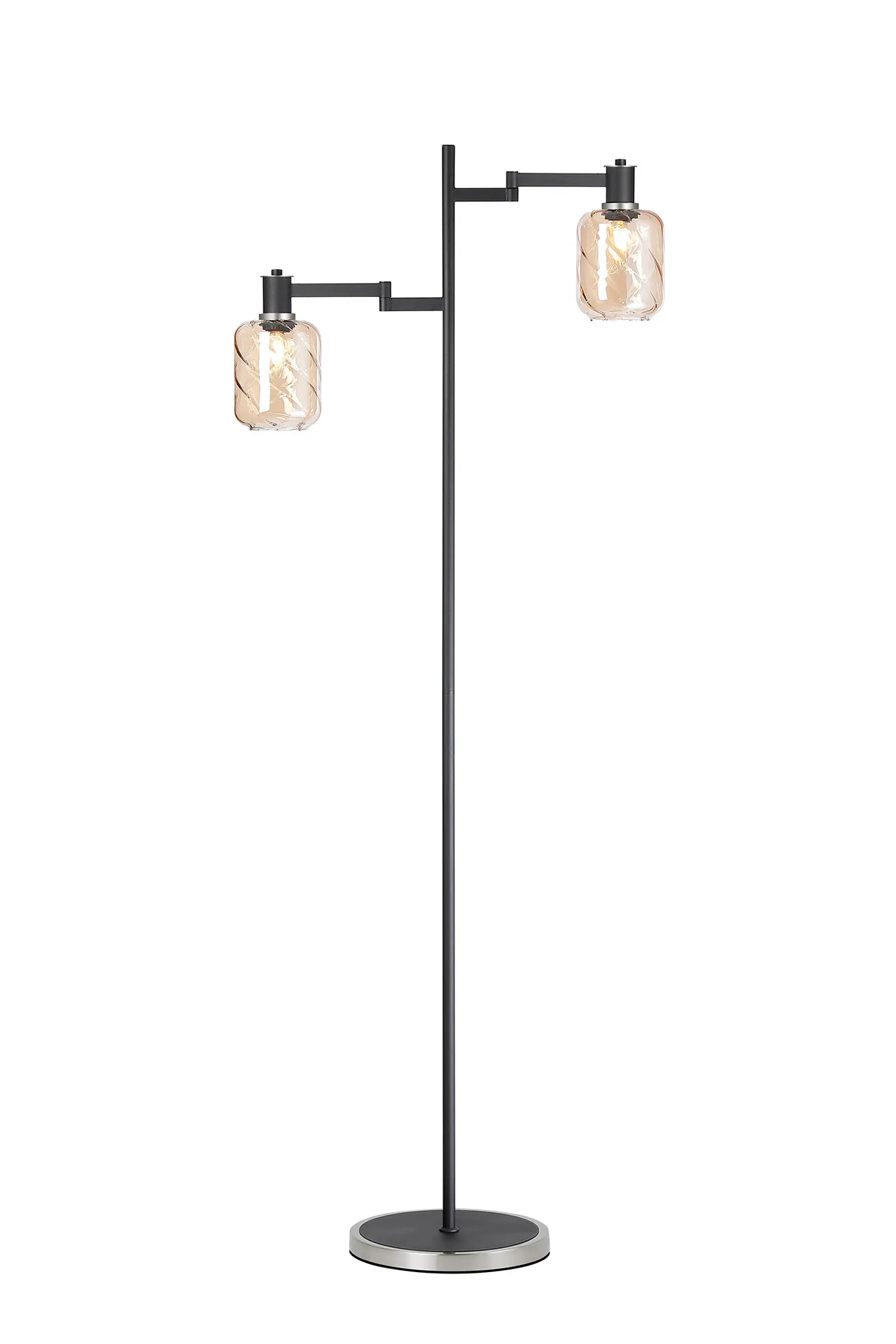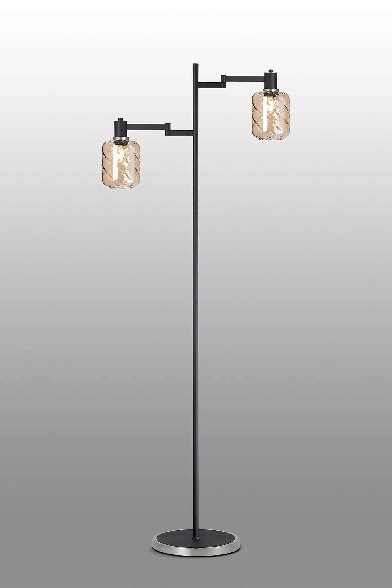 OTHER Alberni Swing Arm Floor Lamp 2 x E14 Satin Nickel/Satin Black/Amber Twisted Cylinder Glass
