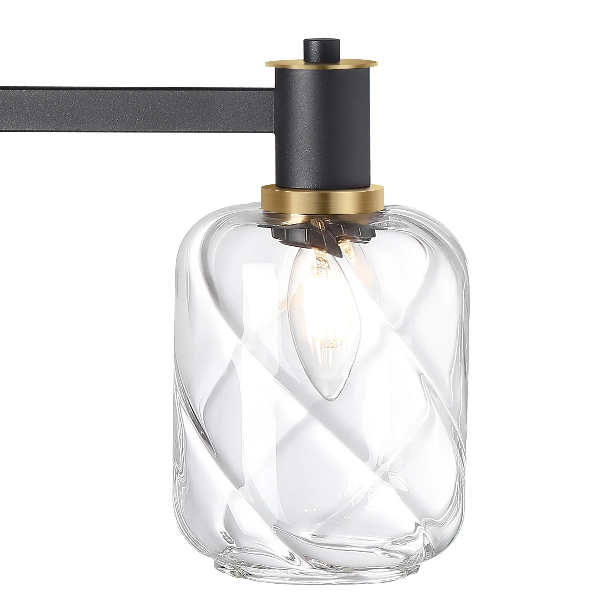 Alberni Swing Arm Telescopic Linear Pendant, 6 Light E14, Brass/Satin Black/Clear Twisted Cylinder Glass