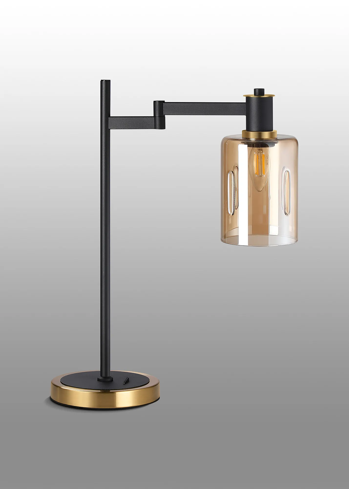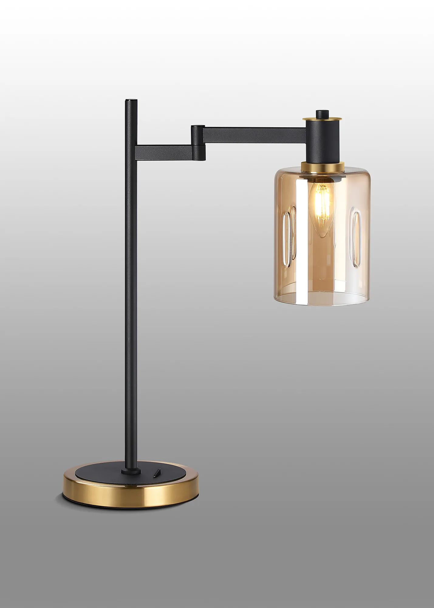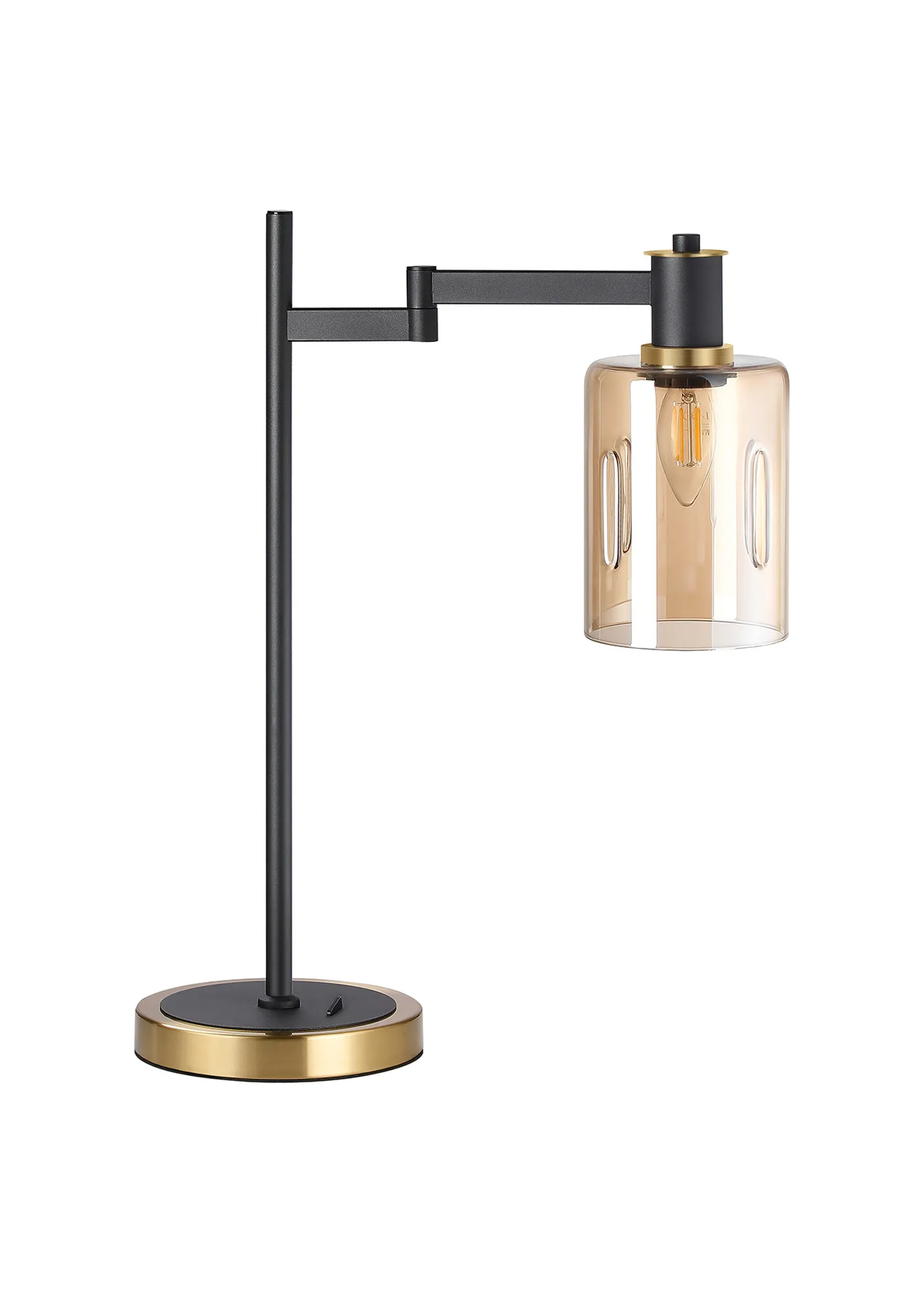 OTHER Alberni Swing Arm Table Lamp 1 x E14 Brass/Satin Black/Amber Uniform Dimple Cylinder Glass