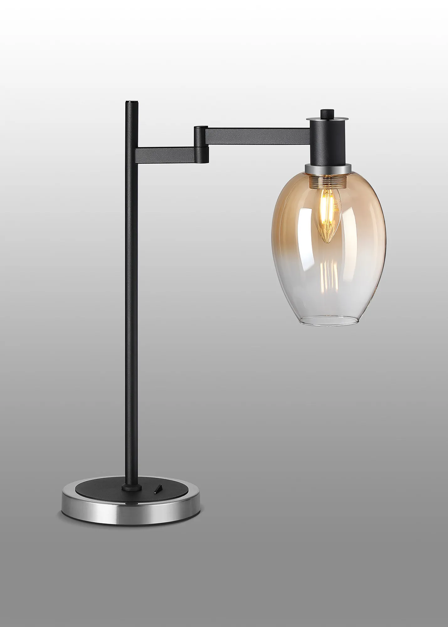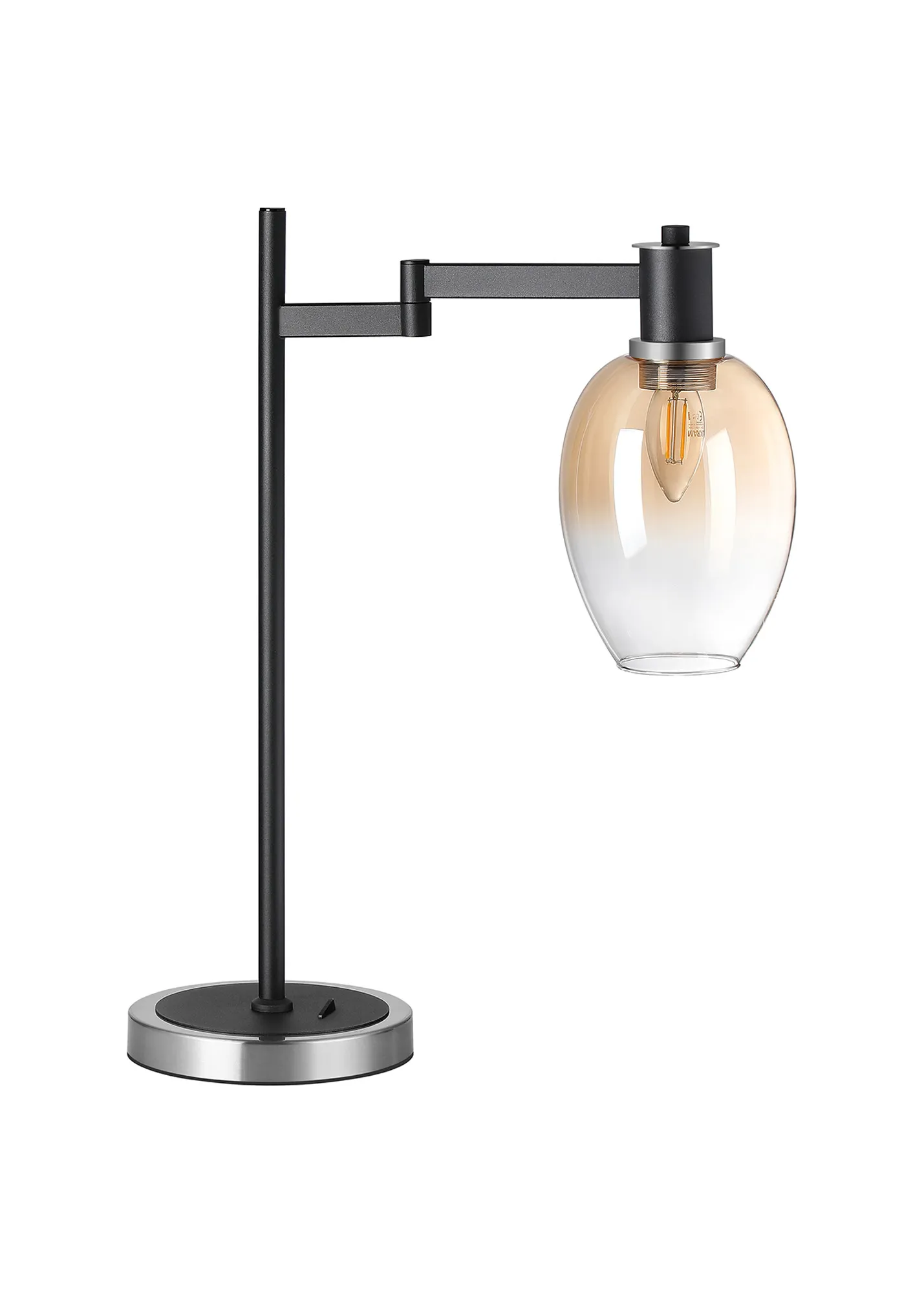 OTHER Alberni Swing Arm Table Lamp 1 x E14 Satin Nickel/Satin Black/Amber Fade Wine Glass Glass