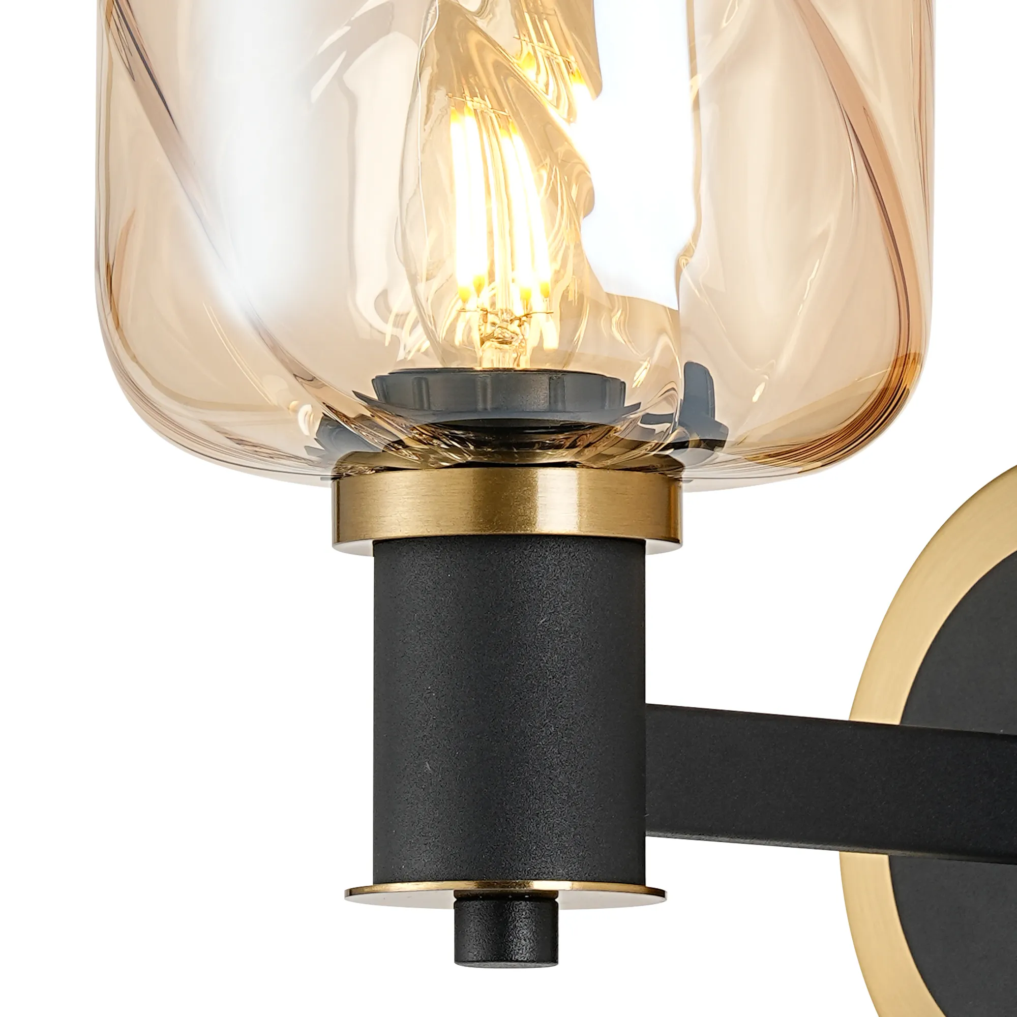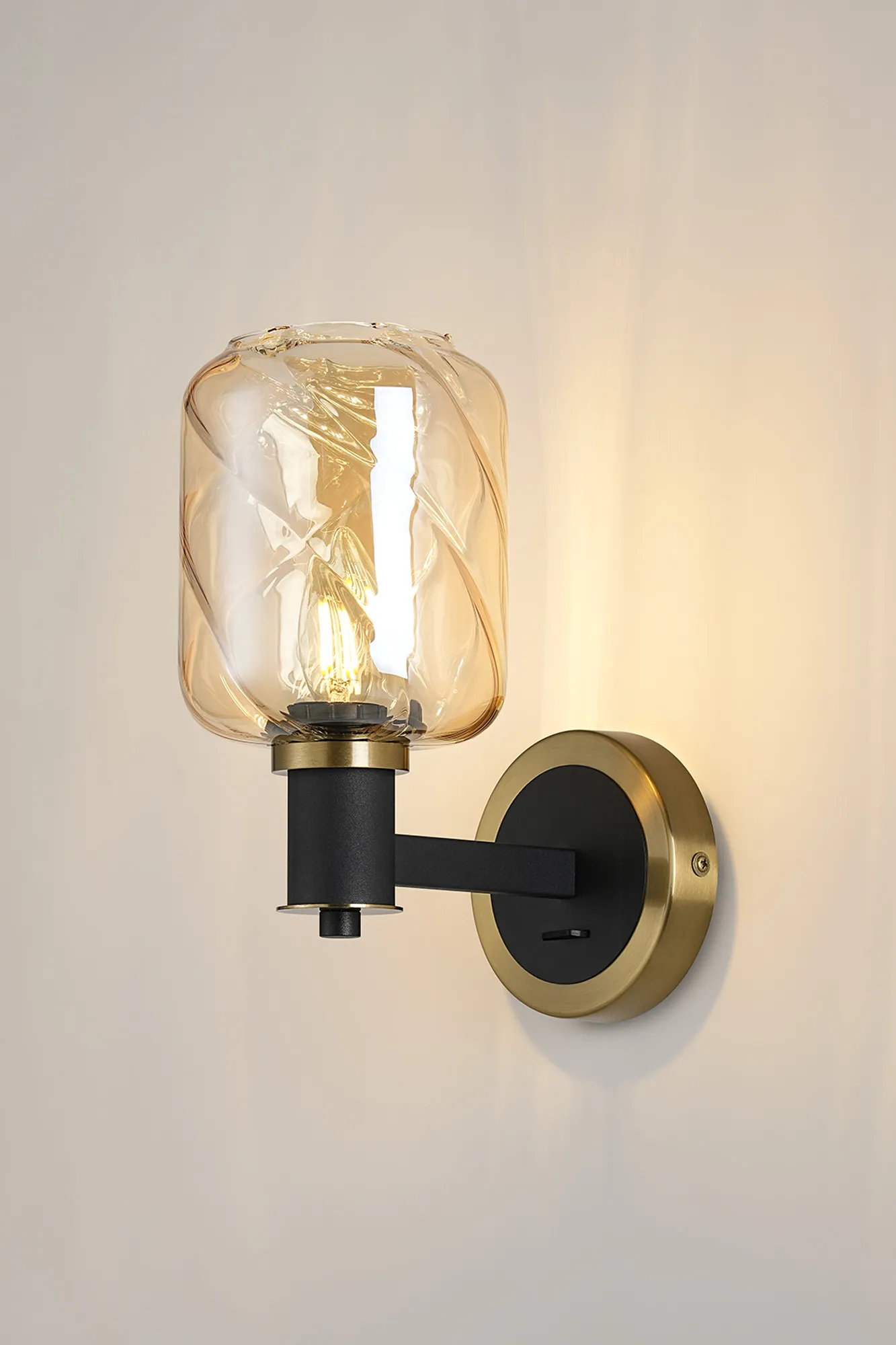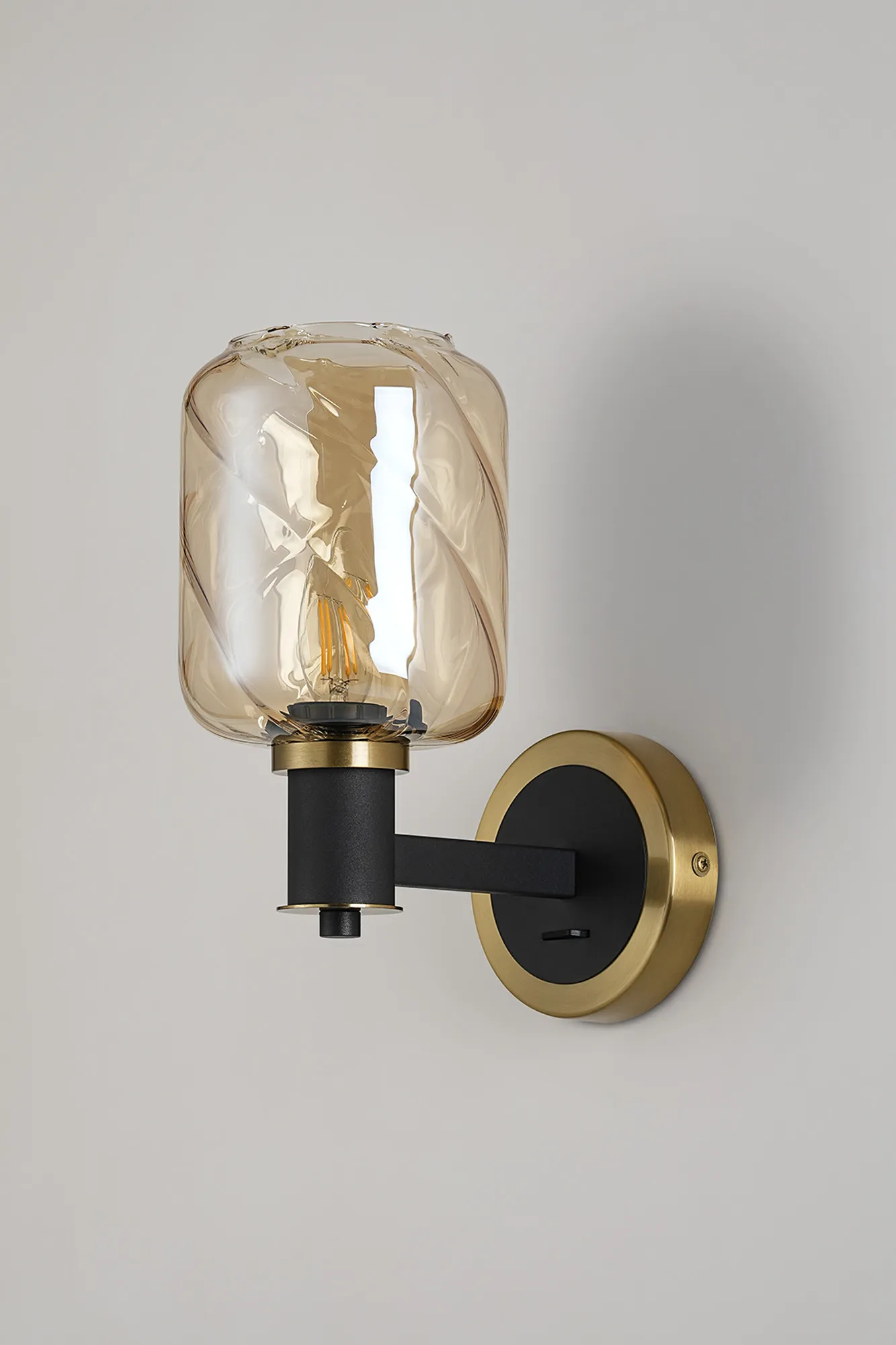 OTHER Alberni Wall x 1 x E14 Brass/Satin Black/Amber Twisted Cylinder Glass