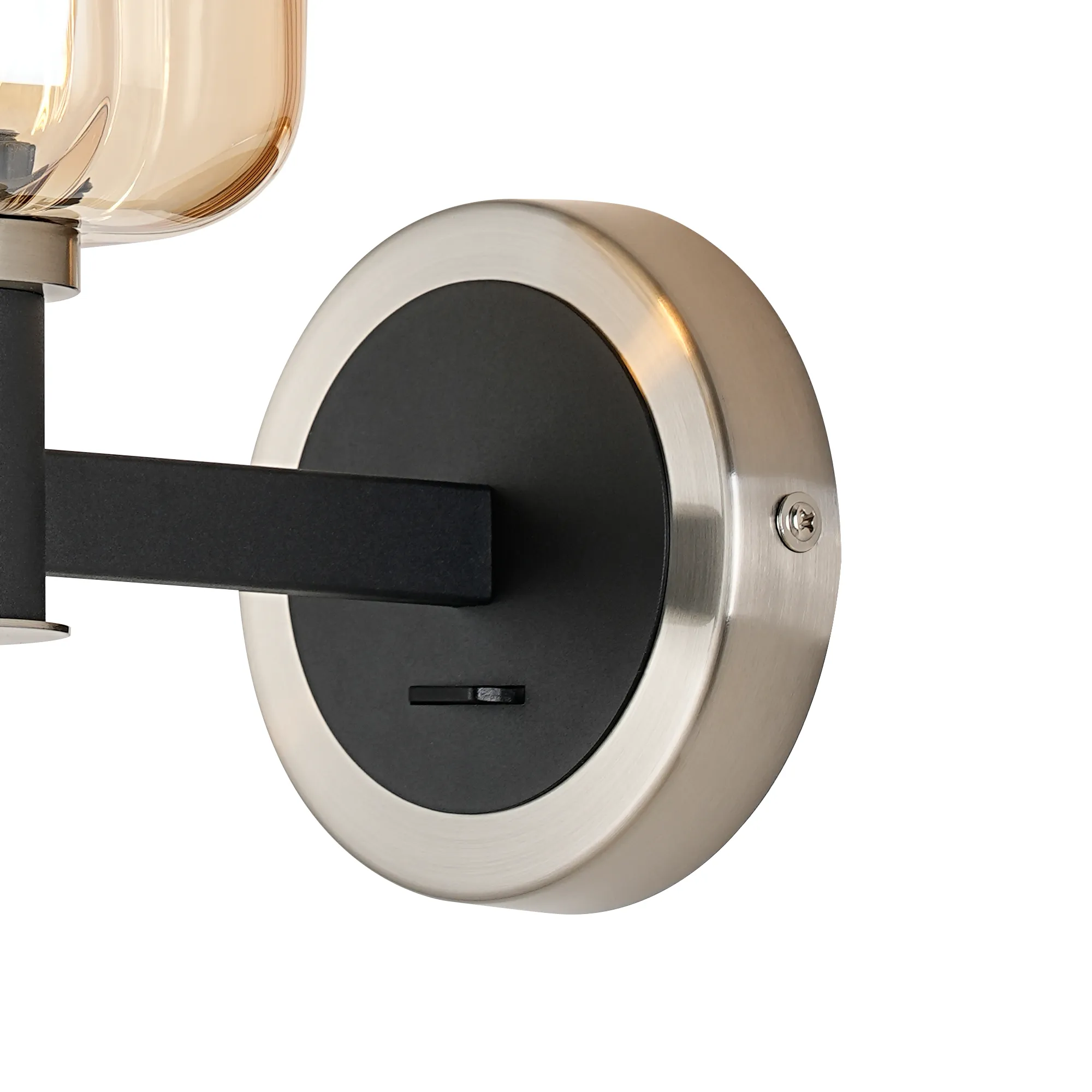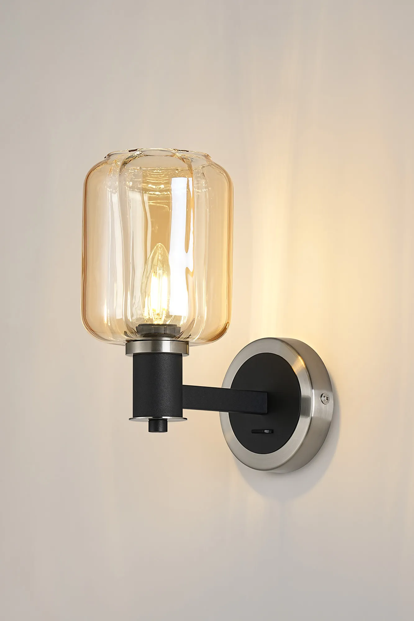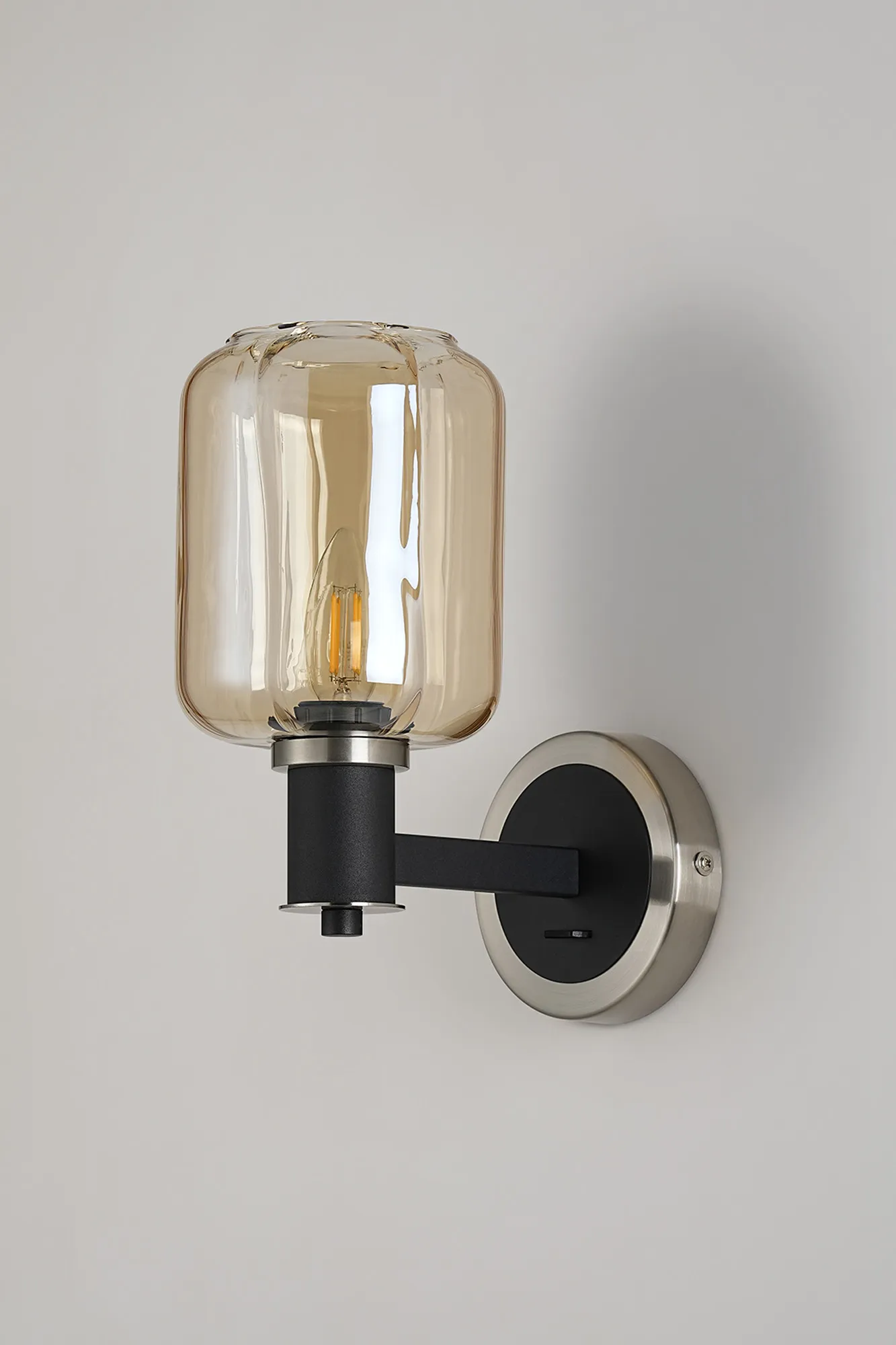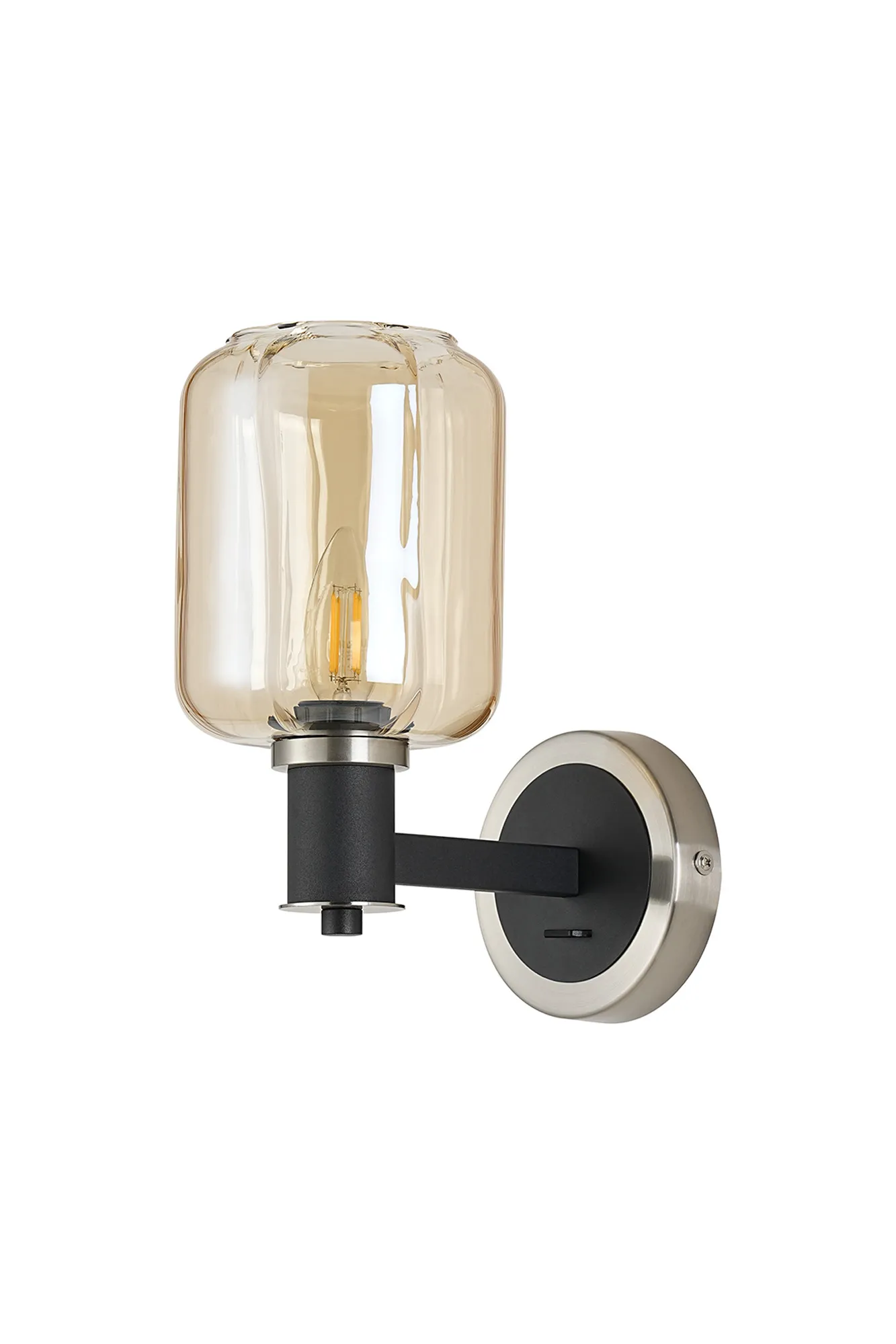 OTHER Alberni Wall x 1 x E14 Satin Nickel/Satin Black/Amber Striped Cylinder Glass