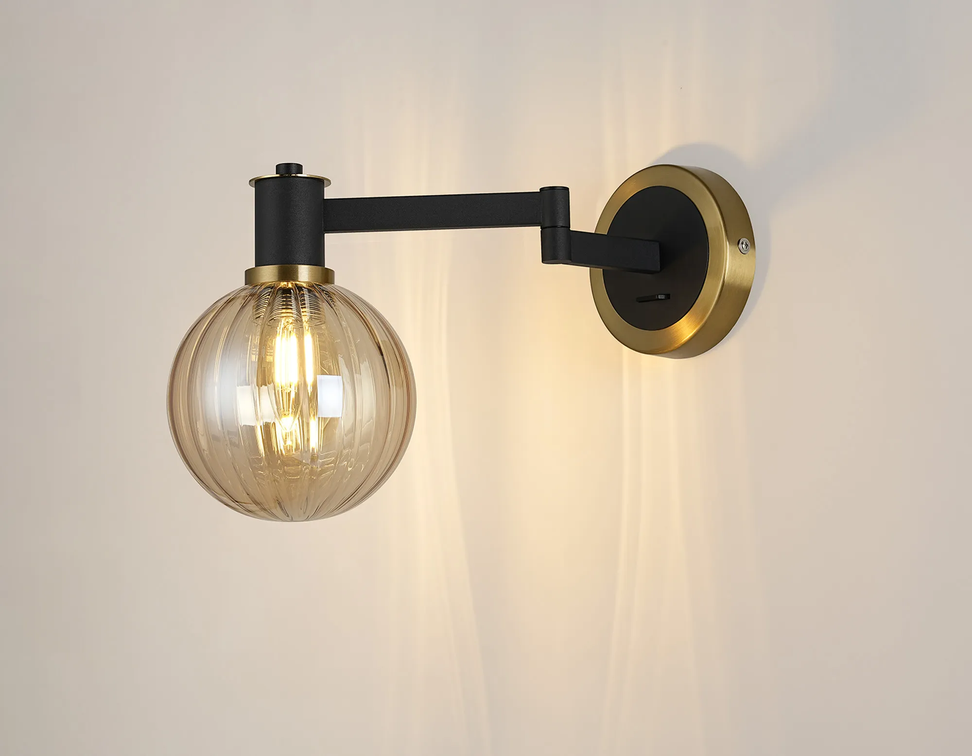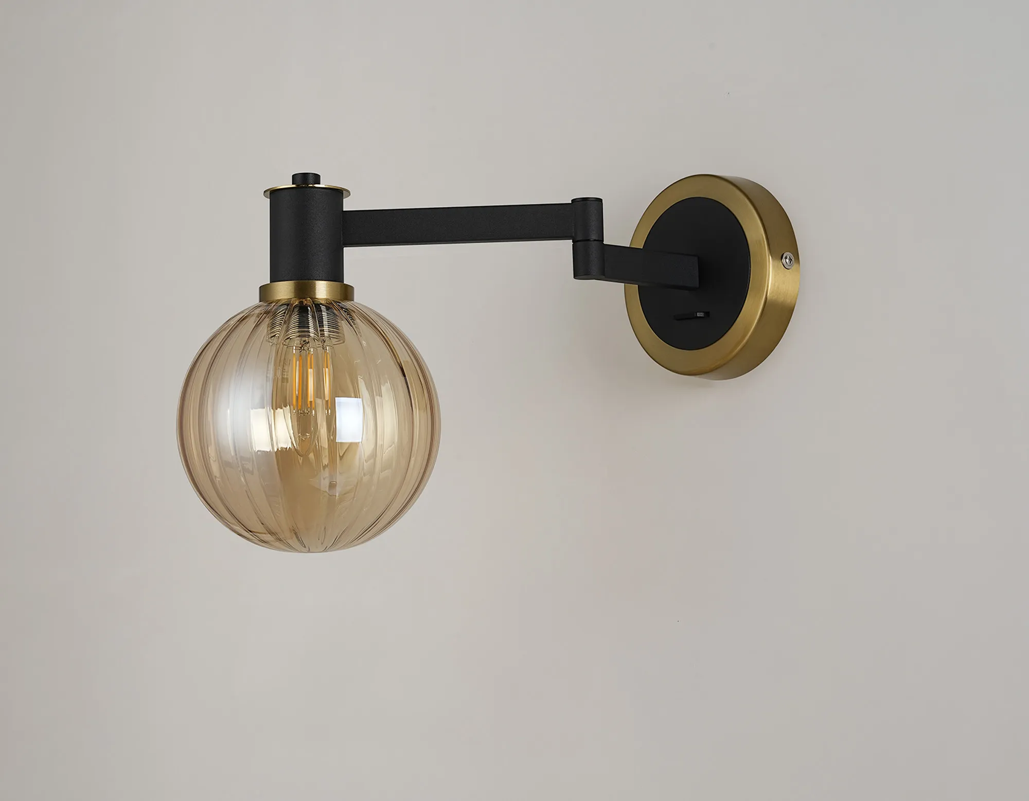 OTHER Alberni Adjustable Swing Arm Wall x 1 x E14 Brass/Satin Black/Amber Plated Round Segment Glass