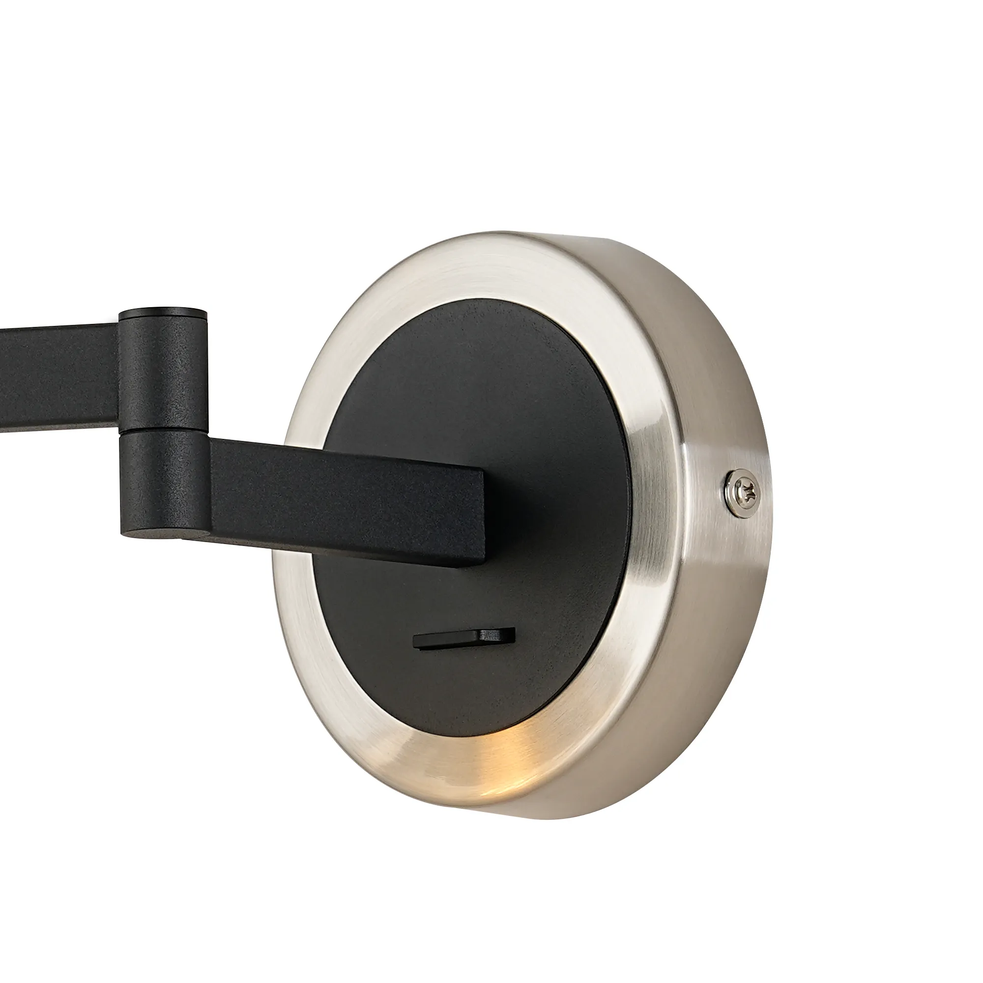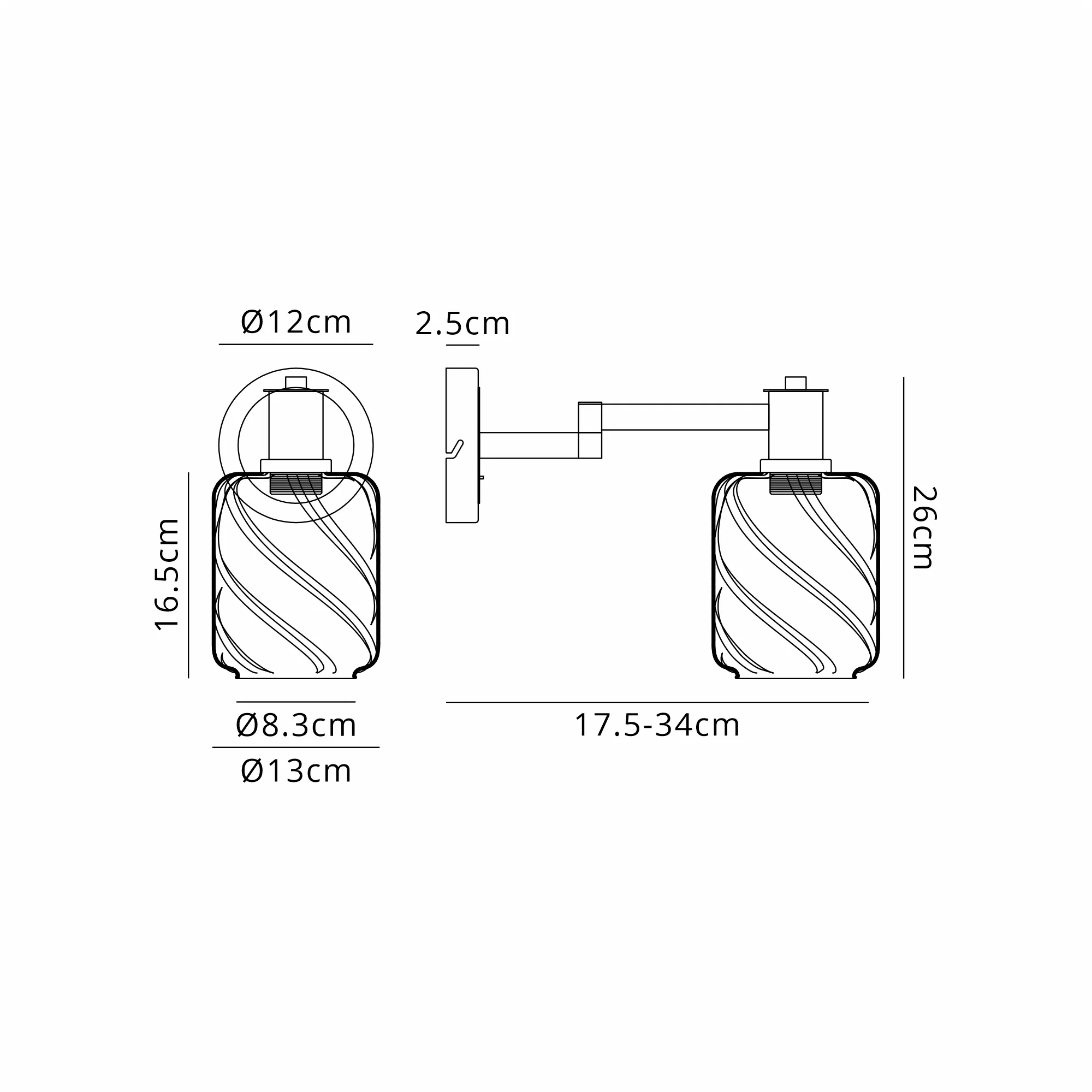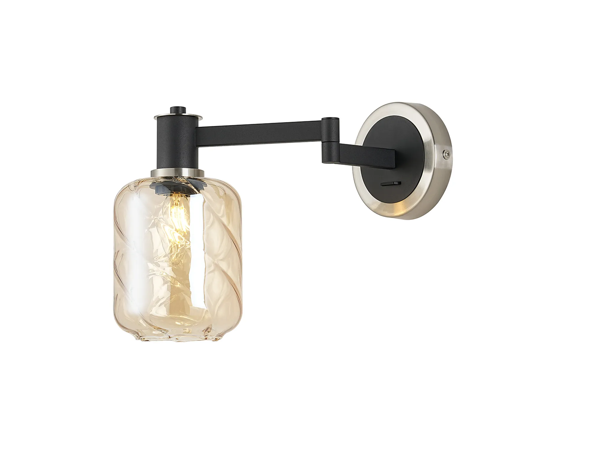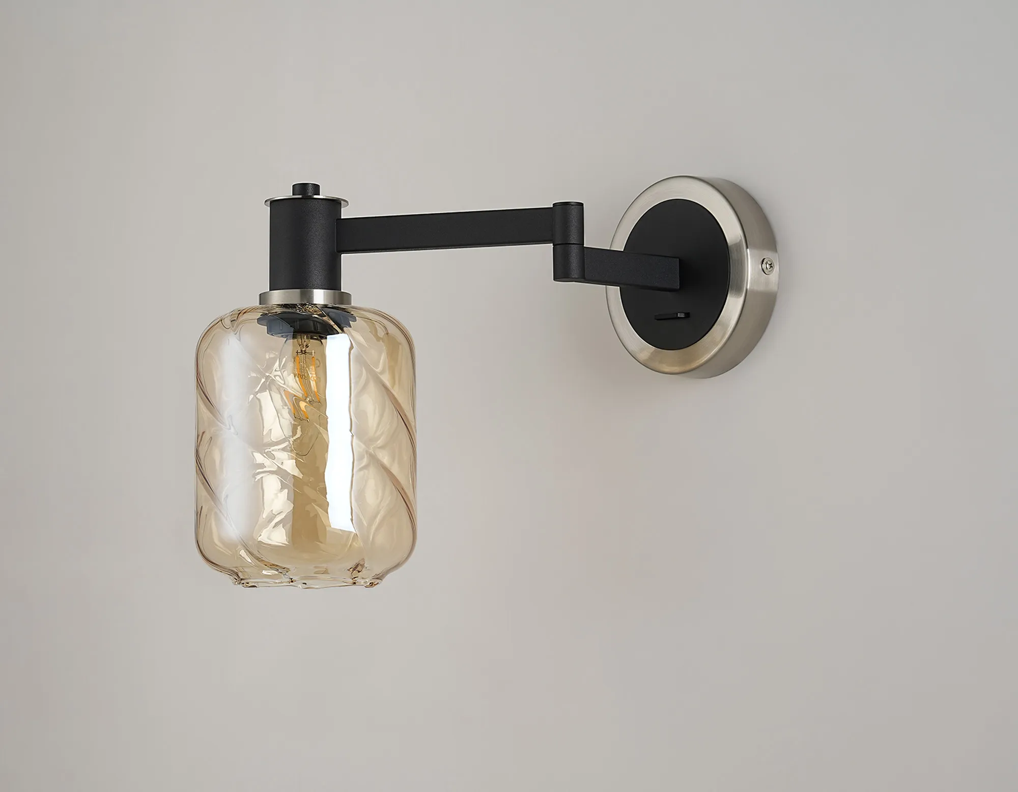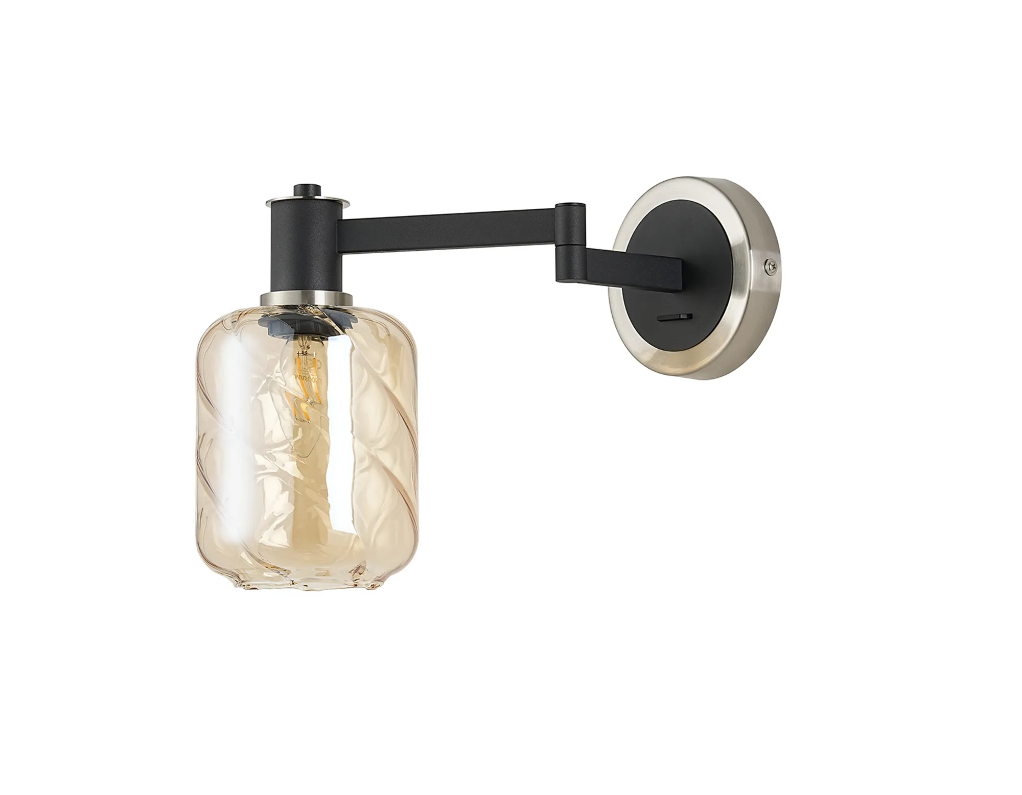 OTHER Alberni Adjustable Swing Arm Wall x 1 x E14 Satin Nickel/Satin Black/Amber Twisted Cylinder Glass