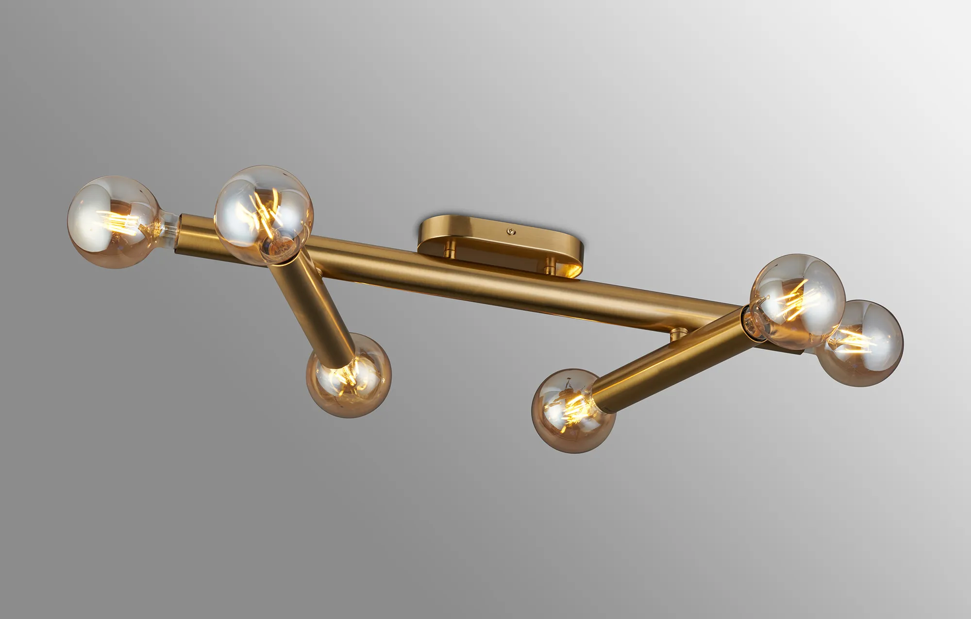 Moody 3 Arm 6 Light Linear Adjustable Pendant/Semi Flush E27, Antique Gold, Lamps Not Included,