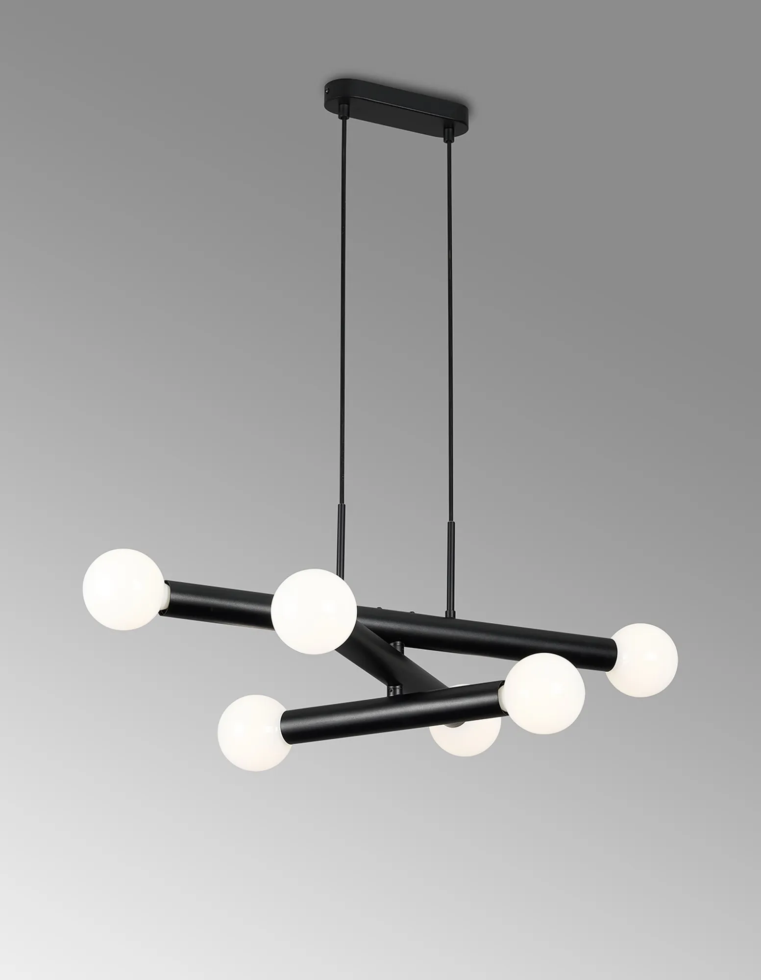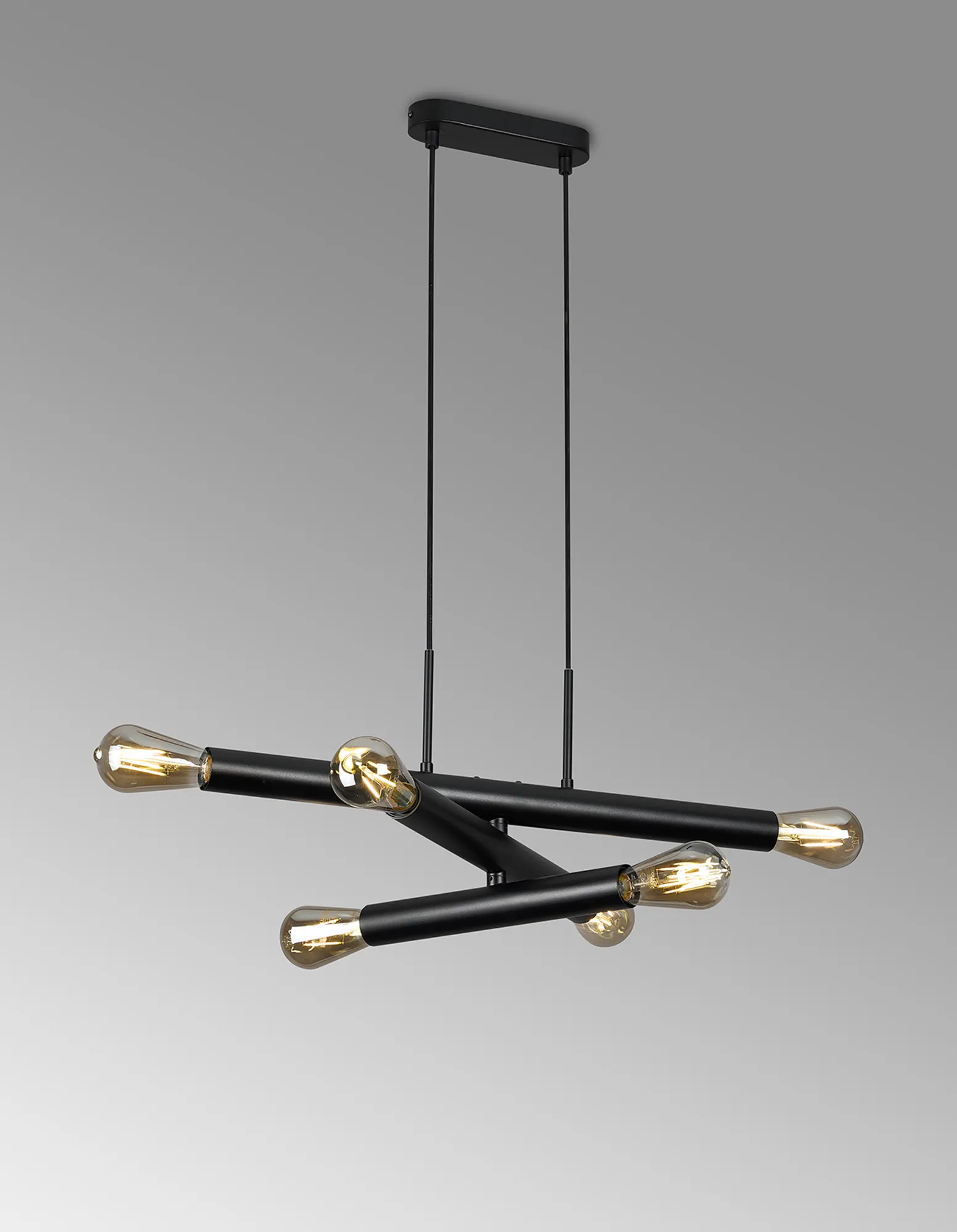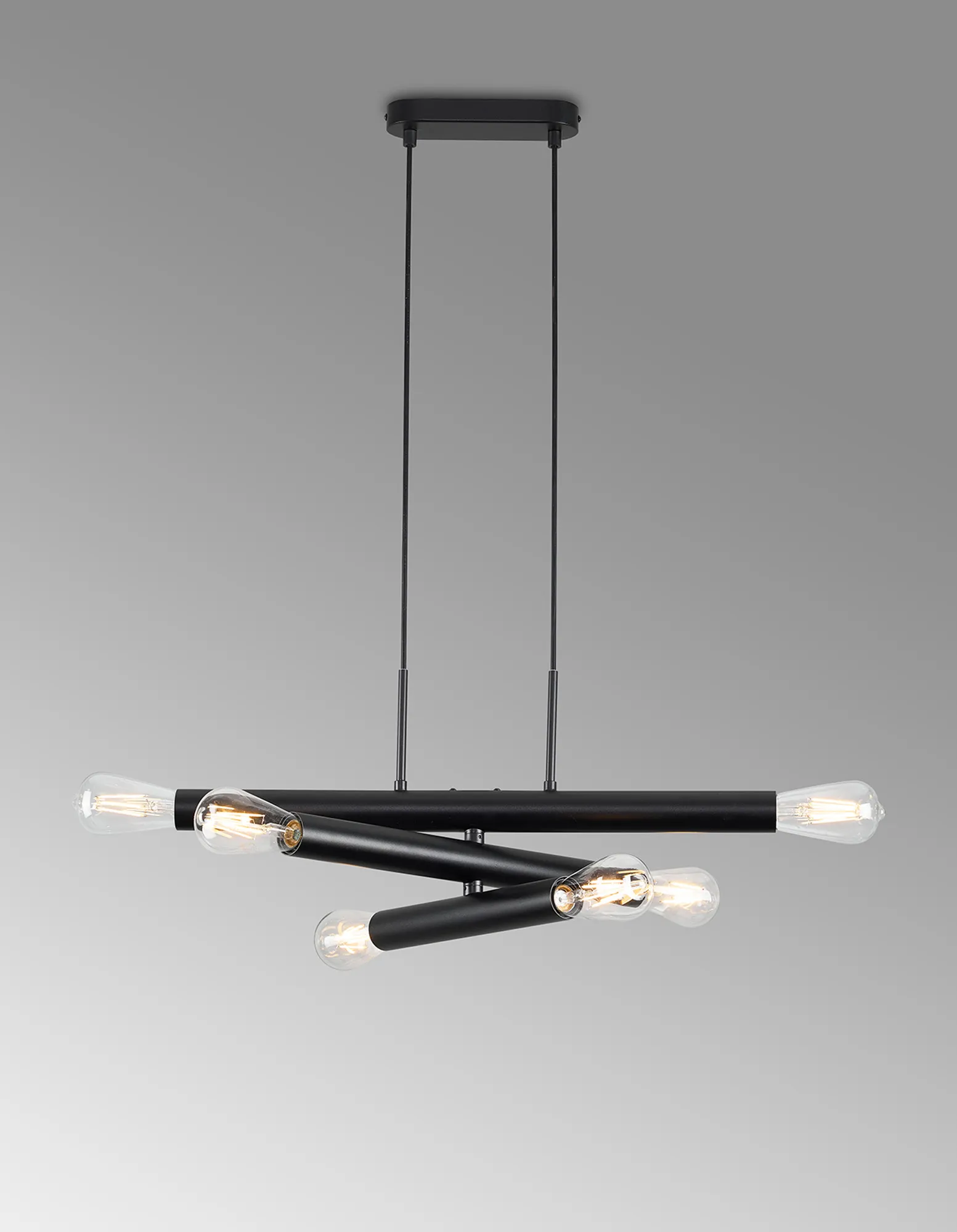 Moody 3 Arm 6 Light Linear Adjustable Pendant/Semi Flush E27, Satin Black