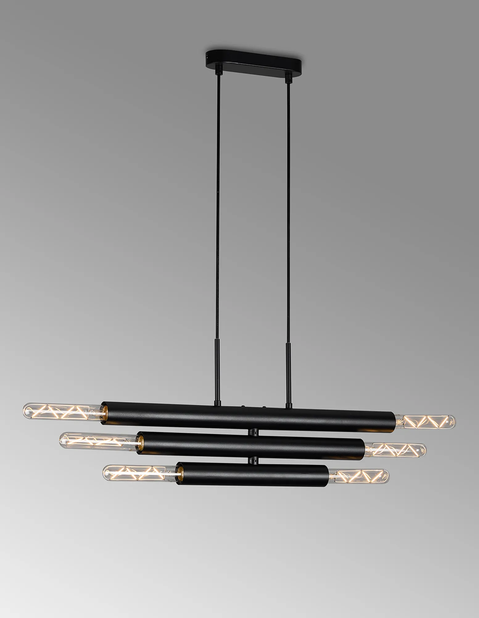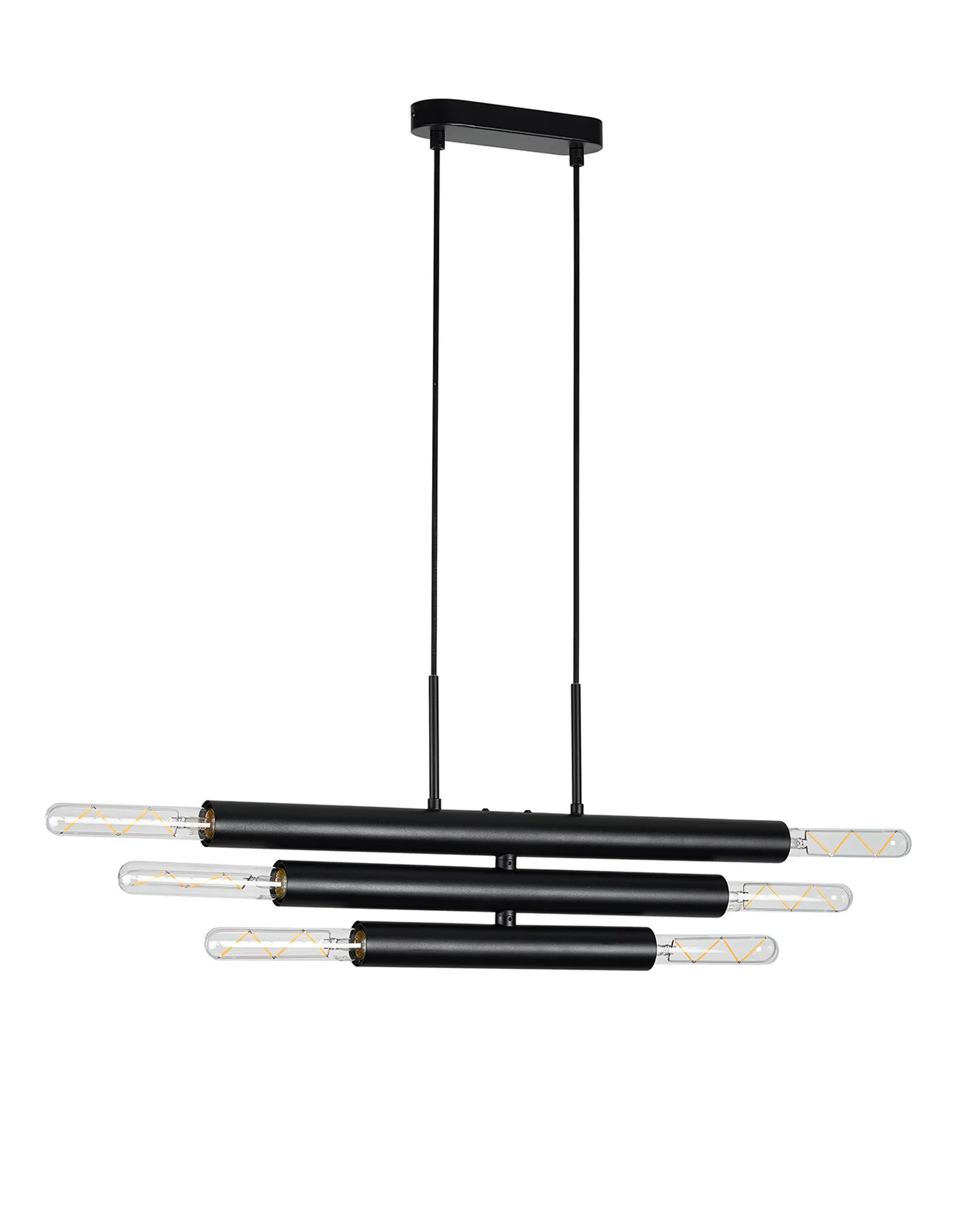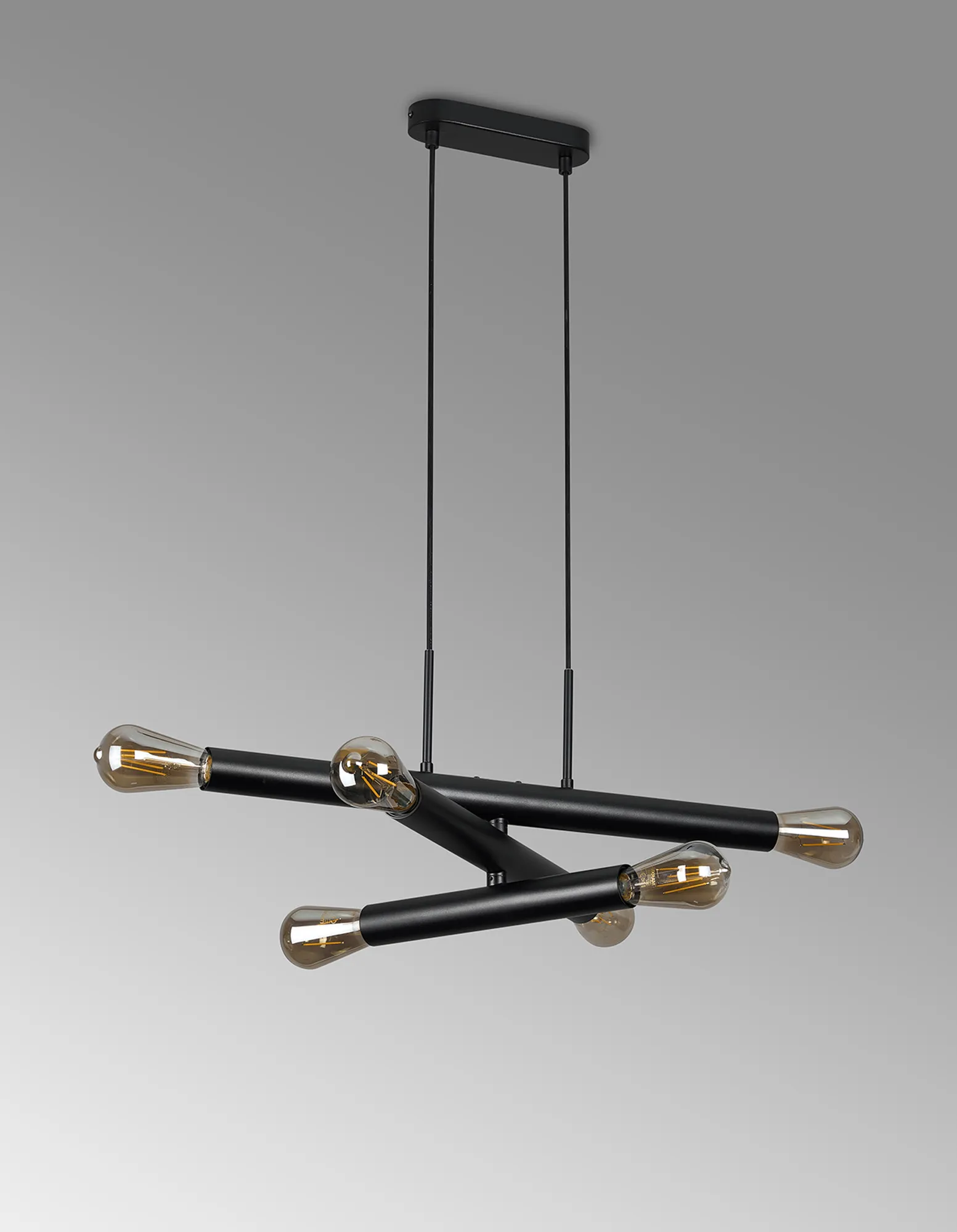 Moody 3 Arm 6 Light Linear Adjustable Pendant/Semi Flush E27, Satin Black