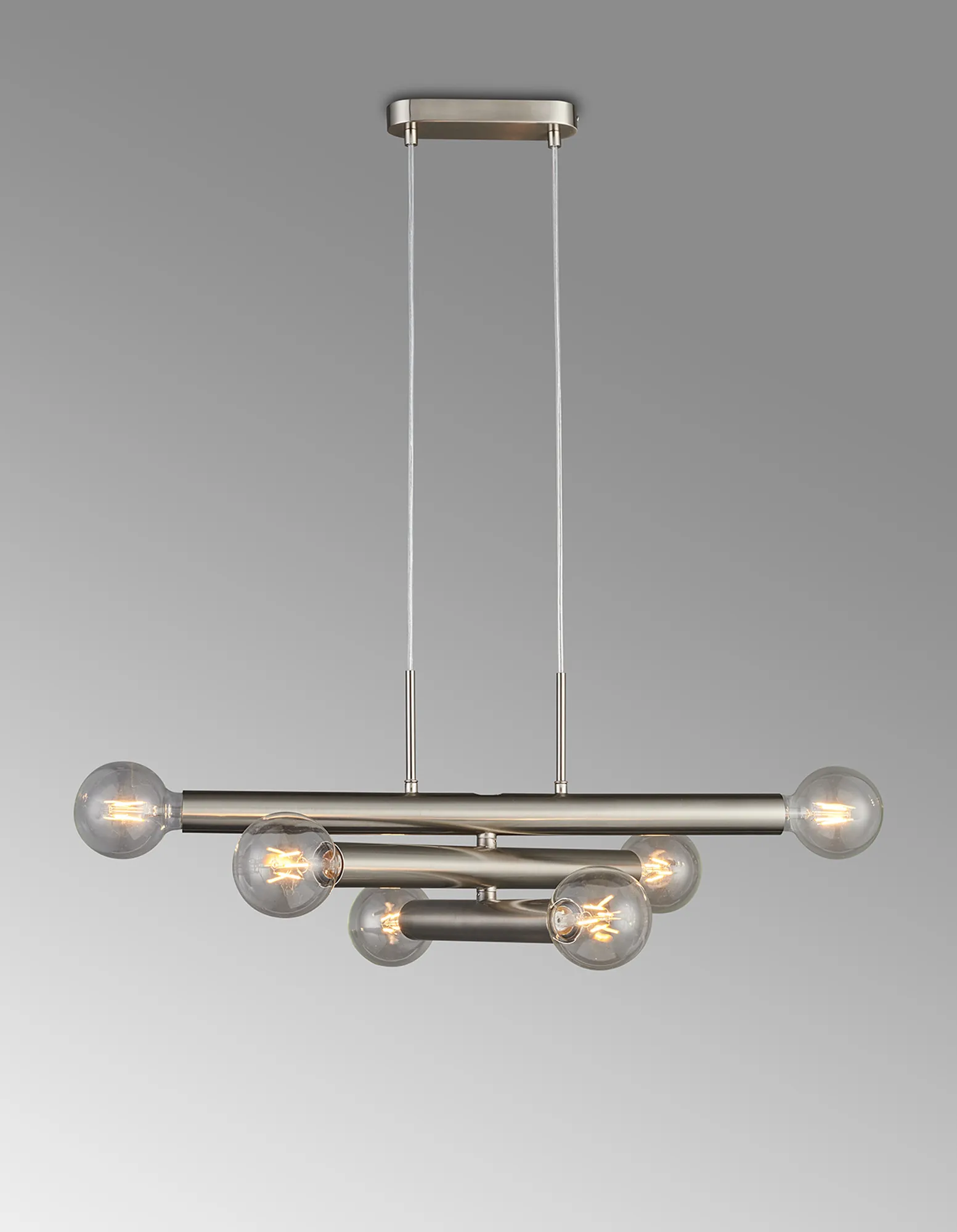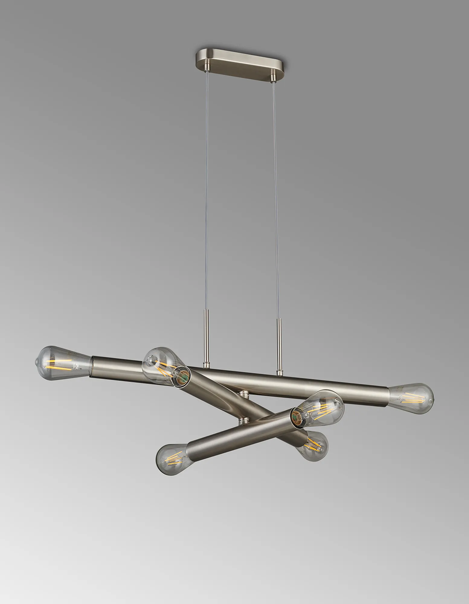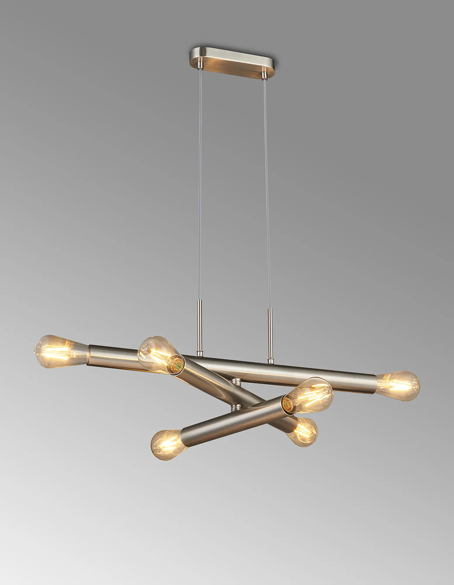Moody 3 Arm 6 Light Linear Adjustable Pendant/Semi Flush E27, Satin Nickel, Lamps Not Included,