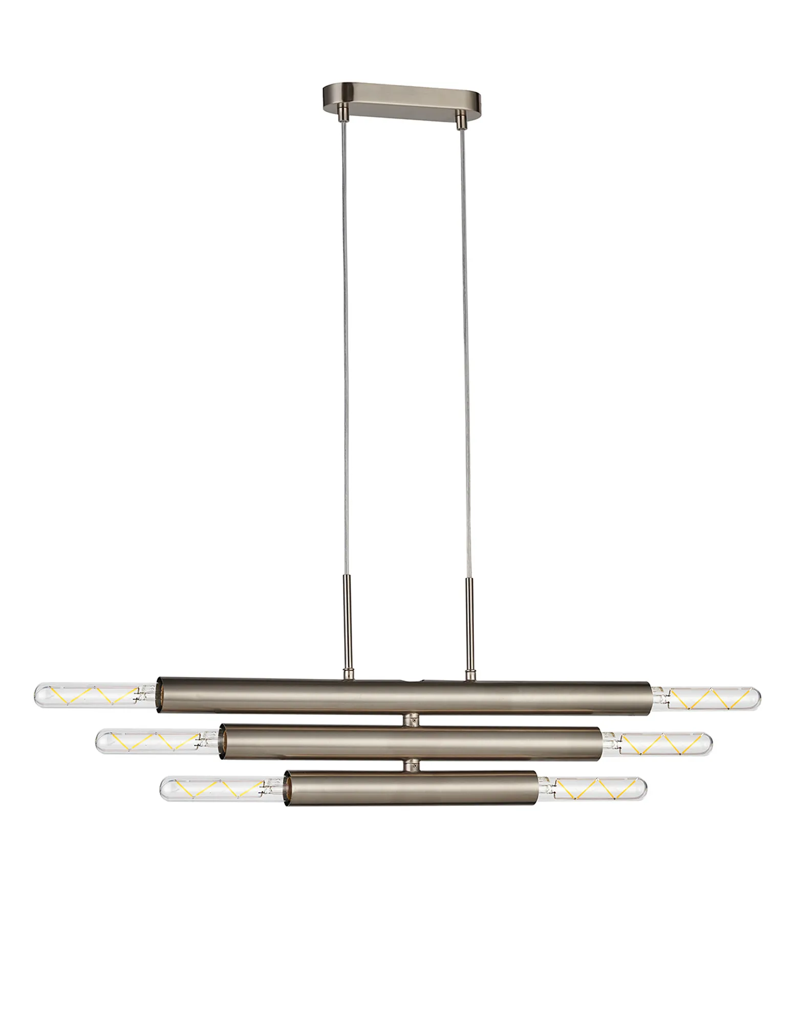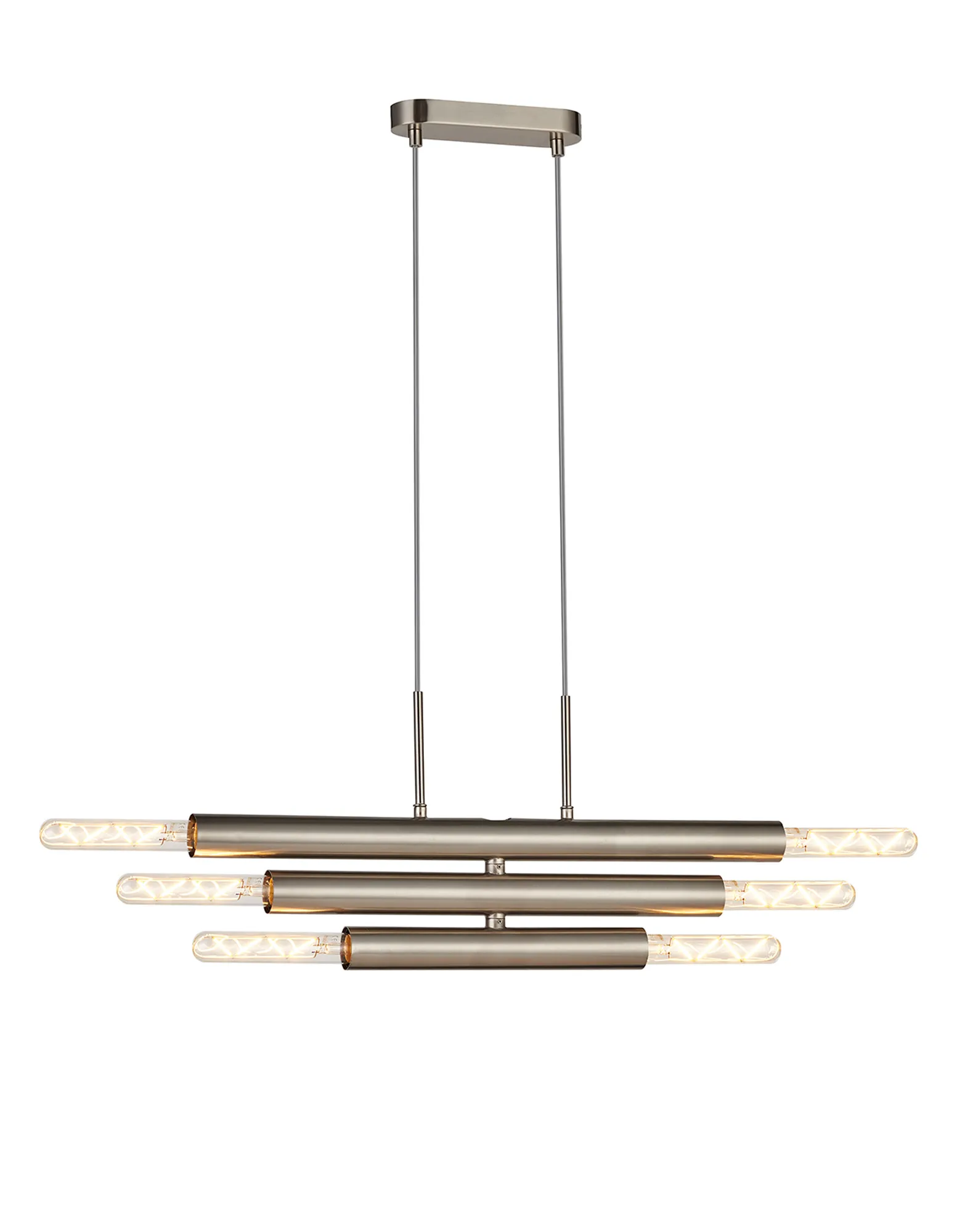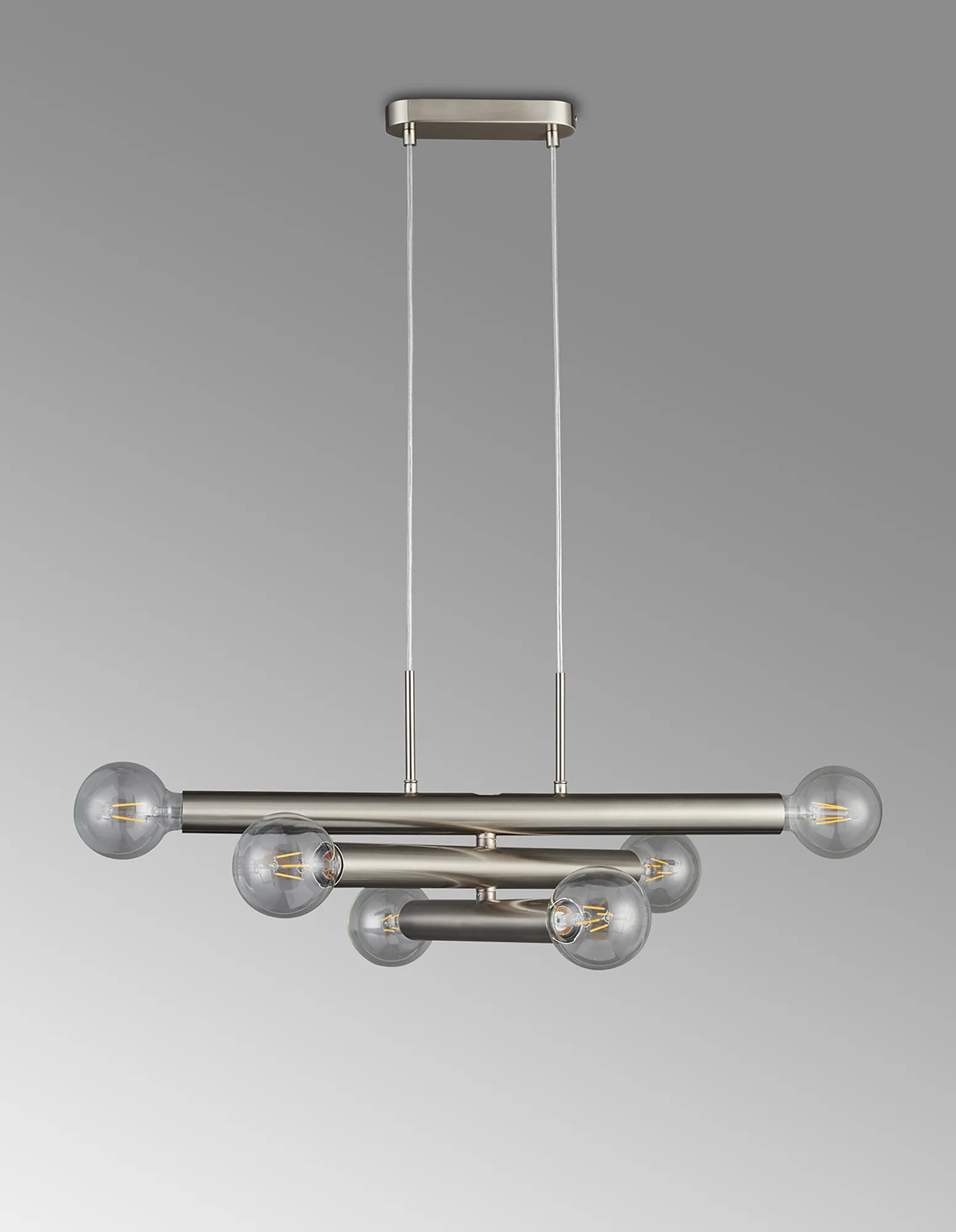 Moody 3 Arm 6 Light Linear Adjustable Pendant/Semi Flush E27, Satin Nickel, Lamps Not Included,