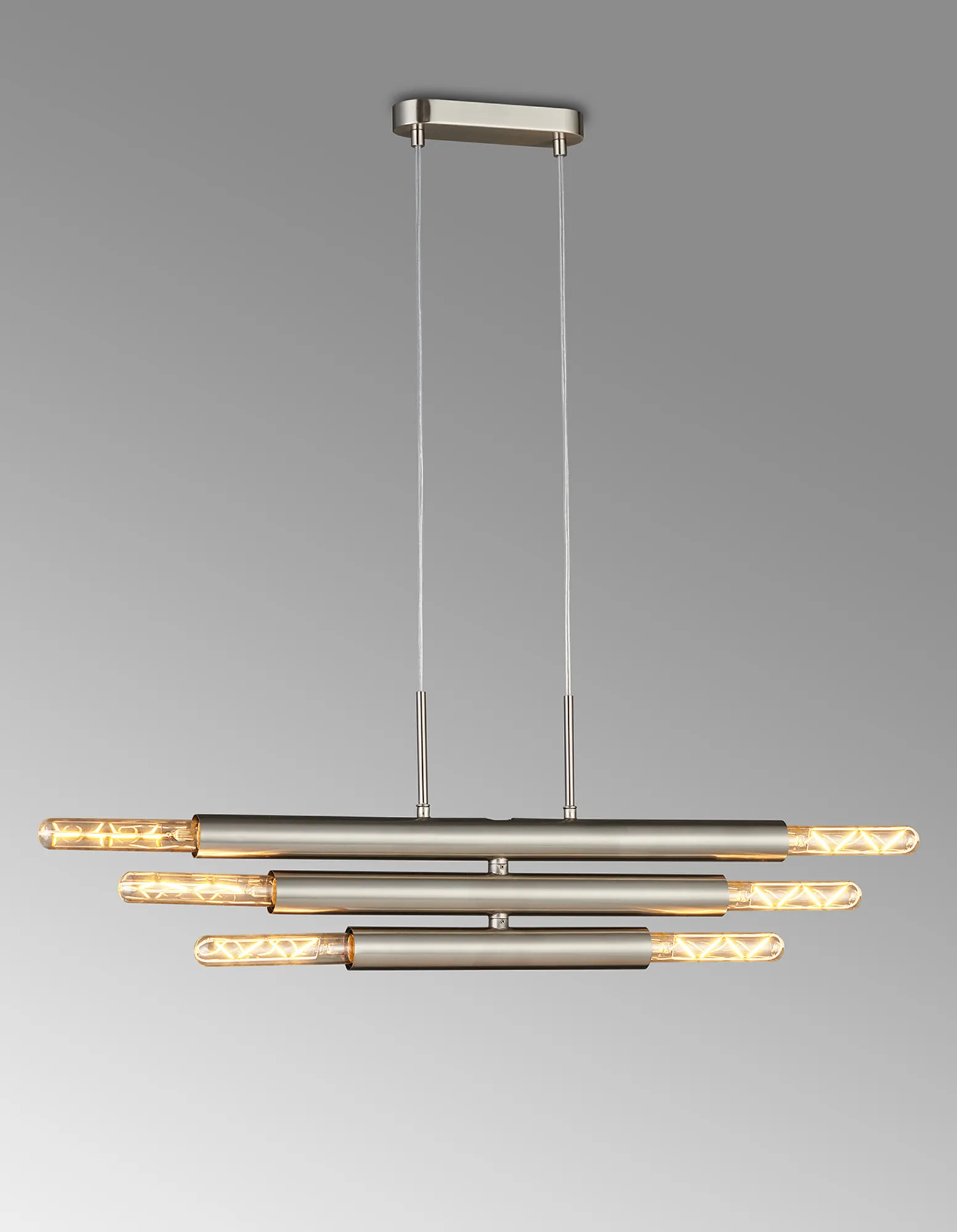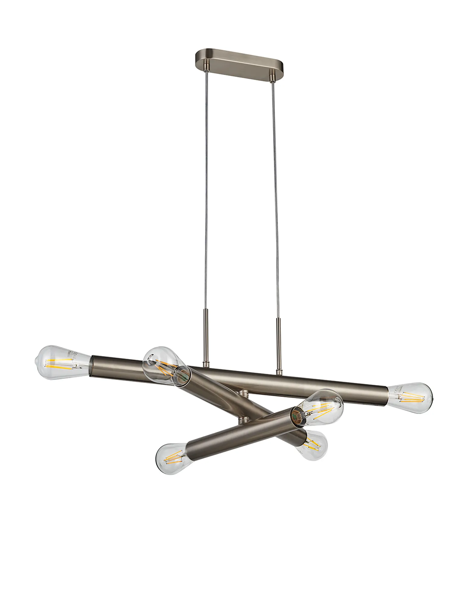 Moody 3 Arm 6 Light Linear Adjustable Pendant/Semi Flush E27, Satin Nickel