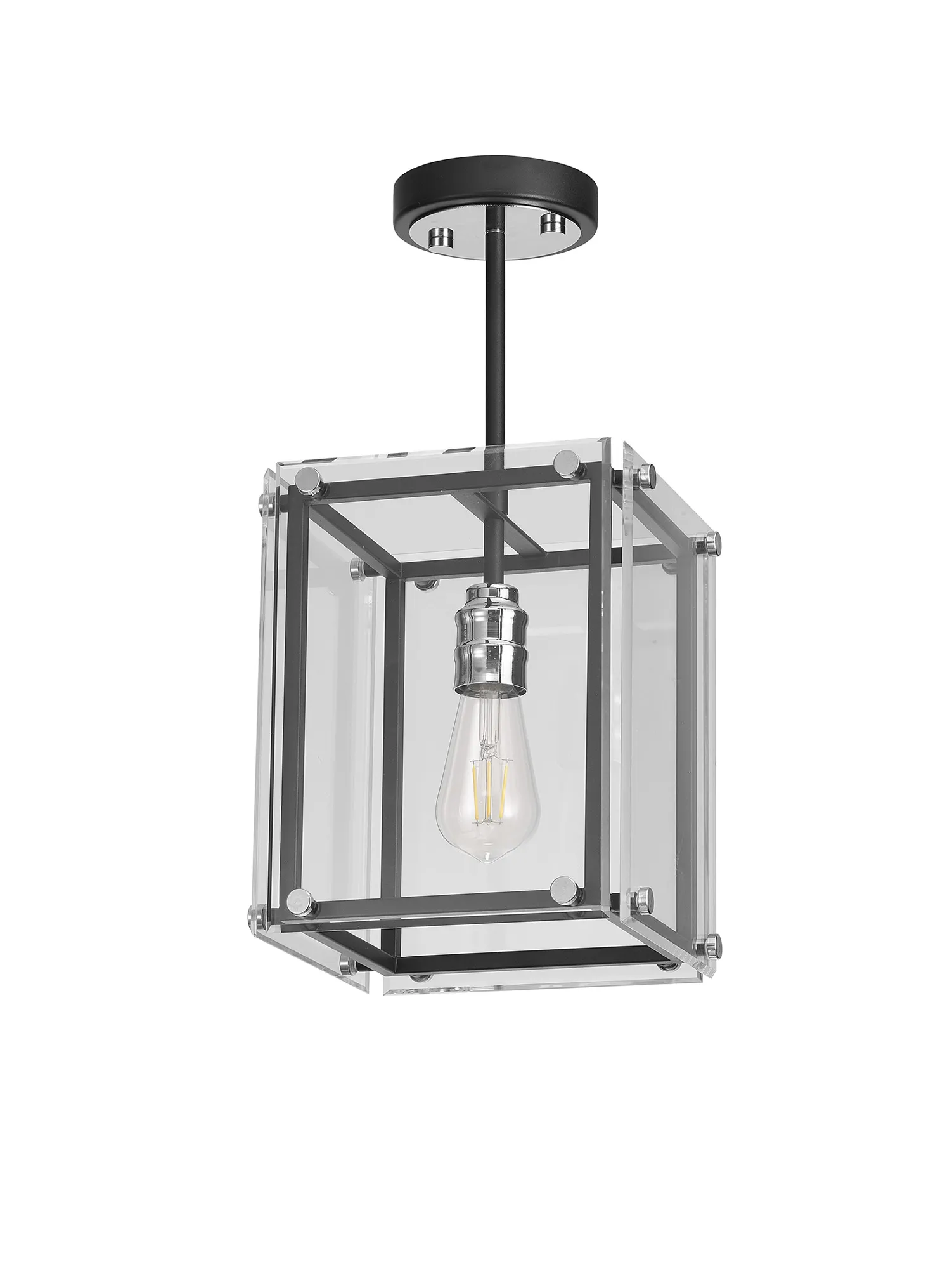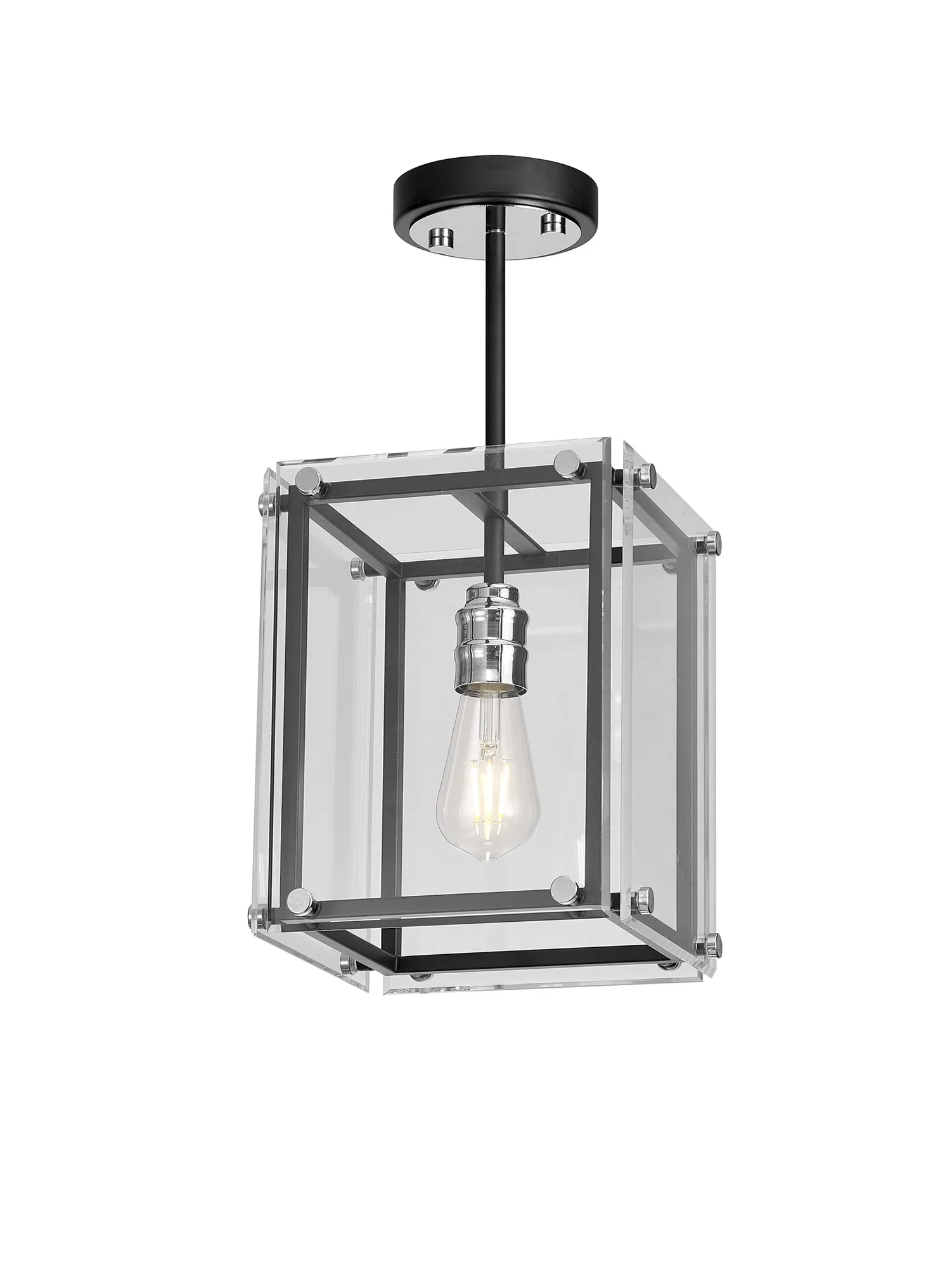 George Pendant/Semi Flush, 4 x E27, Matt Black/Chrome/Clear Glass