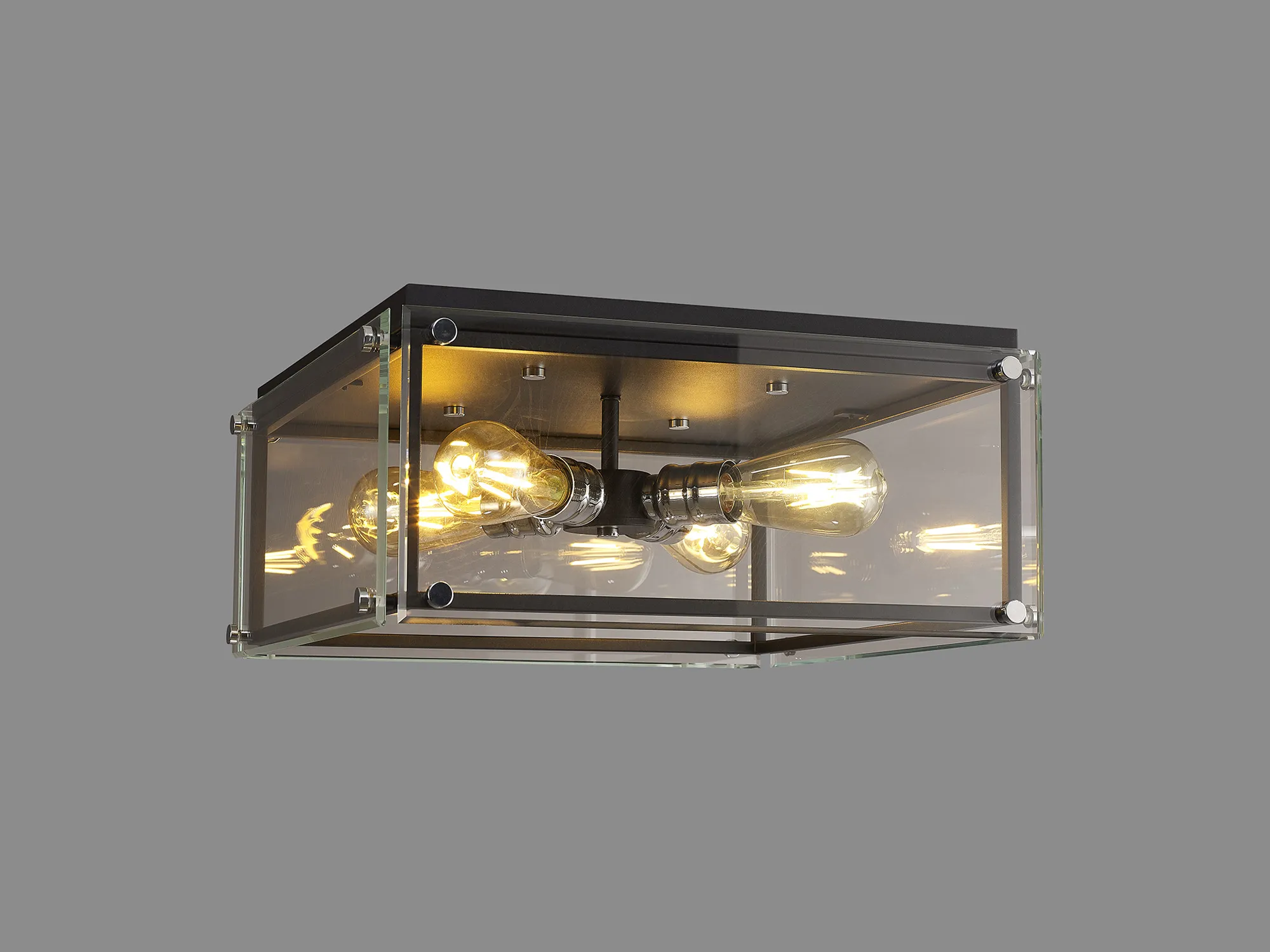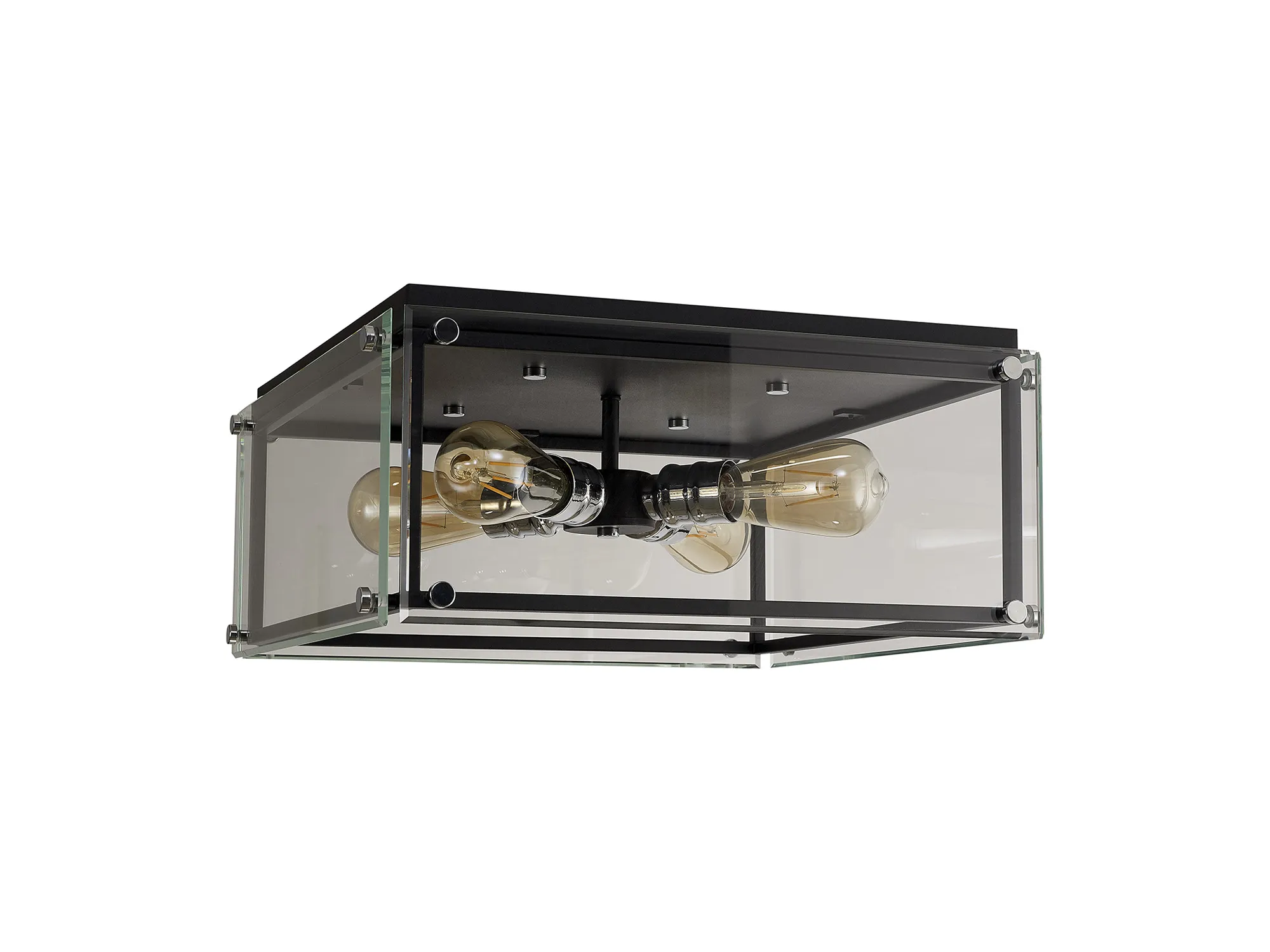 George is a contemporary range of square glass pendants with complementing flush, semi flush and wall light fixtures. The intricate design details of this range see the matt black colour finish accentuated by the polished chrome components. This added attractive, contrasting detail applies a modern twist to an otherwise traditional concept; suitable for a wide range of settings. The open spaces between the framework are filled with high quality clear glass panes to further reflect the light from the E27 lamp holders.