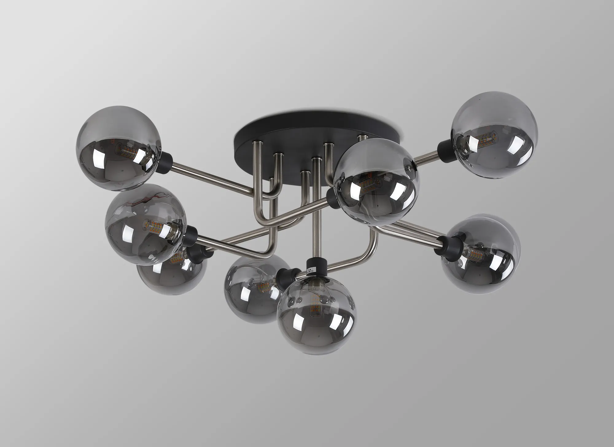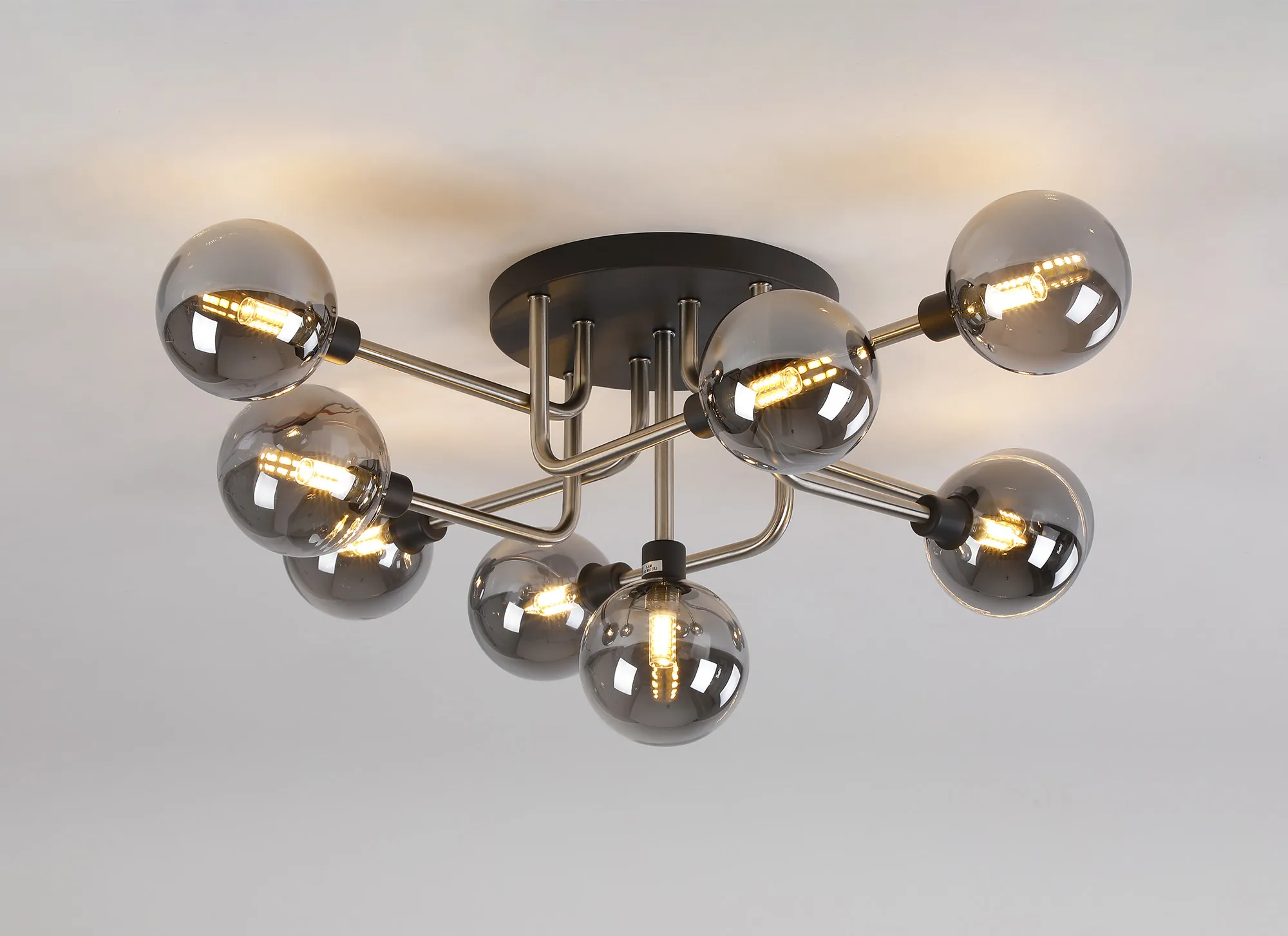 Massey Fixed Pendant Ceiling, 10 x G9, Graphite/Satin Nickel/Smoke Glass
