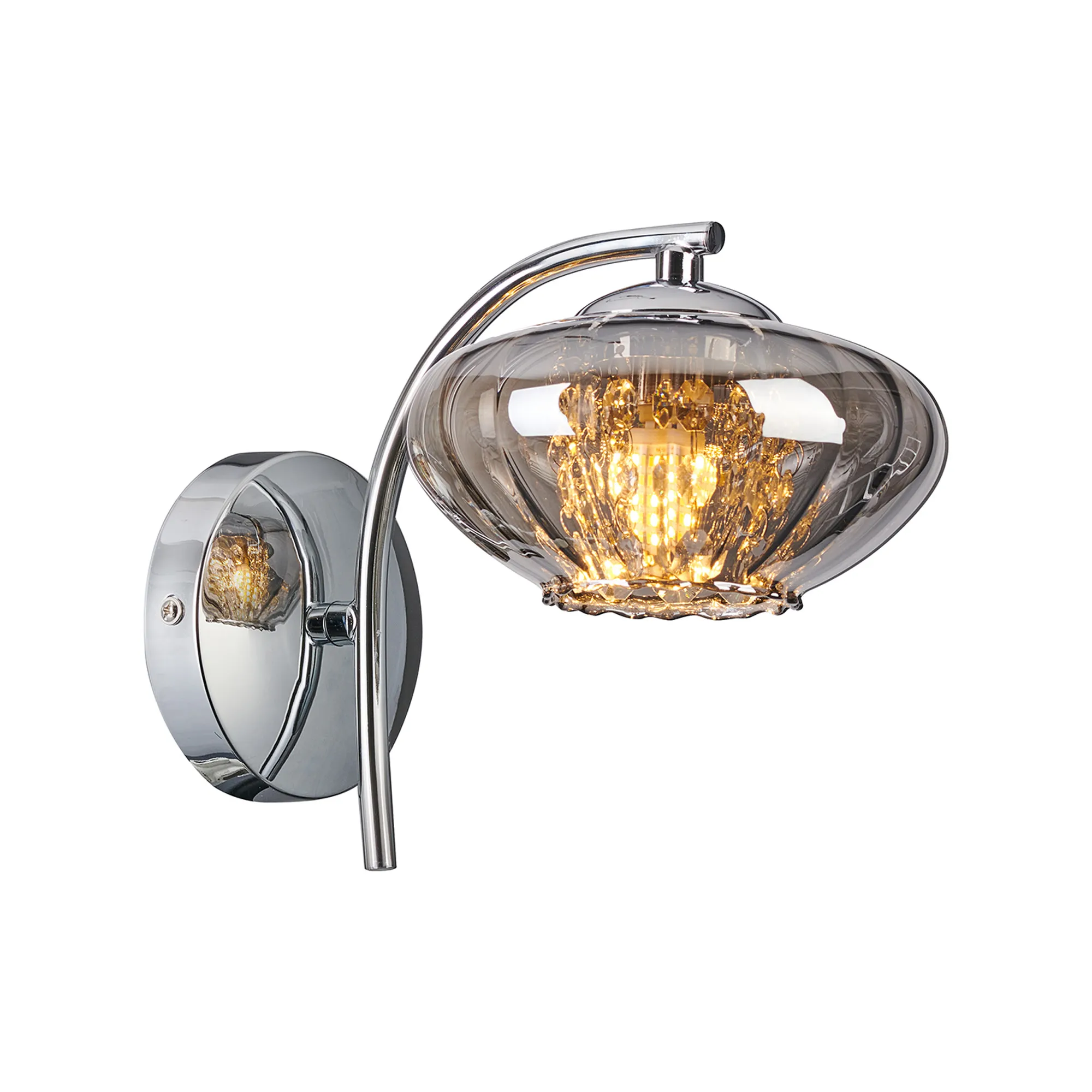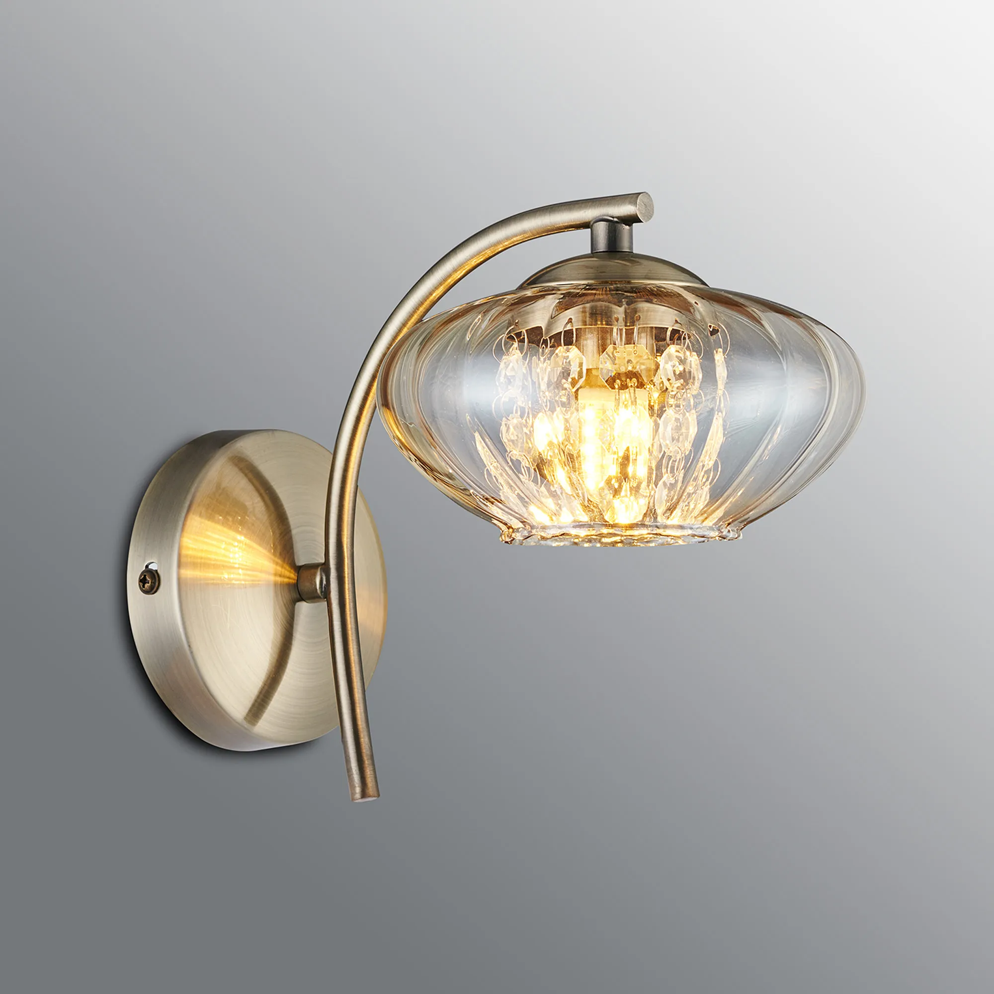 Rupert Wall Lamp, 1 x G9, Antique Brass/Cognac Glass/Clear Crystal