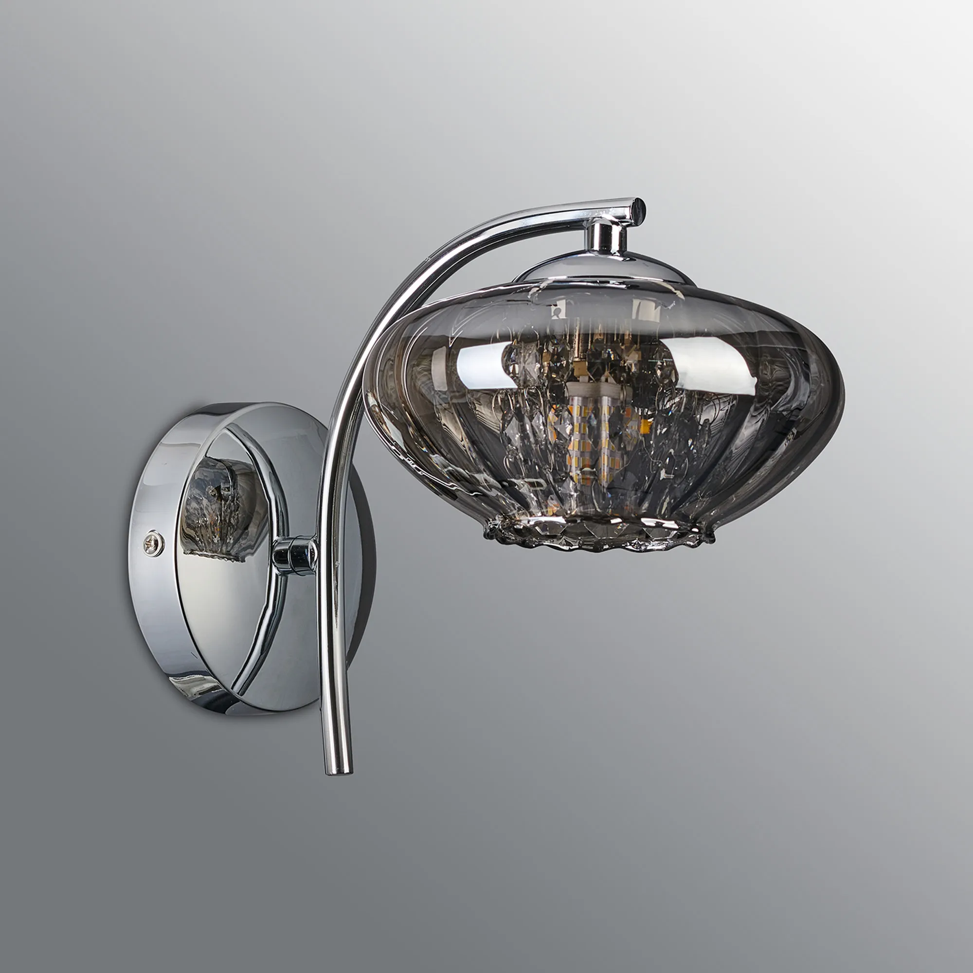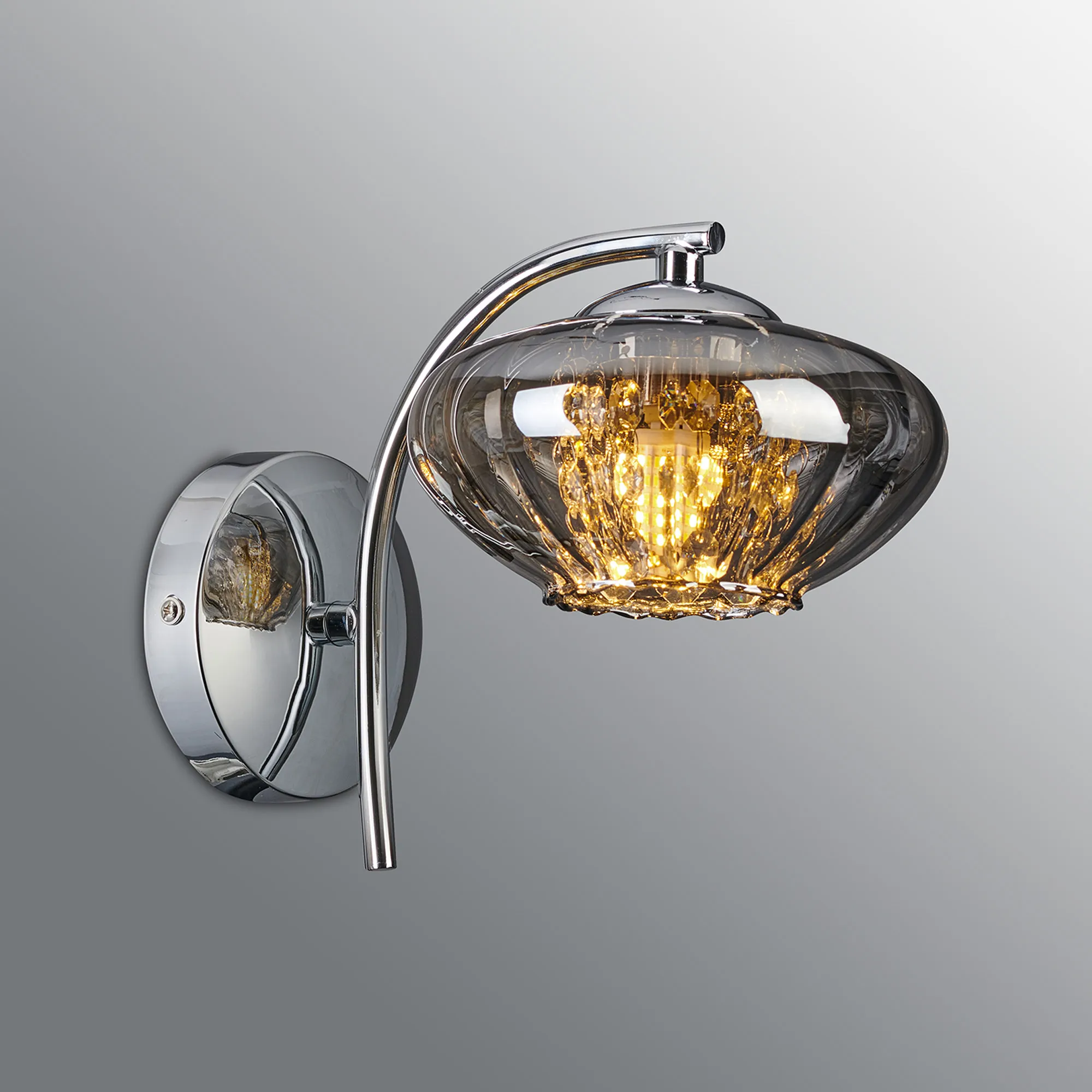 Rupert is a beautiful G9 collection of lighting. The uniquely shaped glass has a cognac or smoked finish which is perfectly balanced against the sleek antique brass or polished chrome framework. Within each glass shade hangs a row of clear crystal buttons adding an extra touch of elegance and sparkle. The pendant and ceiling lights within this range can also be purchased alongside a complementing wall, table or floor lamp.