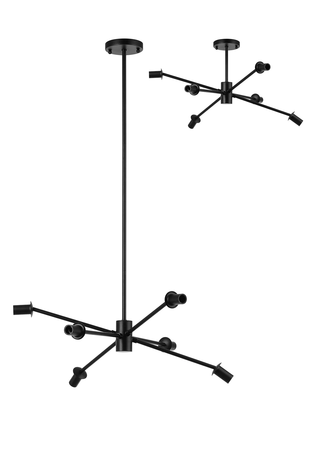Revelstoke Satin Black 8 Light E14 Fixed Multi Height Pendant/Semi Flush Round (FRAME ONLY), Suitable For A Vast Selection Of Glass Shades