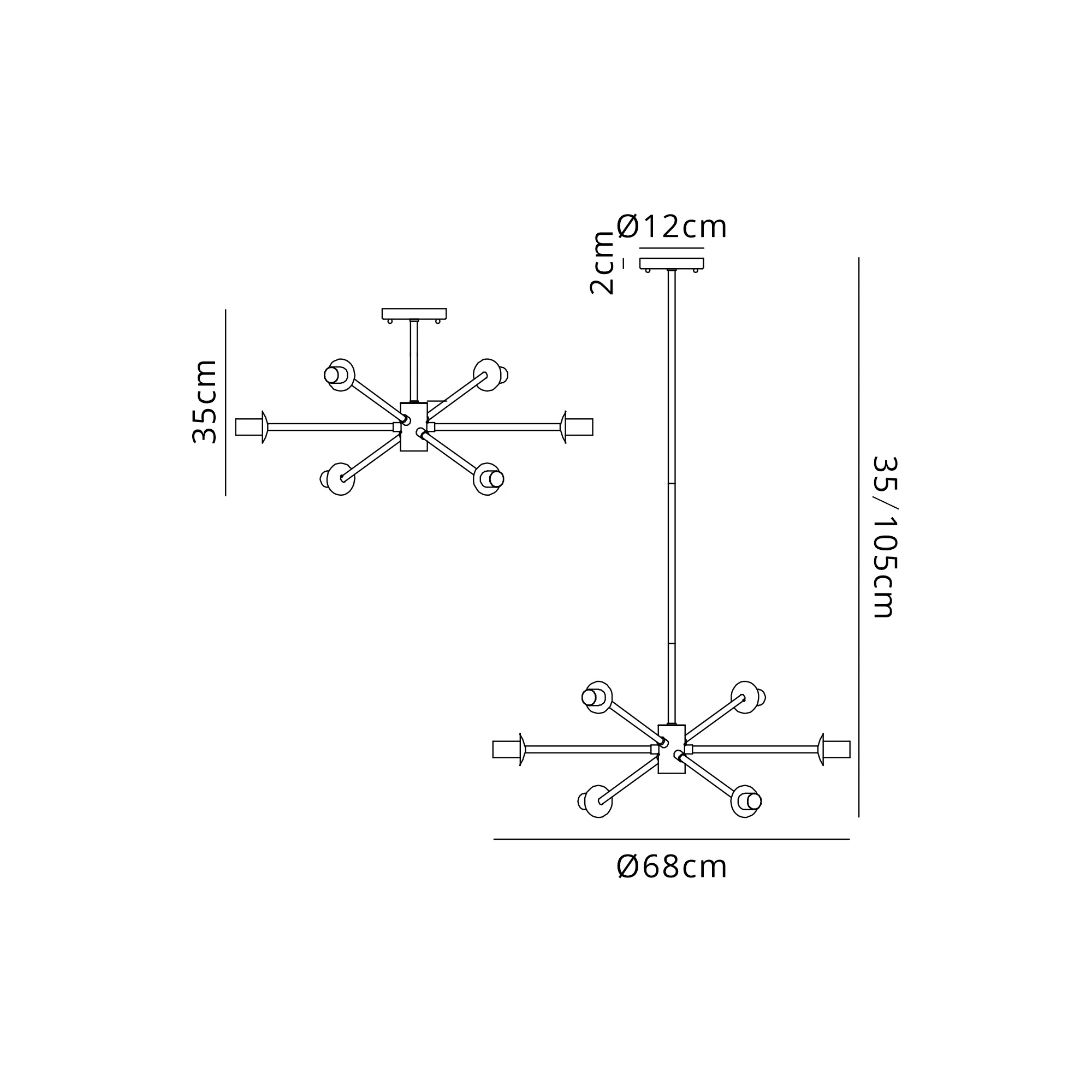 Revelstoke 83cm Satin Black 8 Light E14 Fixed Multi Height Pendant/Semi Flush Round (FRAME ONLY), Suitable For A Vast Selection Of Glass Shades