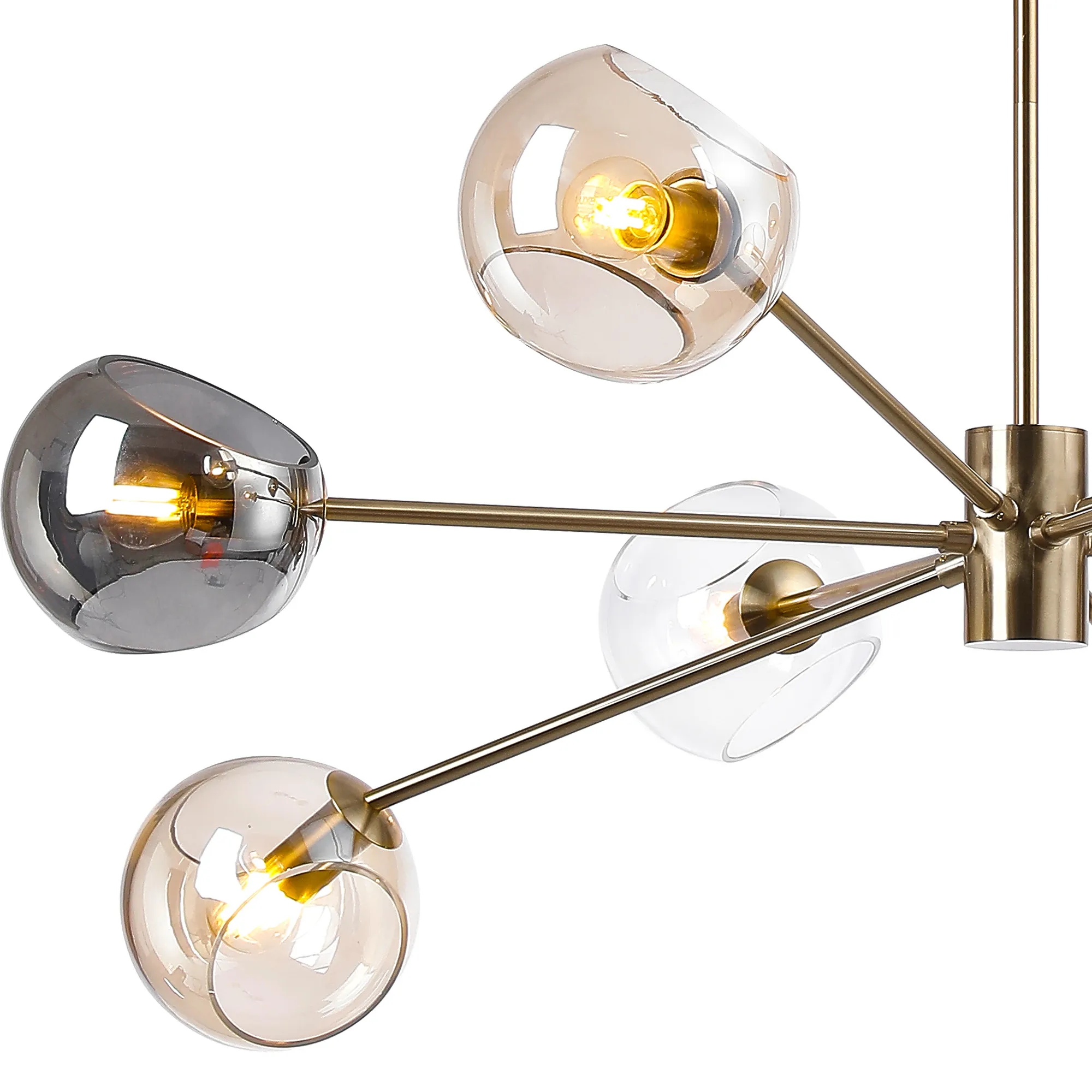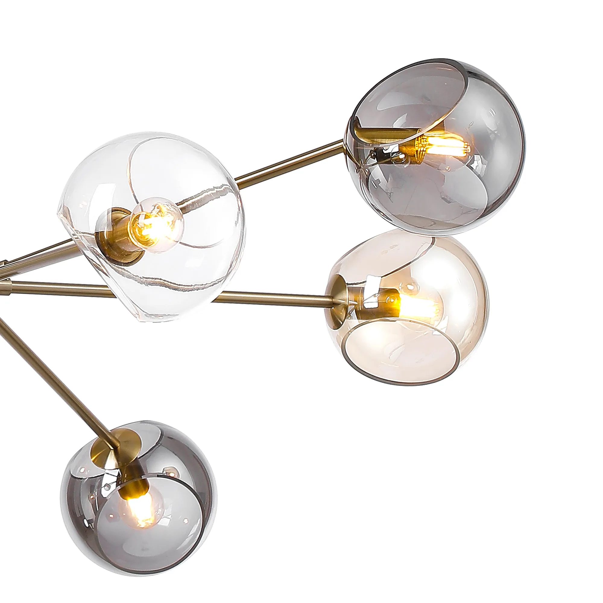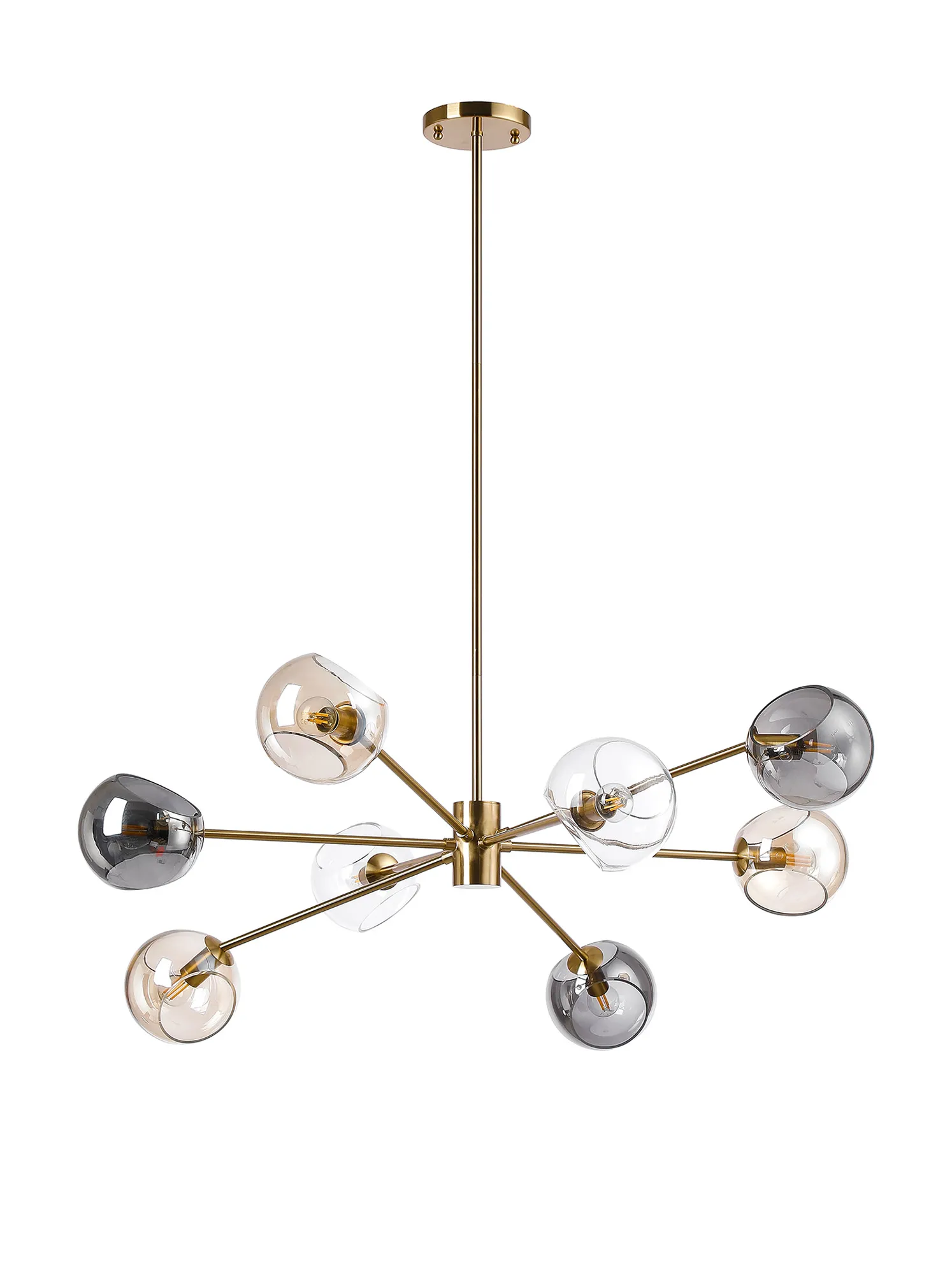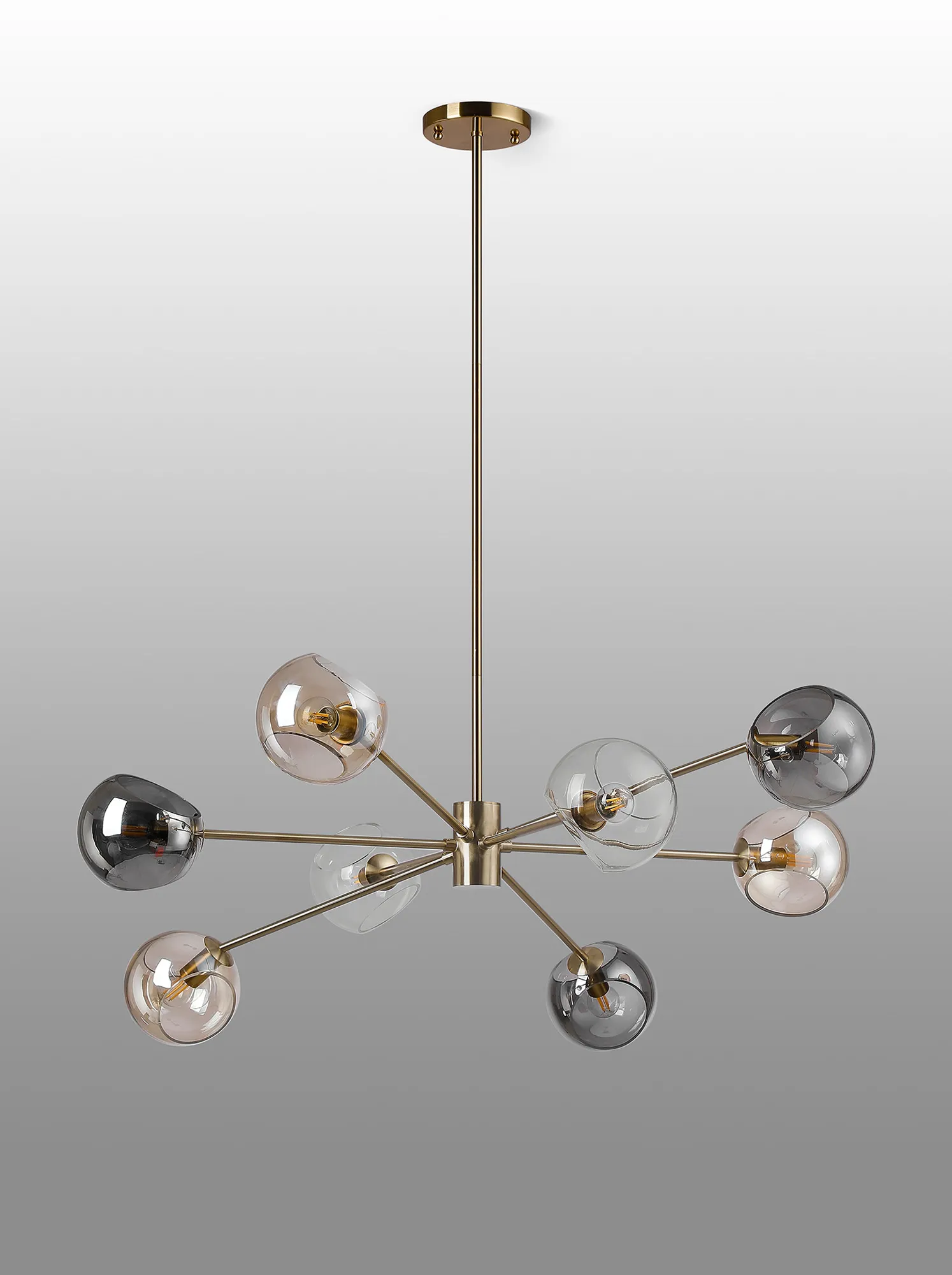 Revelstoke 85cm Round Fixed Multi Height Pendant/Semi Flush With Double Cut Glass, 6 x E14, Antique Gold/Cognac/Clear/Smoke