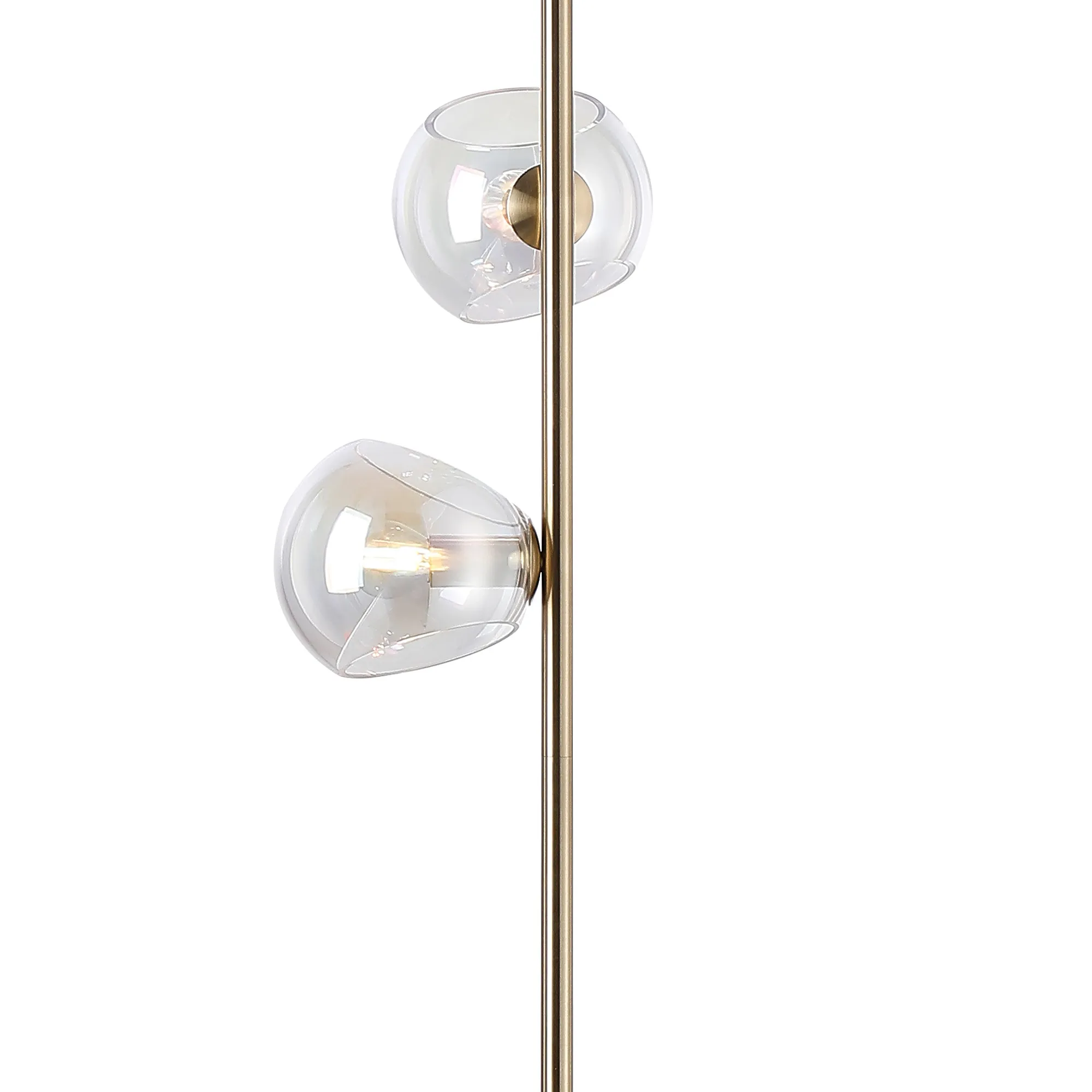 The Revelstoke collection offers a range of lighting options including E14 single and multi-drop pendants. Each piece is complemented by matching wall, floor, and table lamps. You can choose from three distinctive finishes: antique gold, satin black, or satin nickel. The collection features angled double-cut glass shades, available in an array of exquisite finishes such as blue, cognac, frosted, gold, iridescent, clear and smoked.