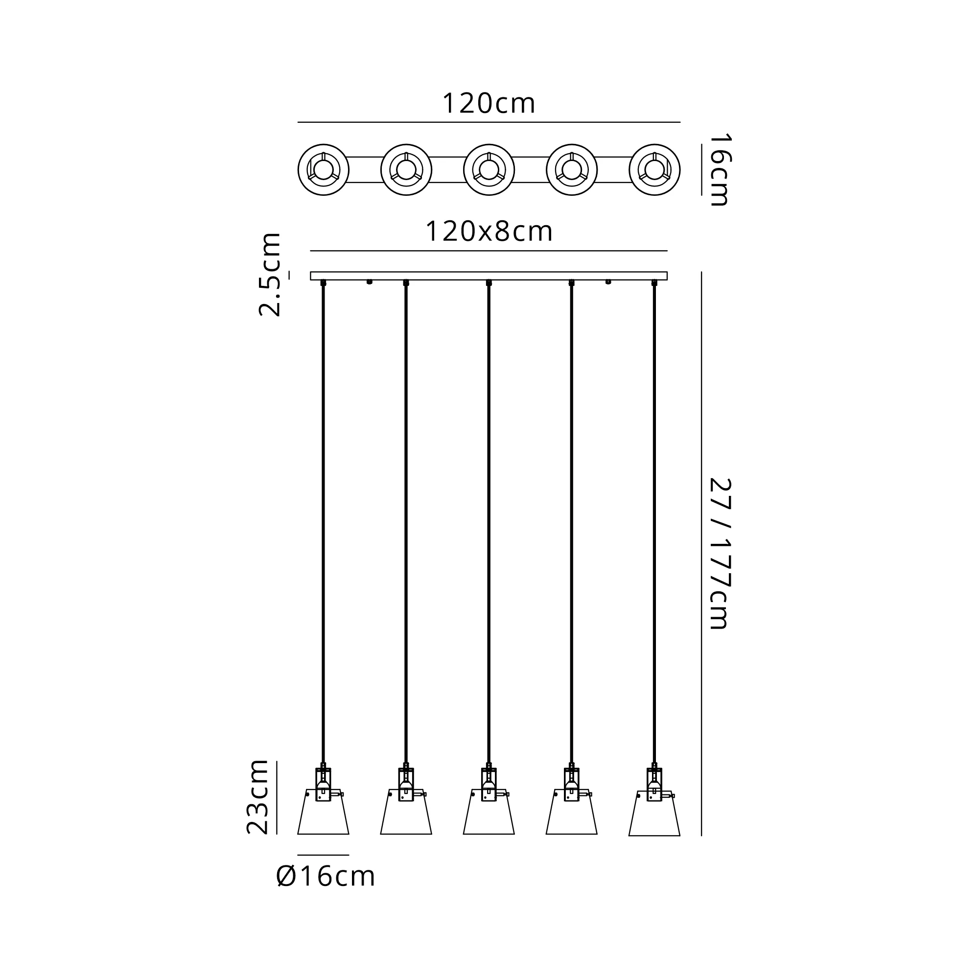 Surrey Linear 5 Light Pendant, (FRAME ONLY), 5 x E27, Sand Black