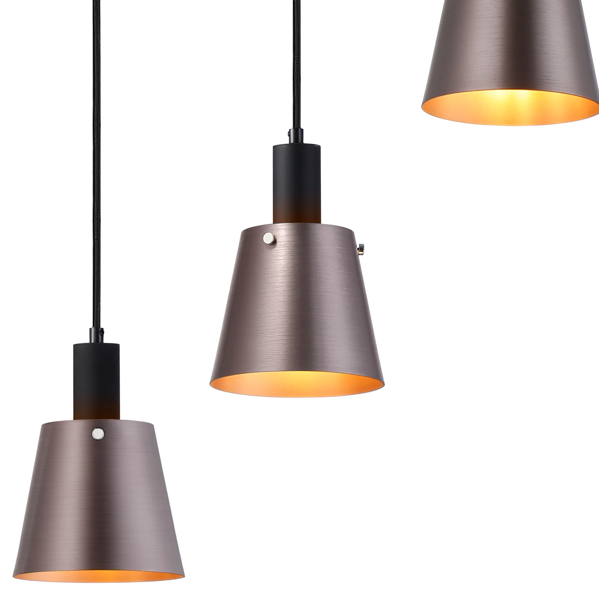 The Surrey collection takes a traditional lighting concept of conical shades and developing the design into a more modern functioning model. As each shade is made from either metal or glass, they attach to the lighting fixtures with three symmetrical bolts and are available in a range of colours and sizes. As this is a bespoke collection, a wide variety of E27 lighting solutions are available including a sand black frame. These range from multiple pendants to semi ceiling lights with adjustable arms.