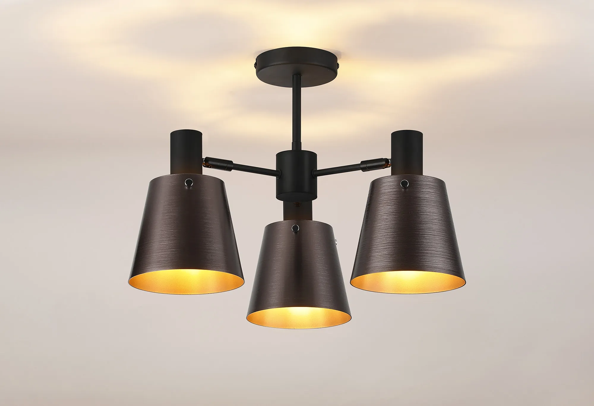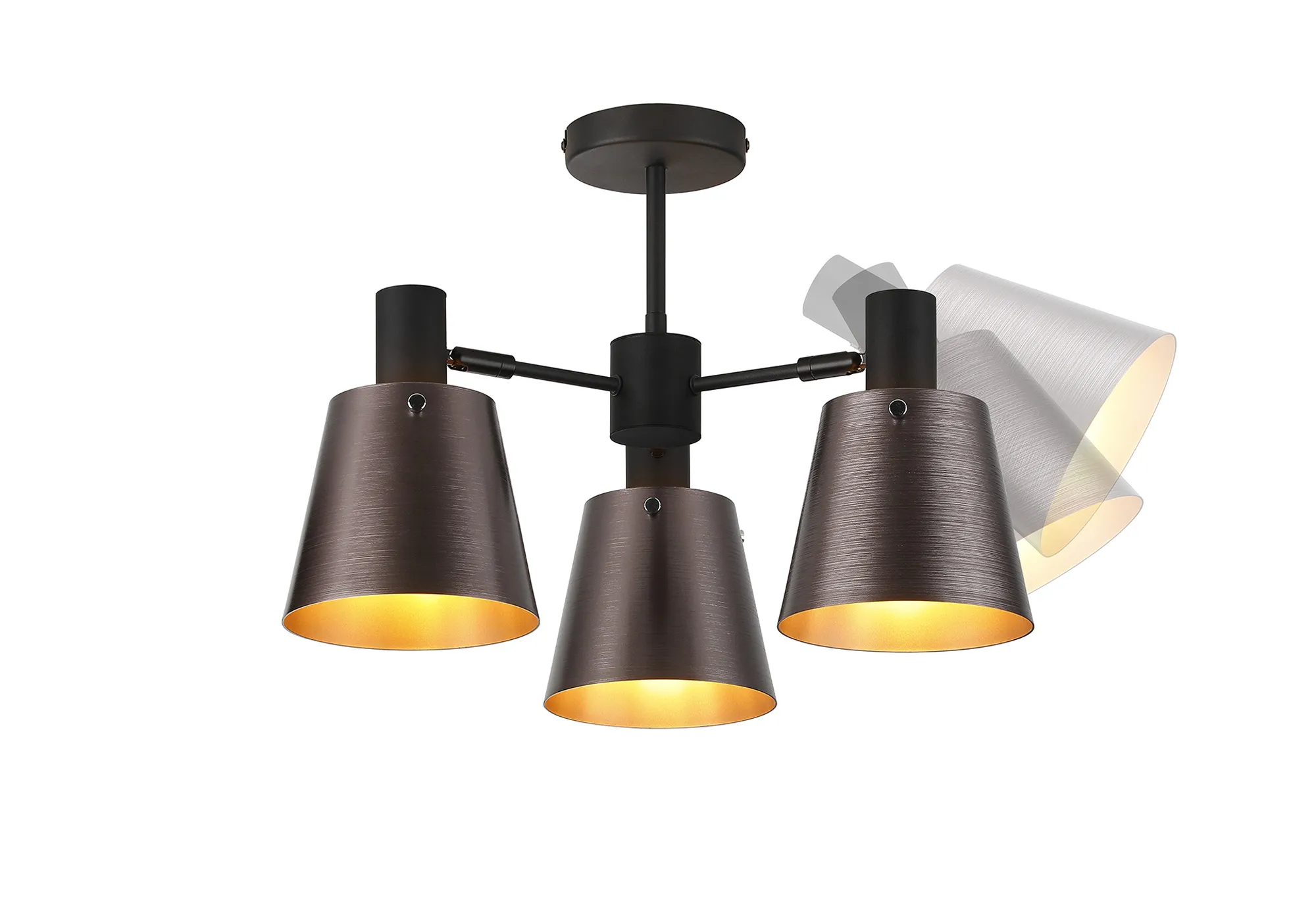 Surrey Semi Ceiling x Adjustable Arms, 16cm x 14cm Shade, 5 x E27, Sand Black/Brown/Copper Metal Shade