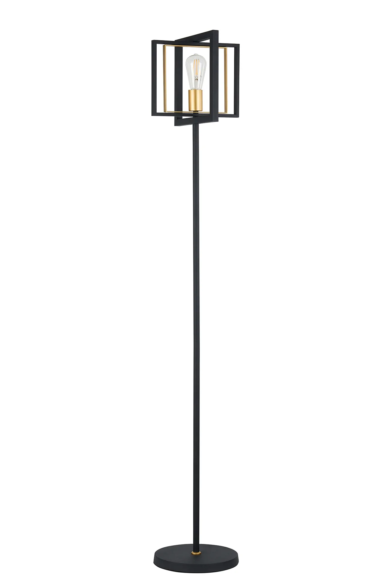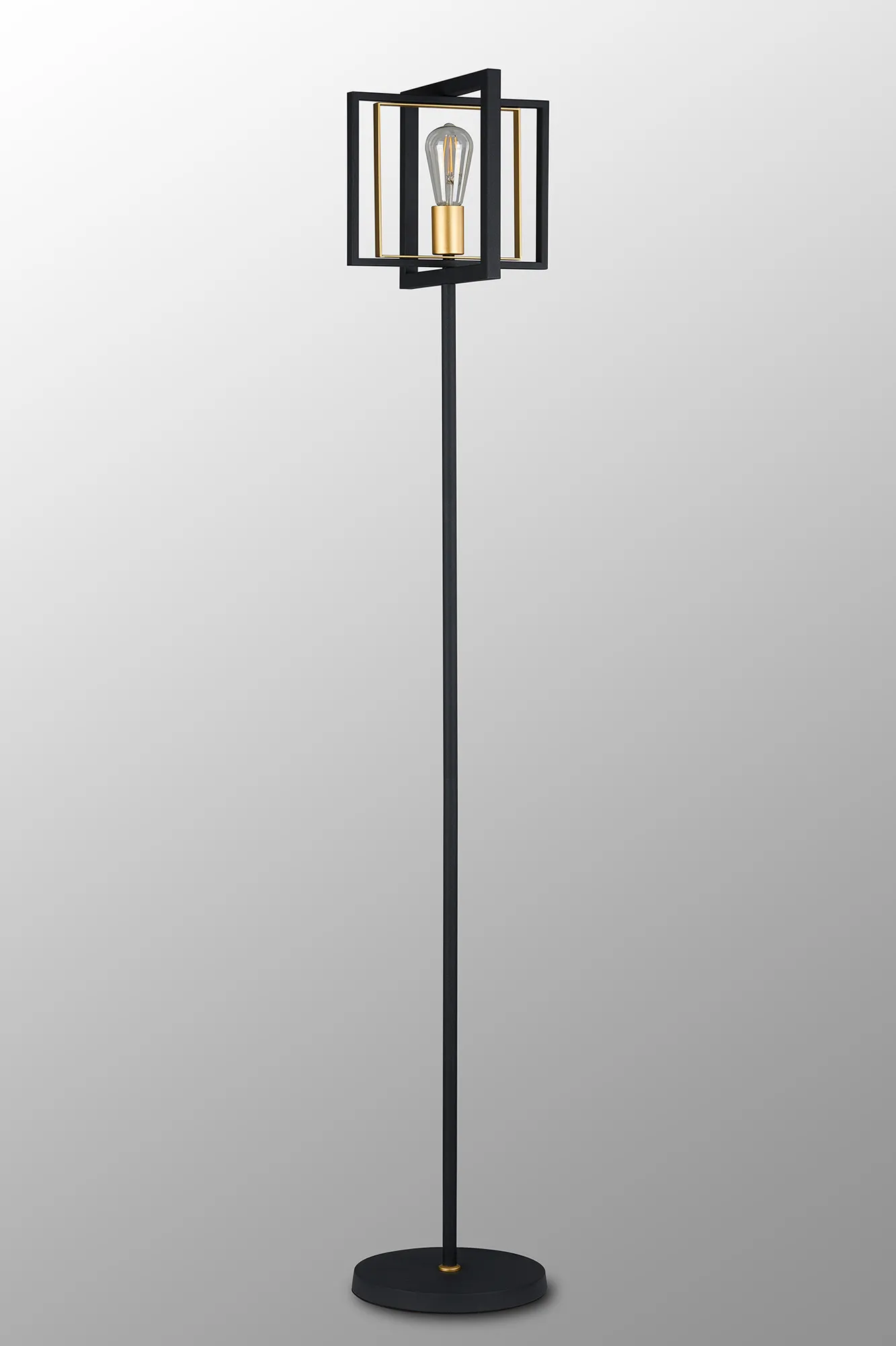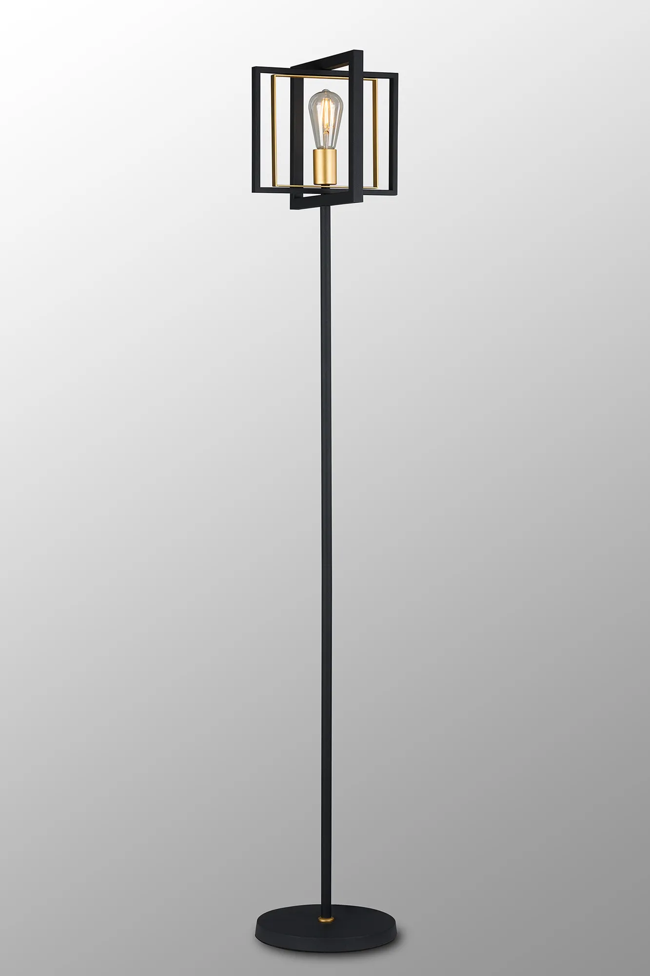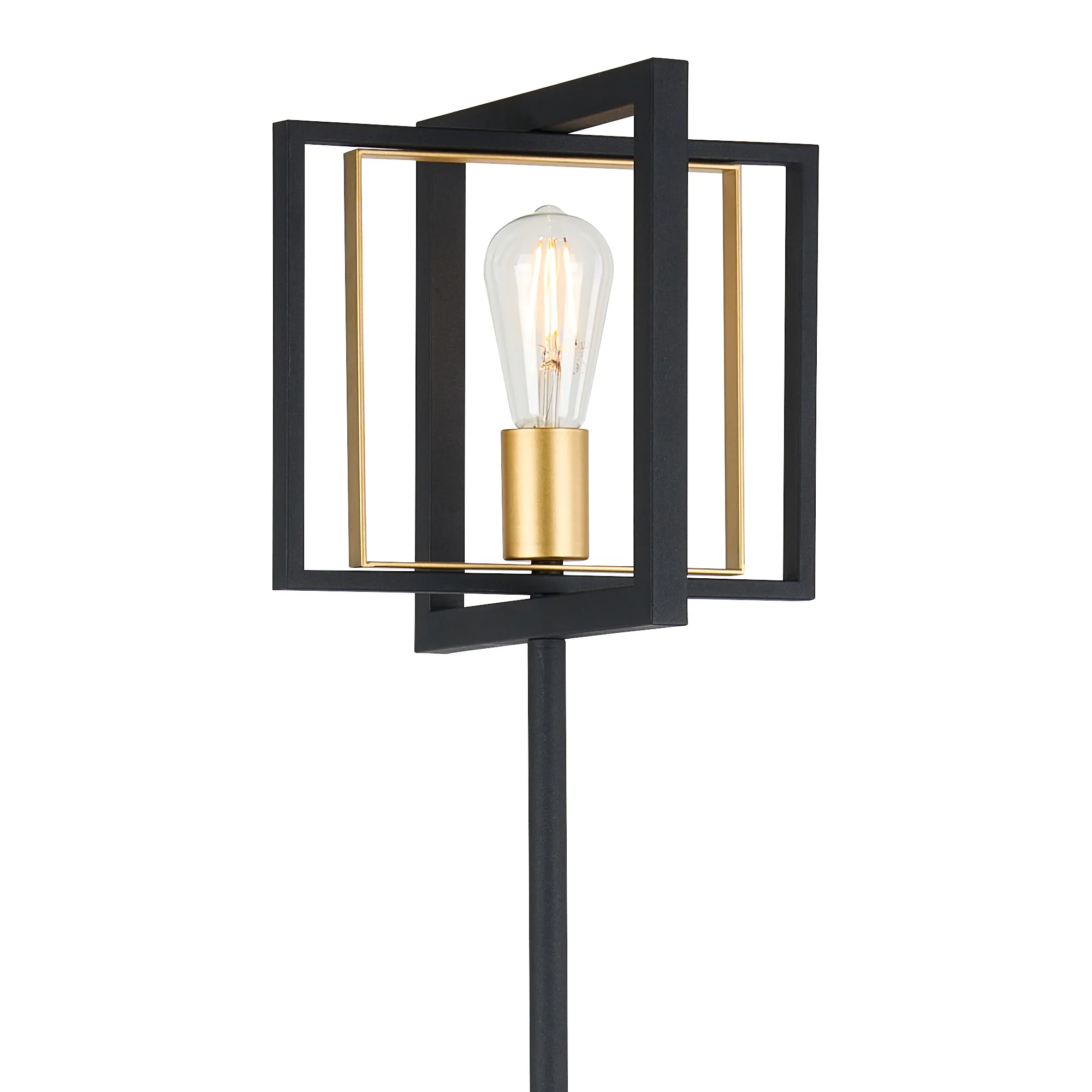 One of the earliest methods of lighting was illuminating a room by sitting candles within a hanging frame, this concept has been taken to create the contemporary collection Terrace. The satin black and champagne gold colour combination gives this selection of pendants, wall, table and floor lamp a contrasting antique feel whilst the rectangular and square shapes used to construct the frames bring modern elements to this E27 range.