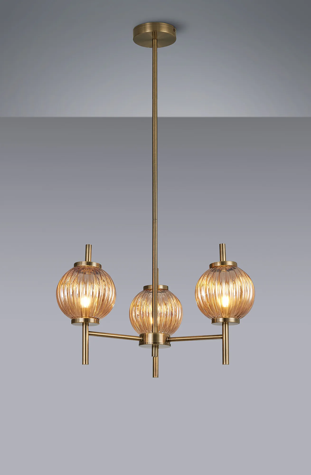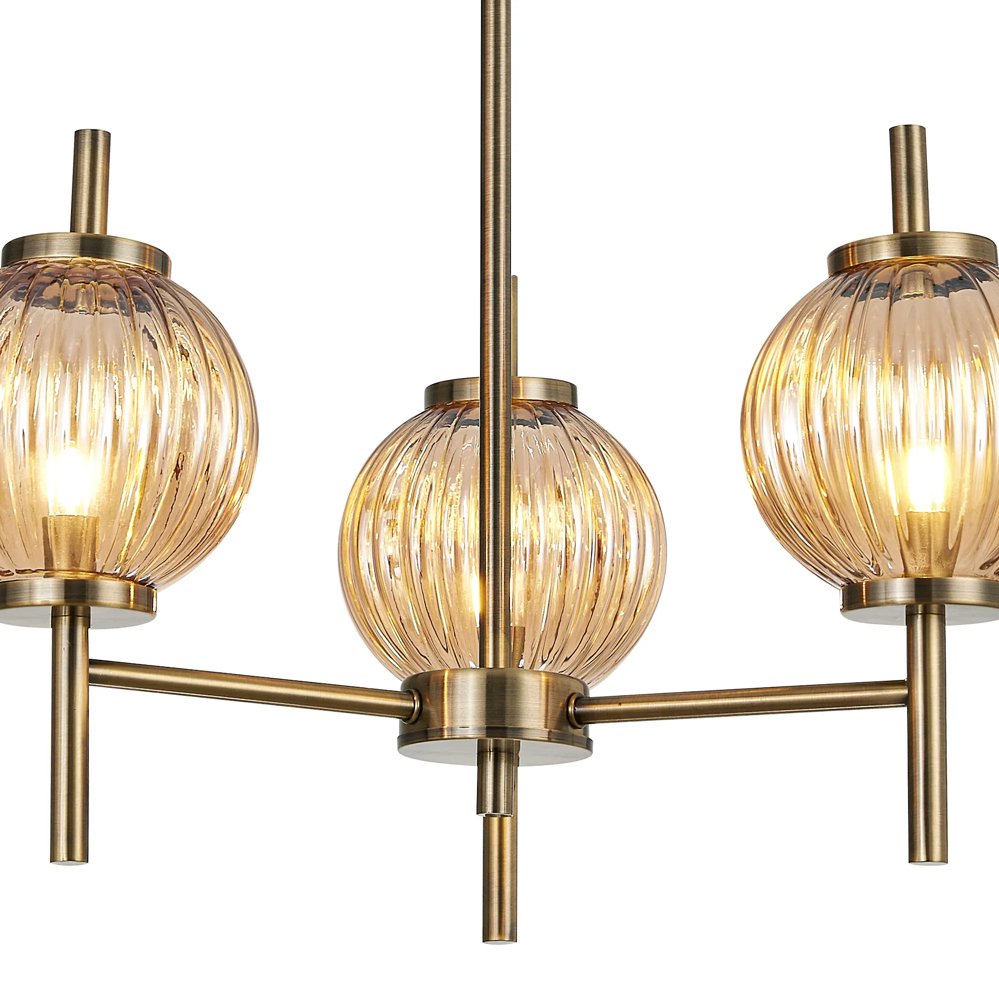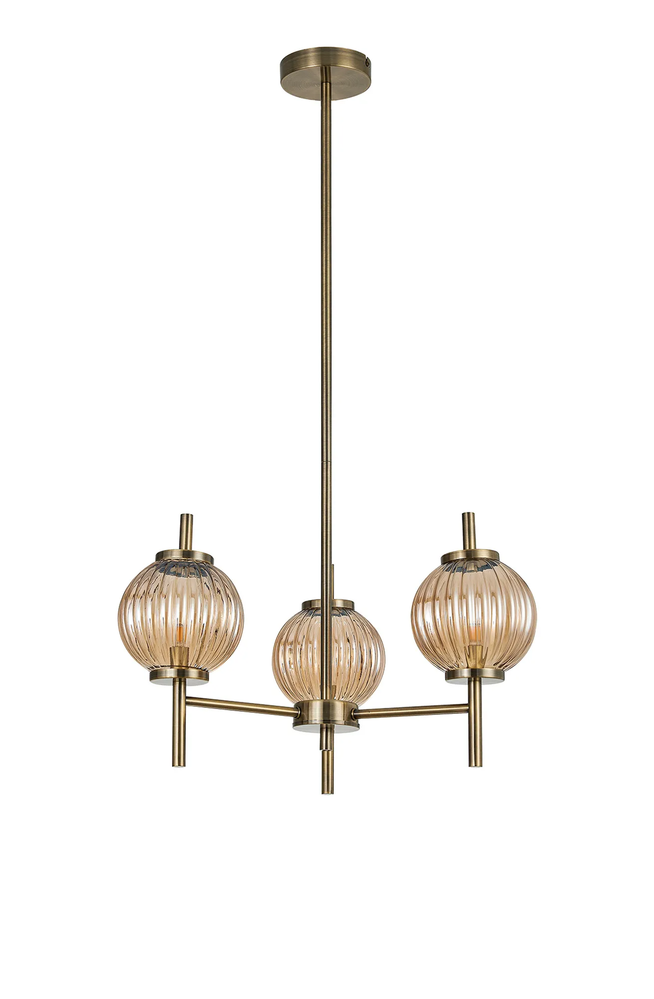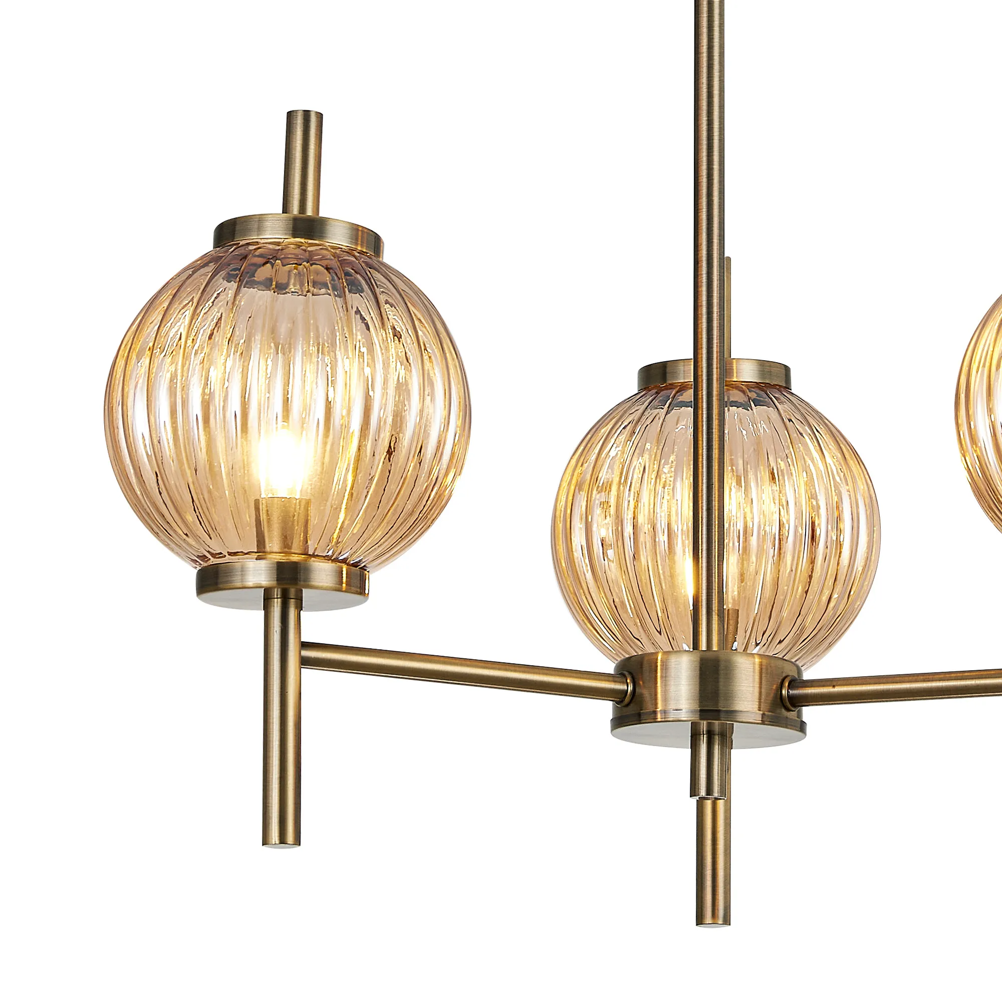 OTHER Leigh 55cm Multi Height Pendant, 3 x G9, Antique Brass/Amber Glass