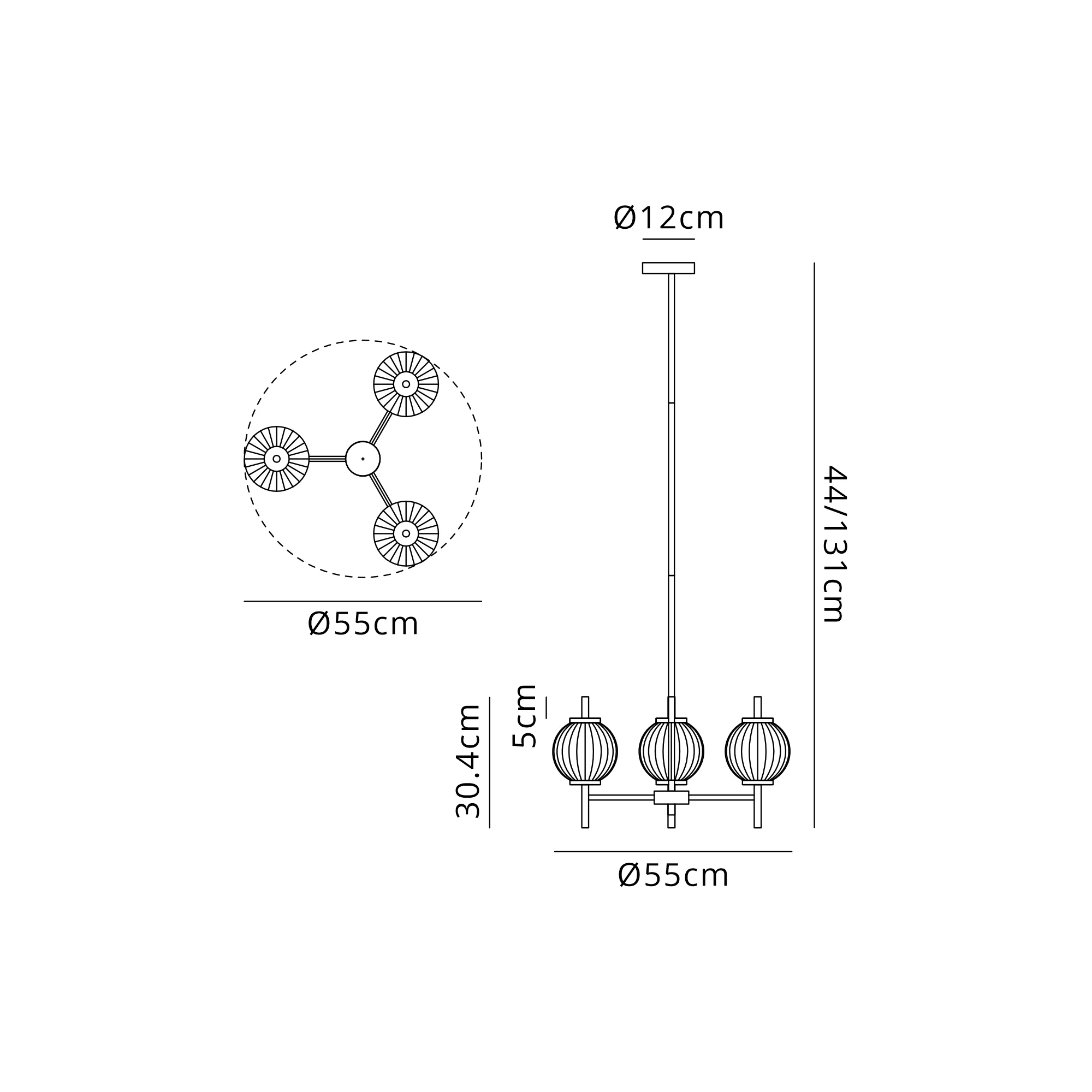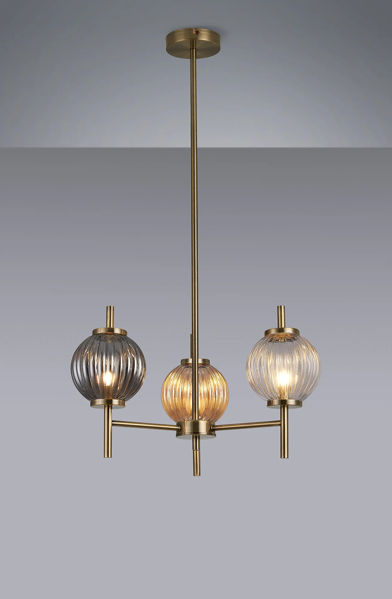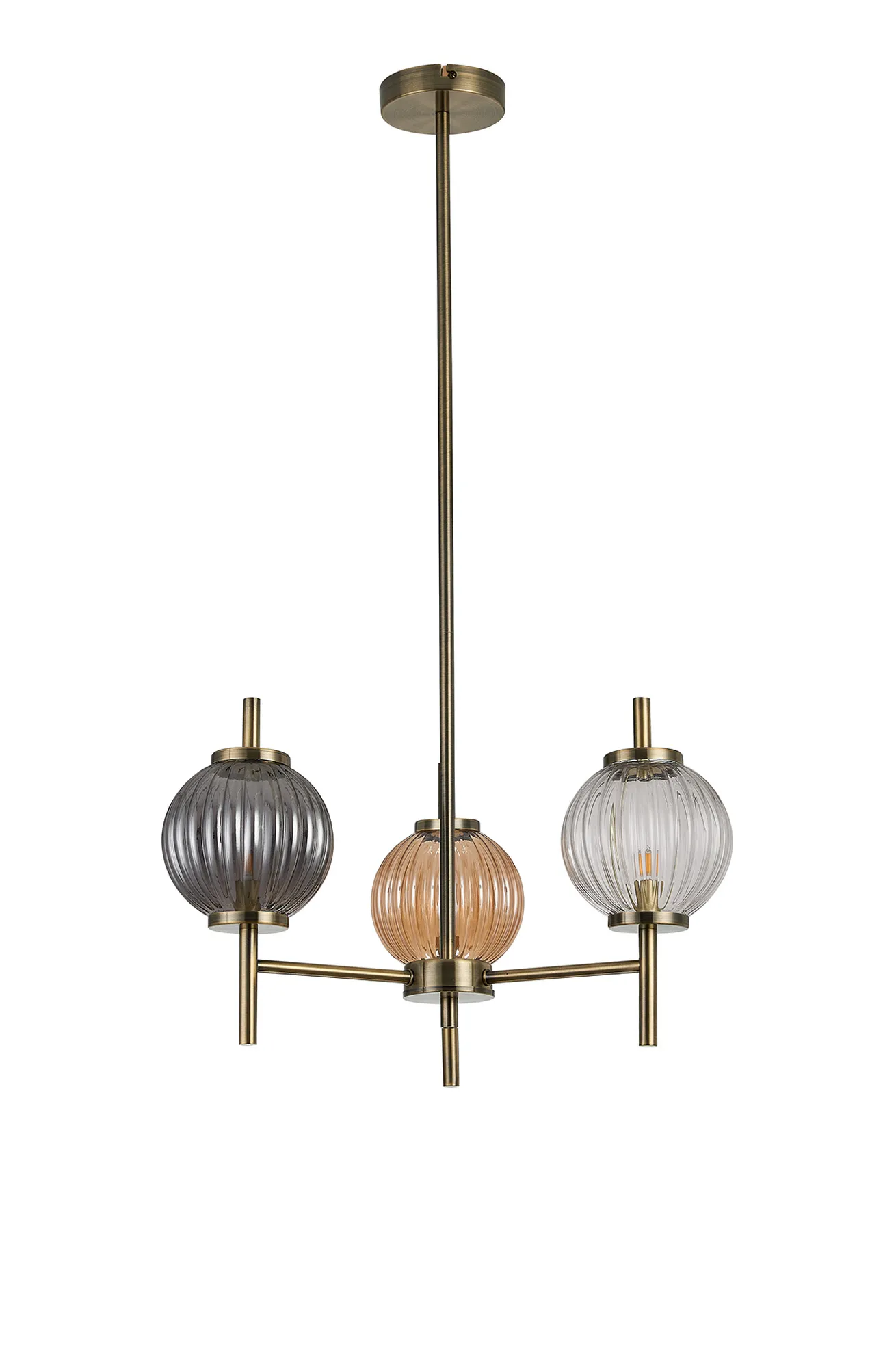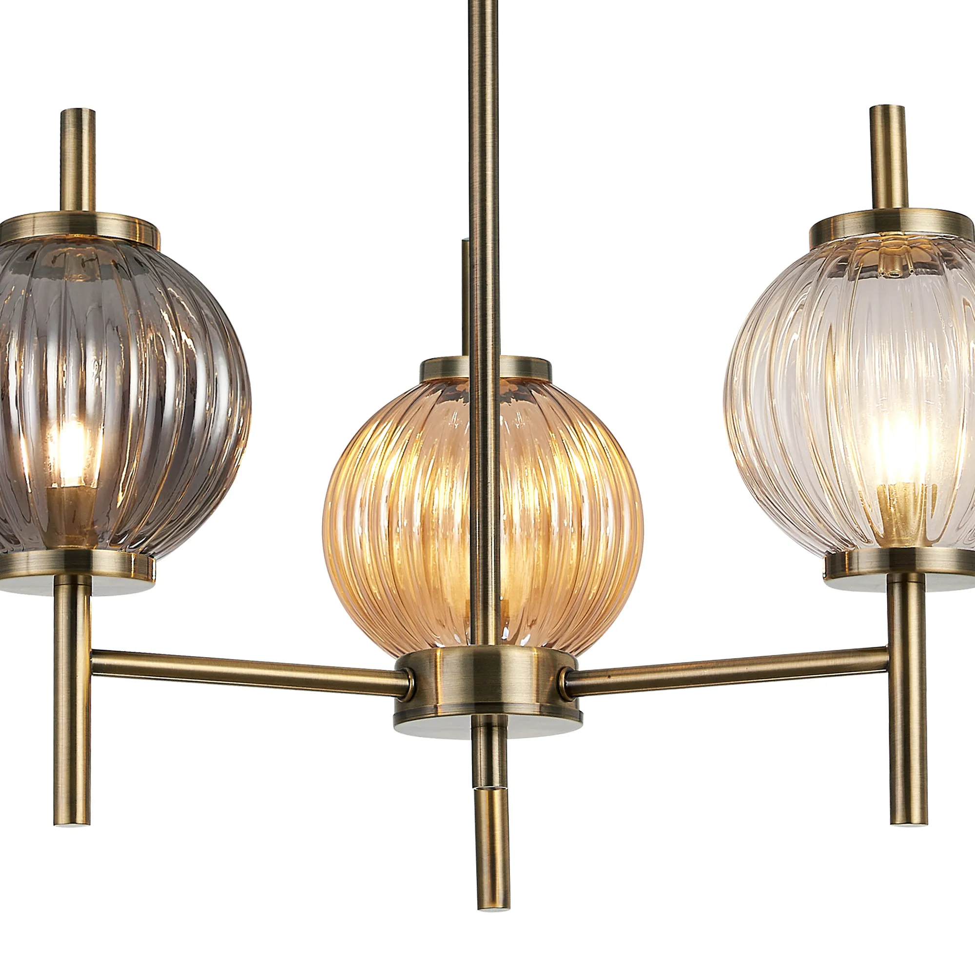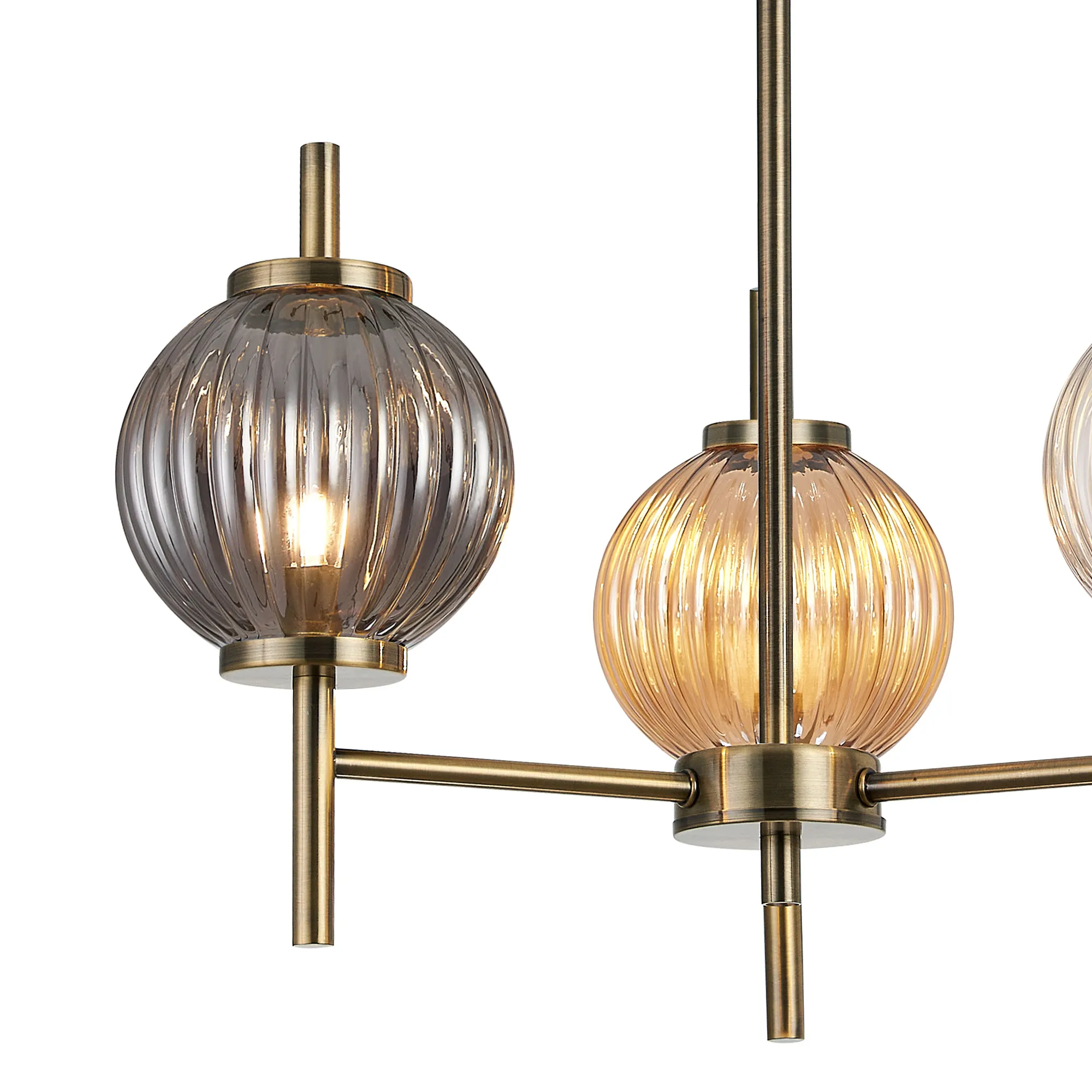 OTHER Leigh 55cm Multi Height Pendant, 3 x G9, Antique Brass/Amber/Clear/Smoke Glass