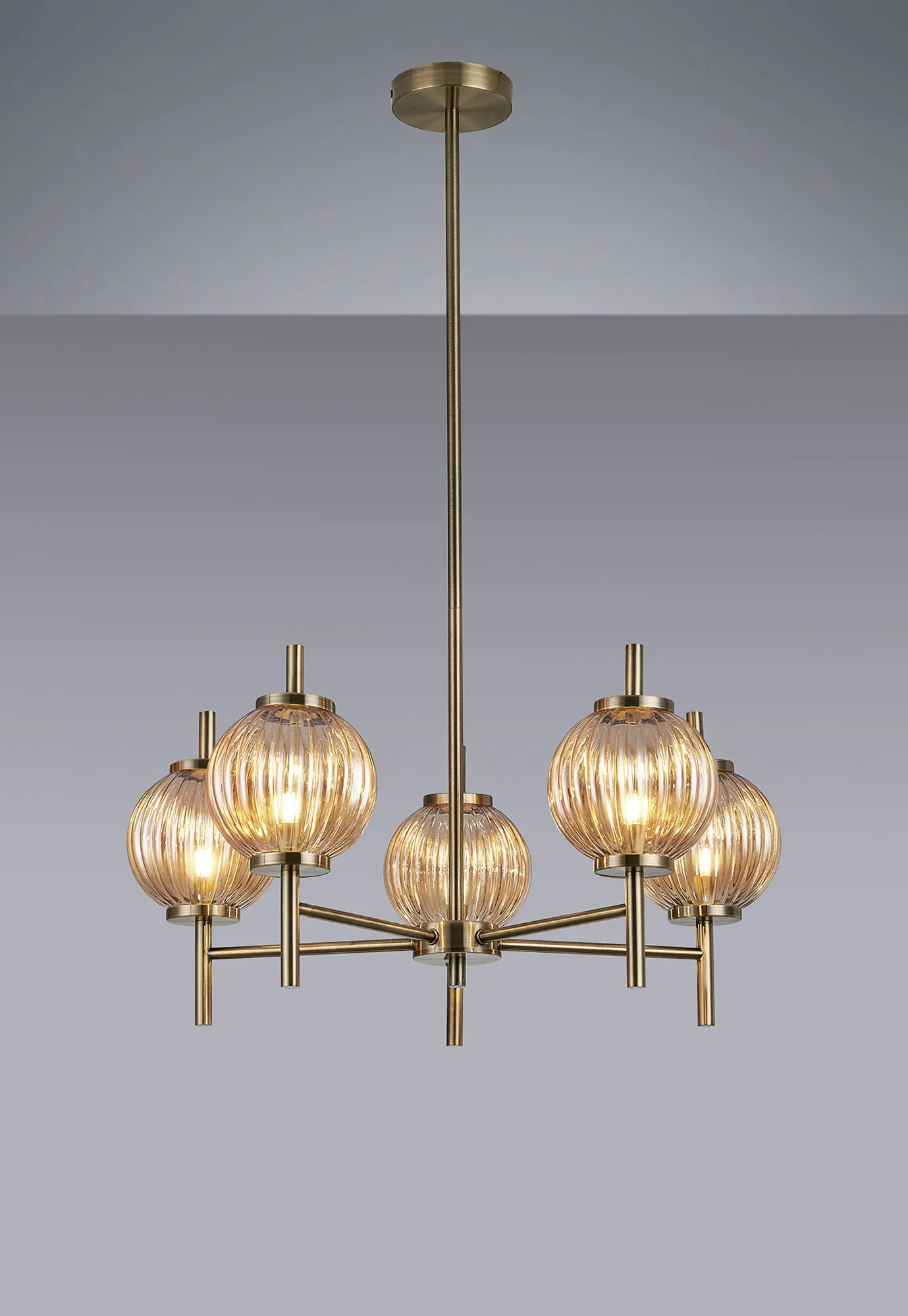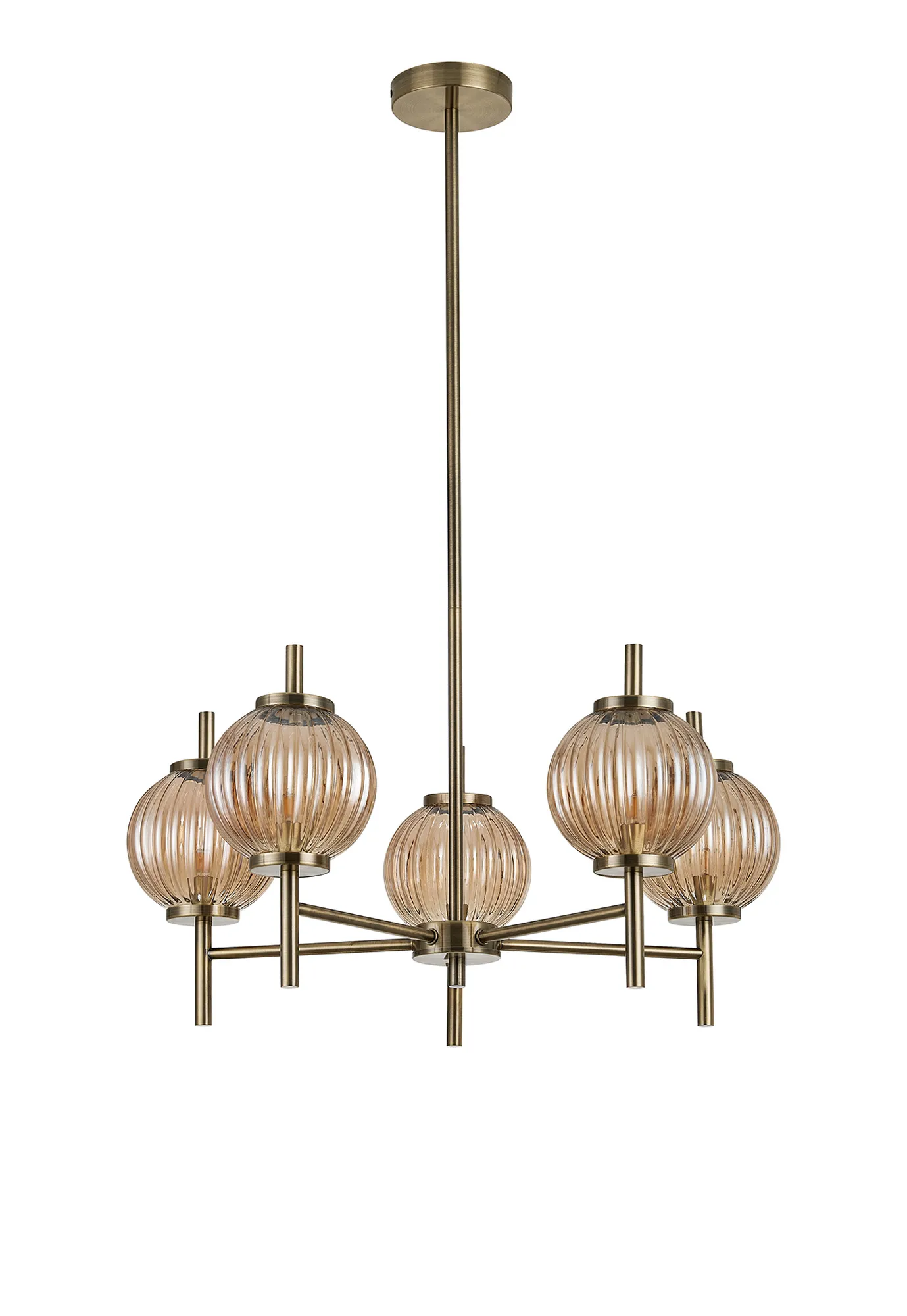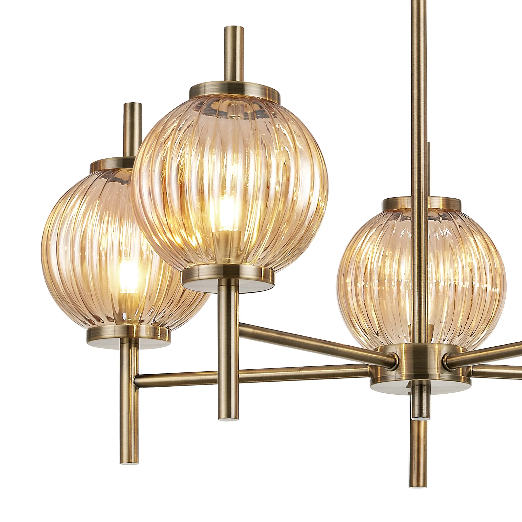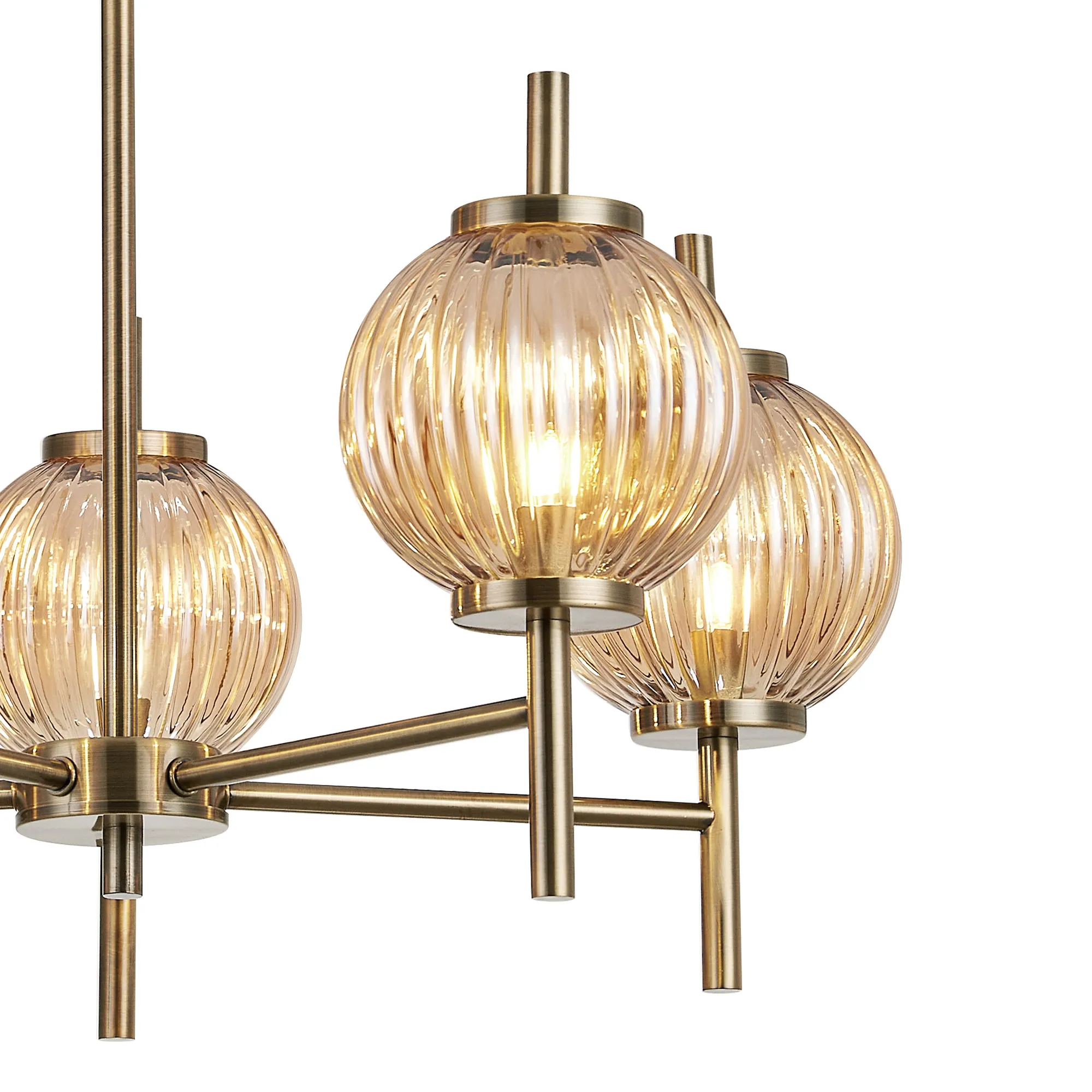 OTHER Leigh 65cm Multi Height Pendant, 5 x G9, Antique Brass/Amber Glass