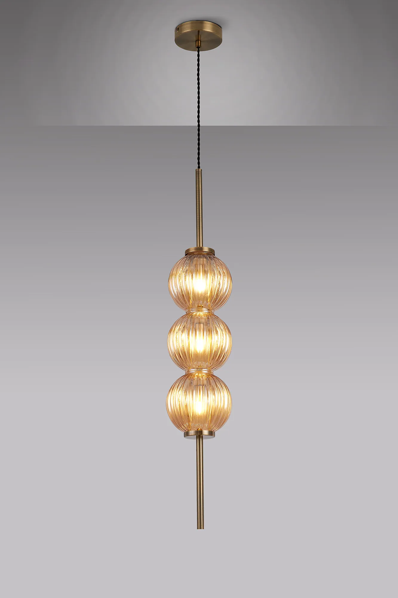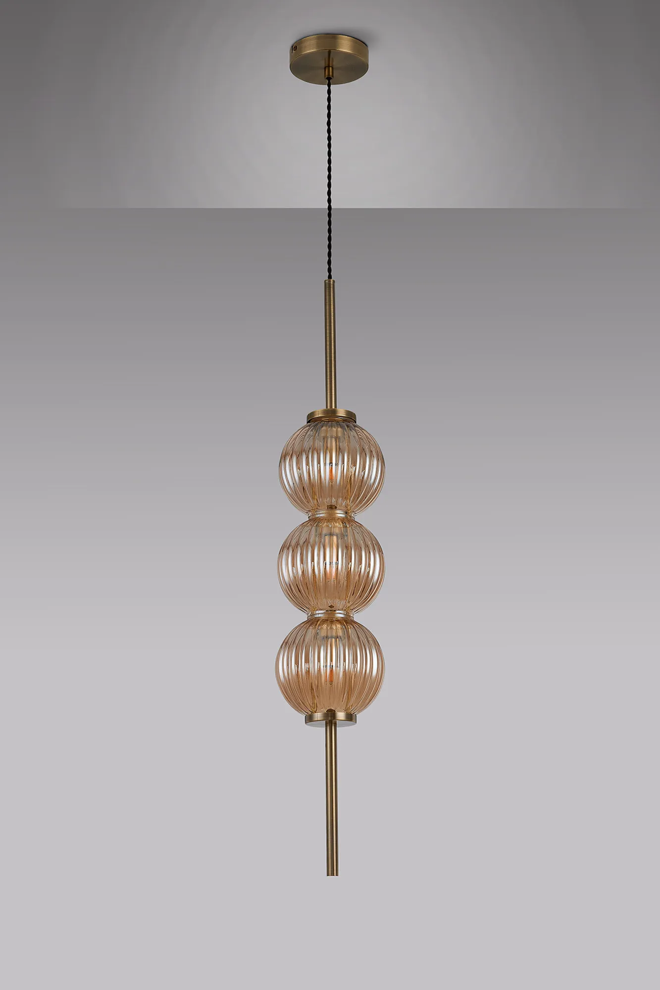 OTHER Leigh 15cm Pendant, 3 x G9, Antique Brass/Amber Glass