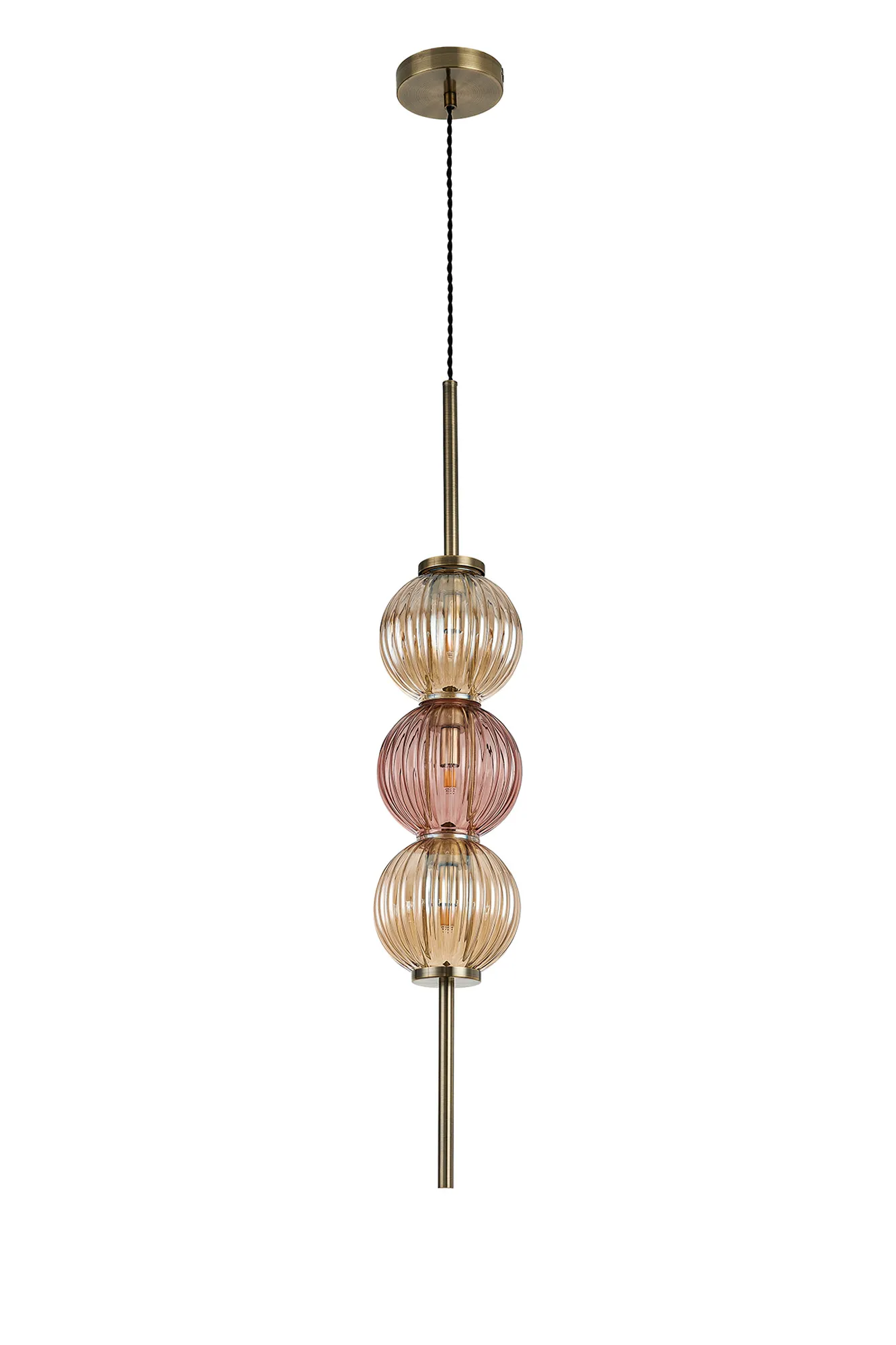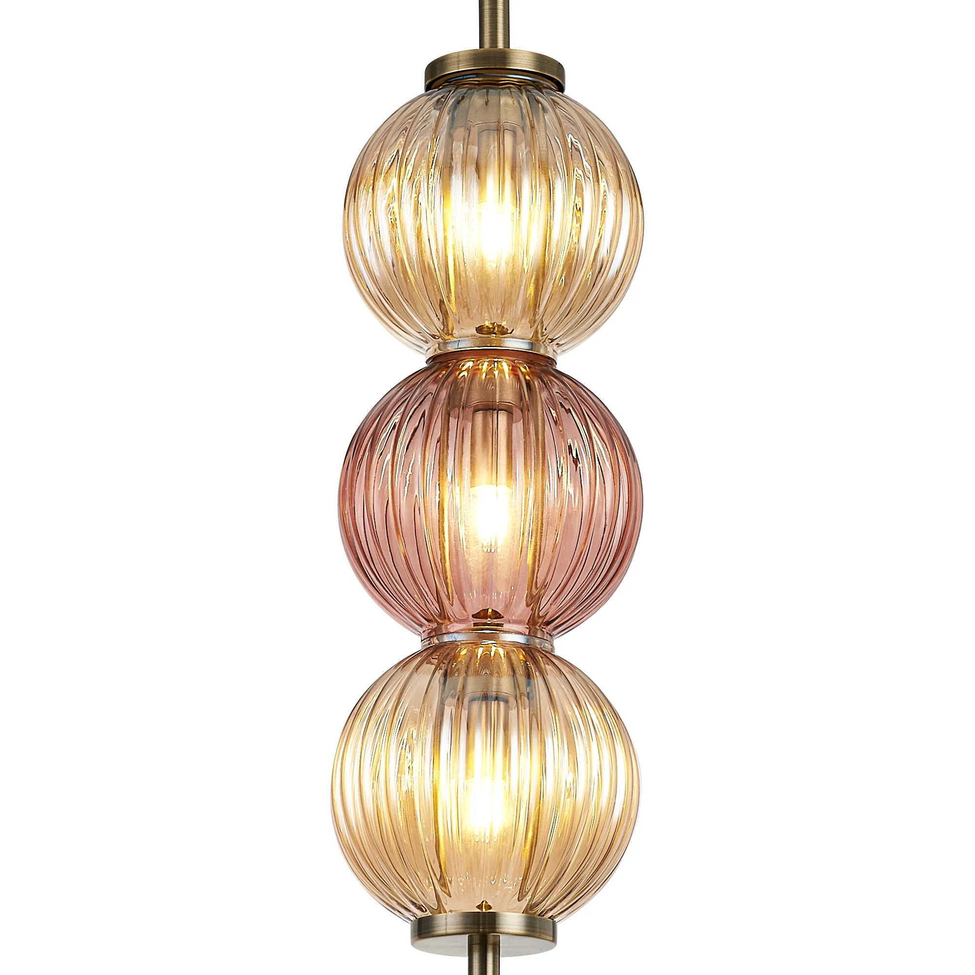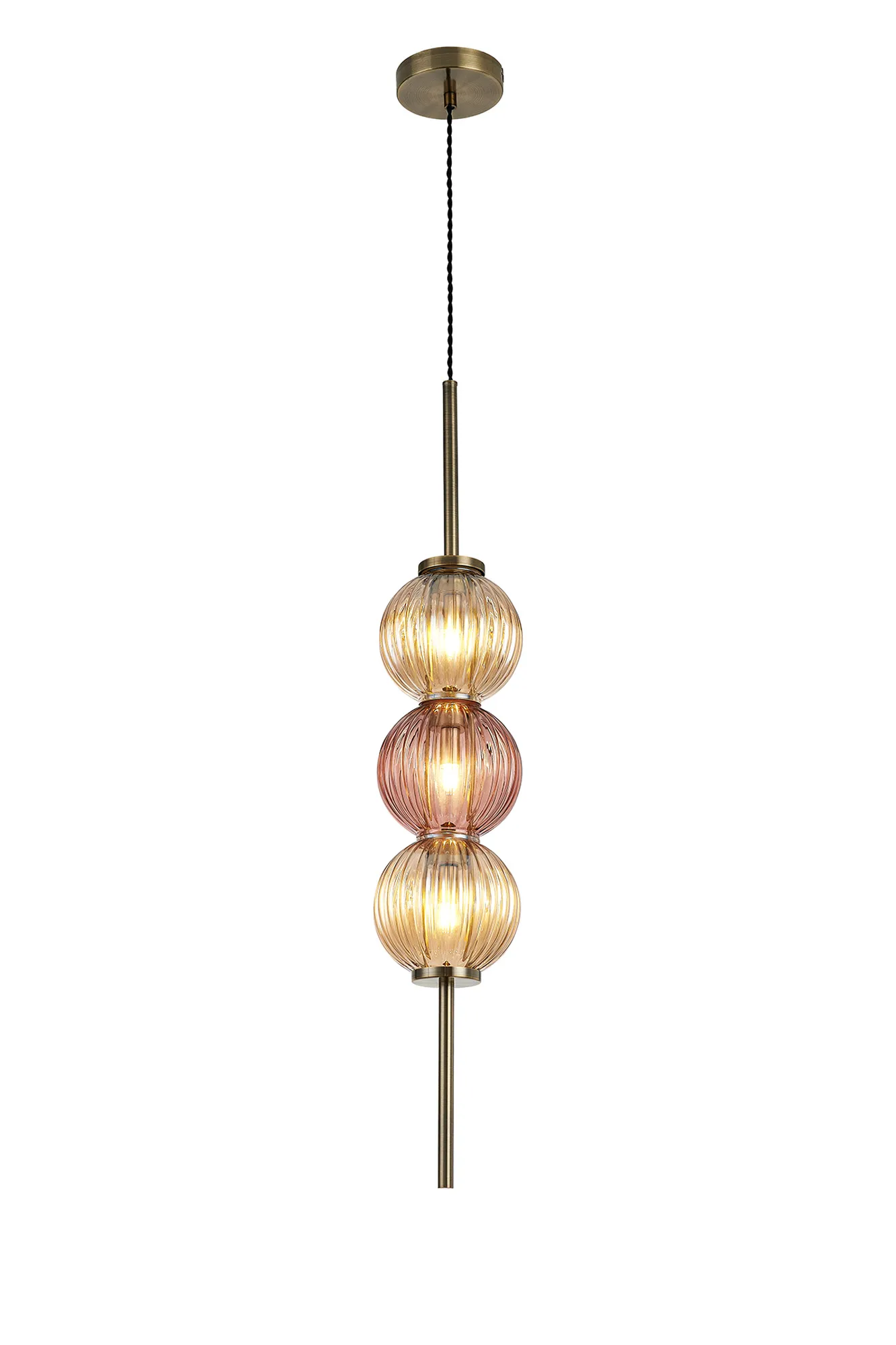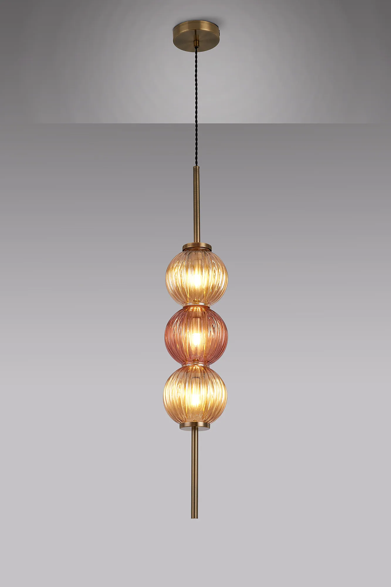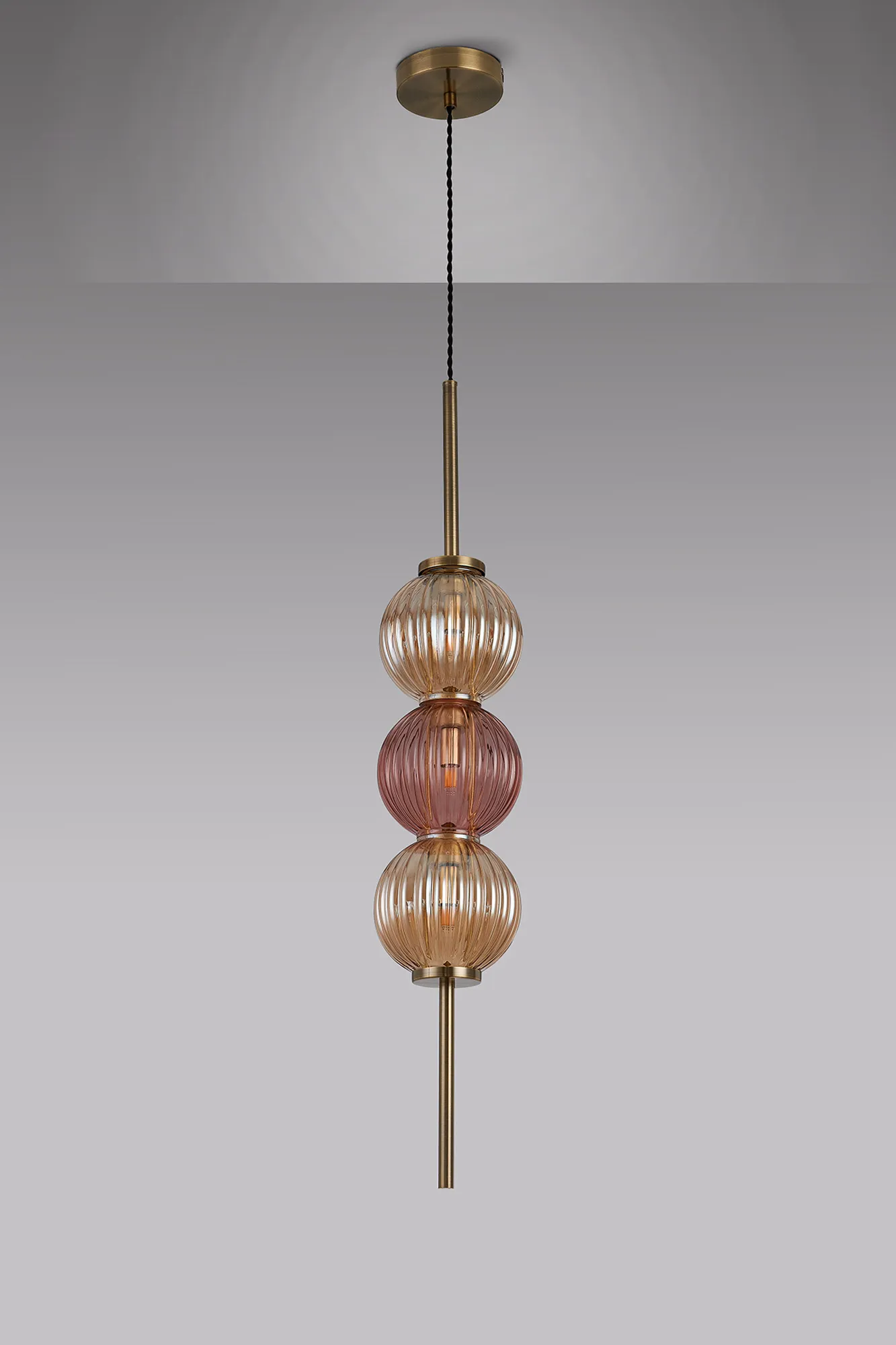 OTHER Leigh 15cm Pendant, 3 x G9, Antique Brass/Amber/Blush Pink Glass