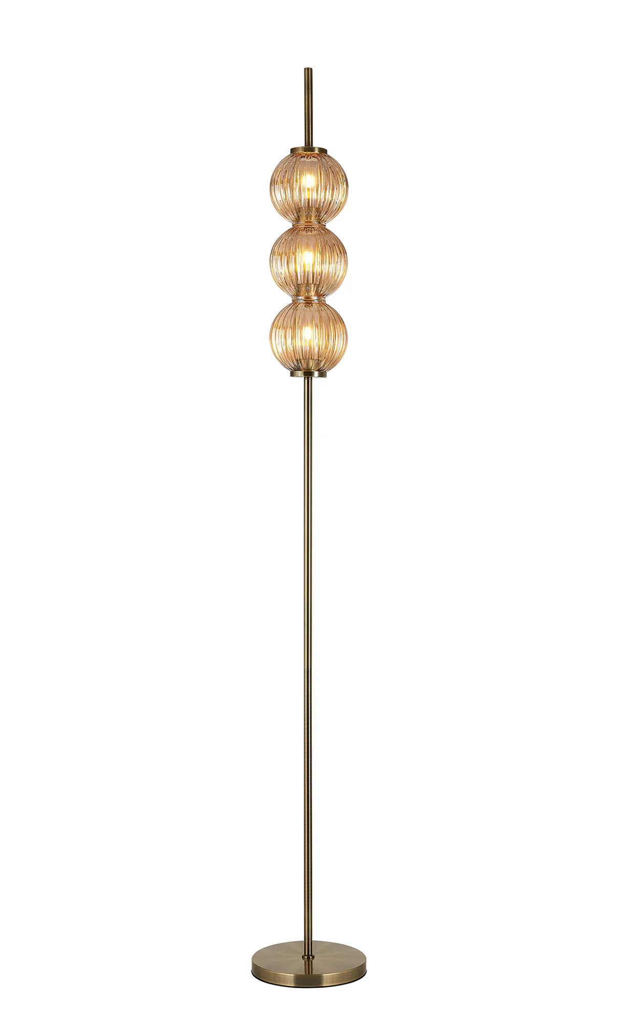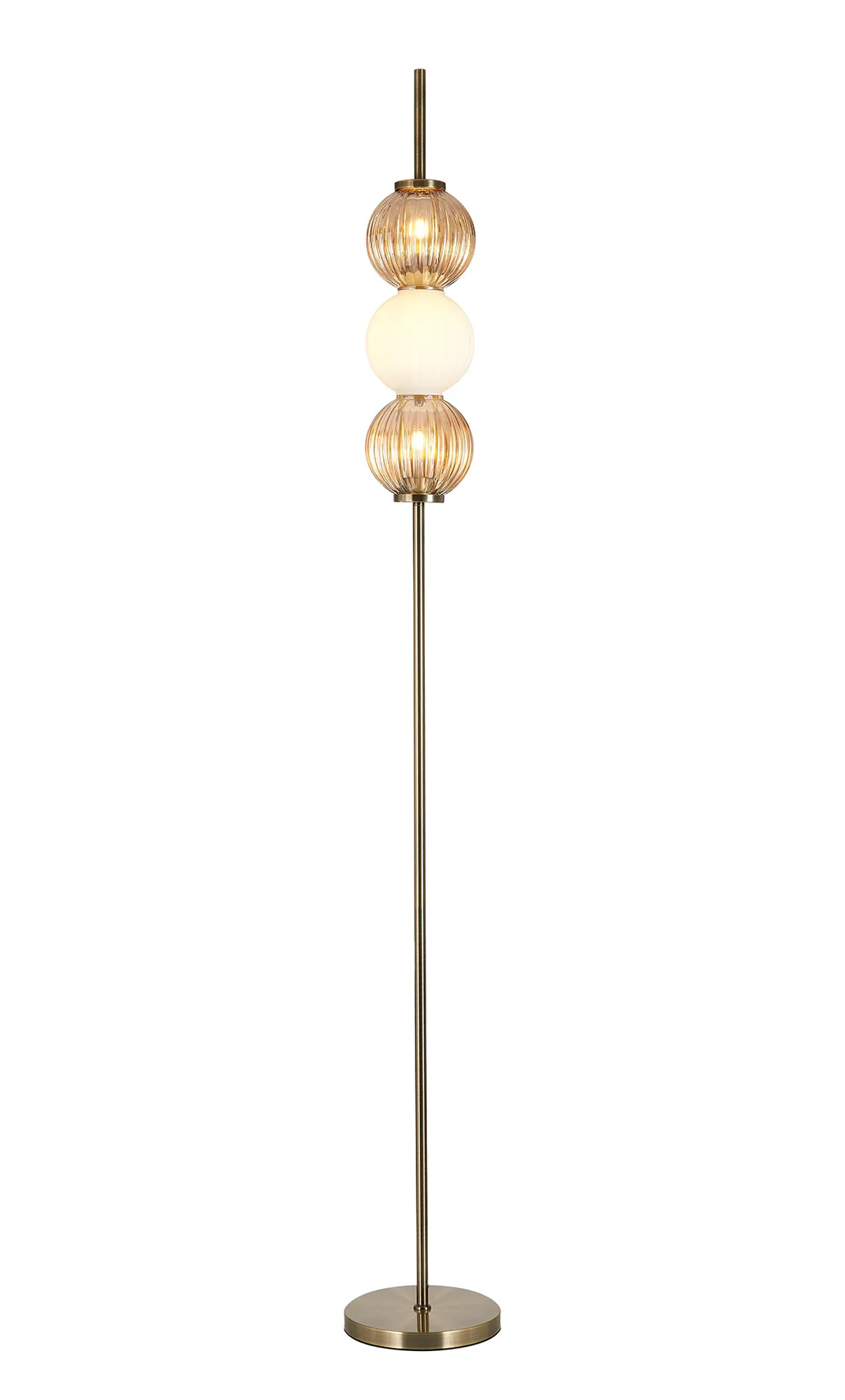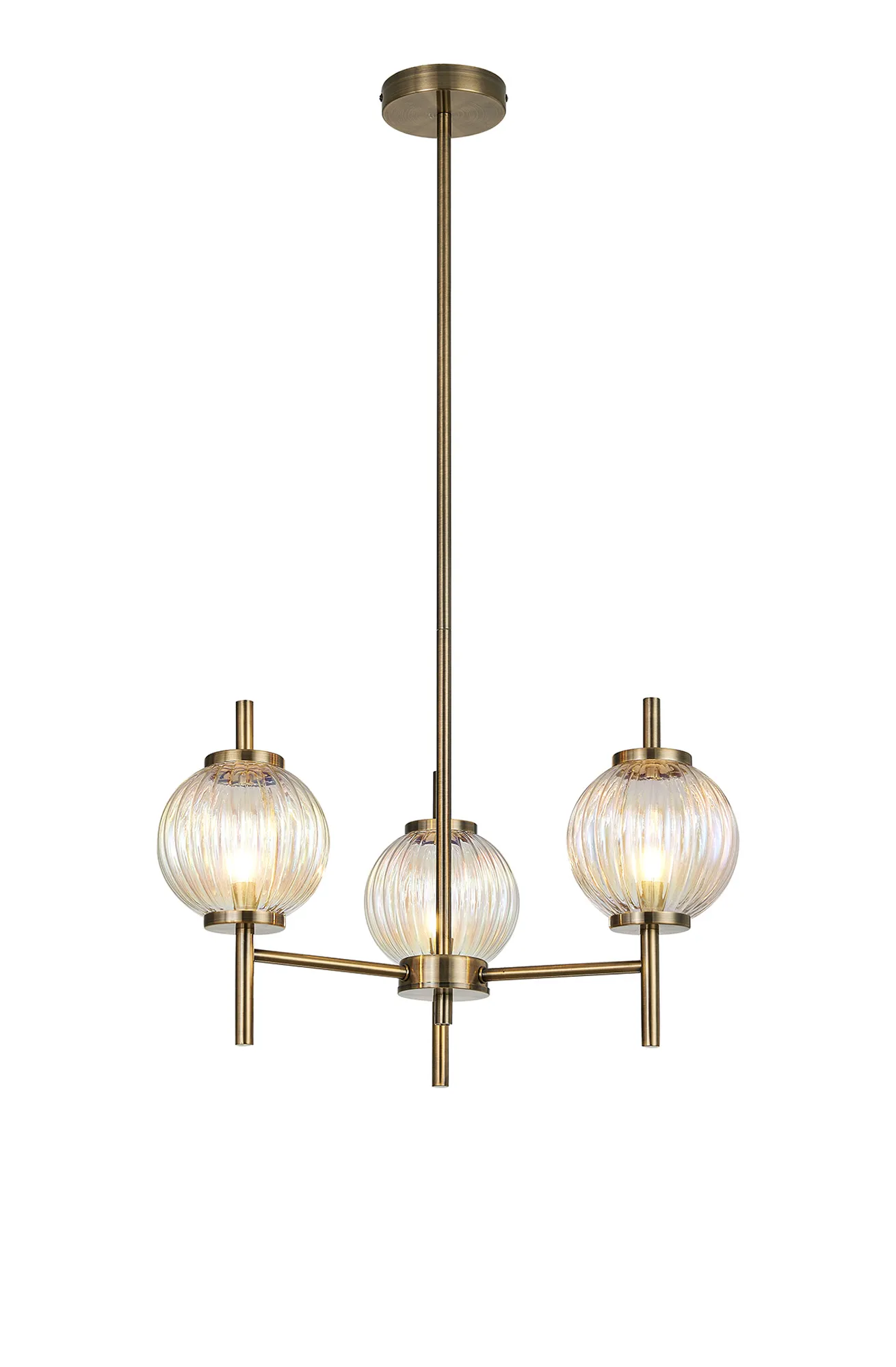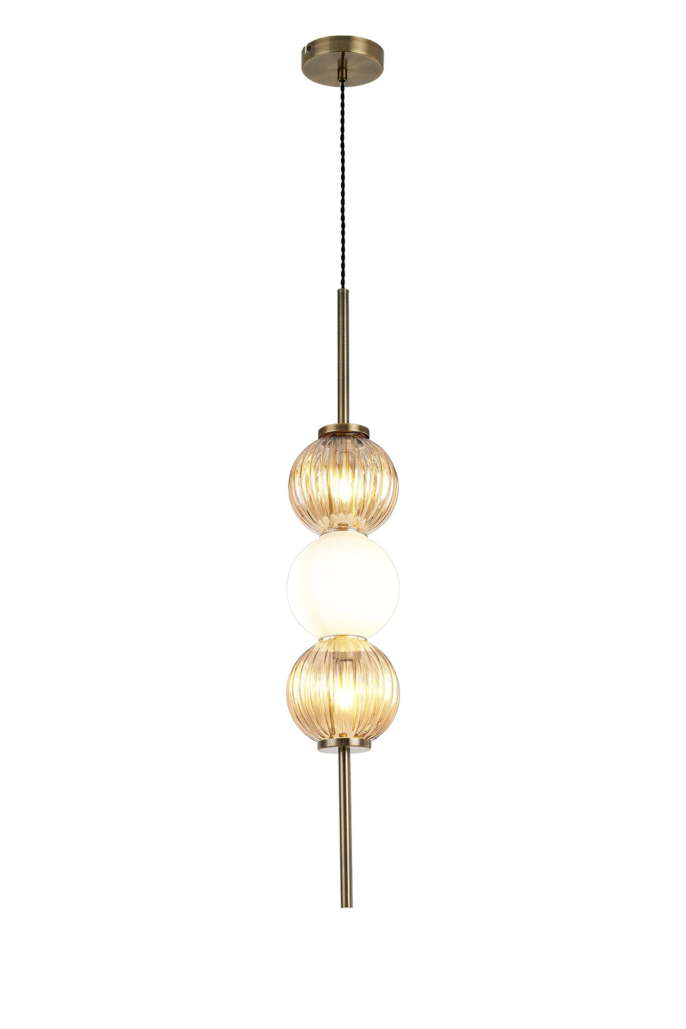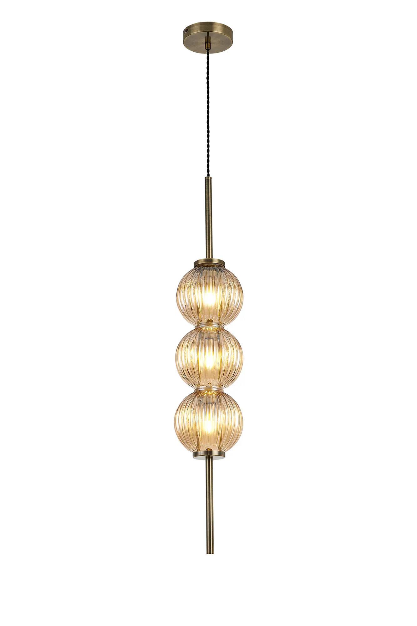 OTHER Leigh 15cm Pendant, 3 x G9, Antique Brass/Amber/Blush Pink Glass