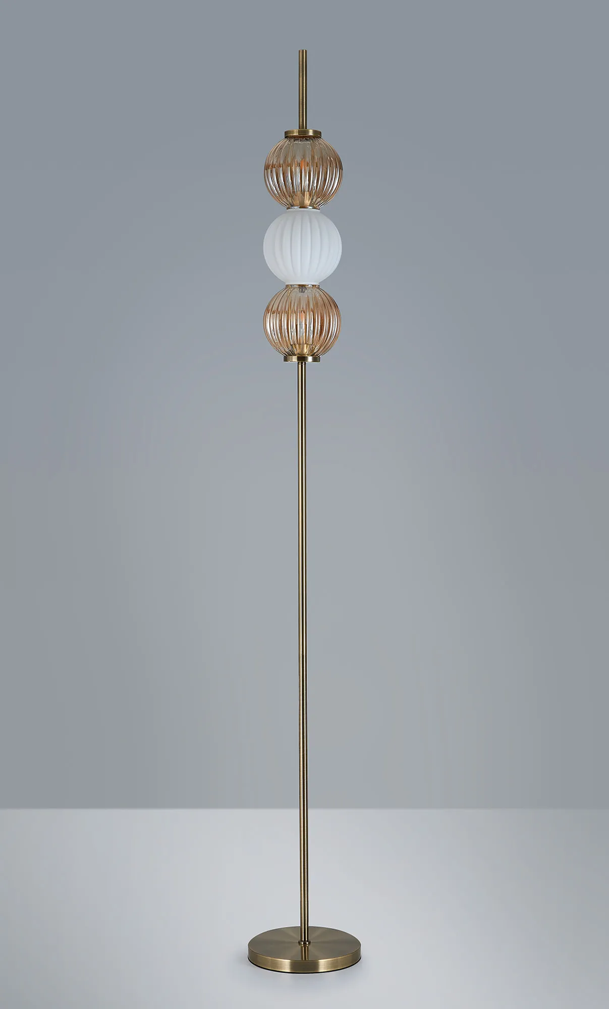 OTHER Leigh Floor Lamp, 3 x G9, Antique Brass/Amber/Opal Glass