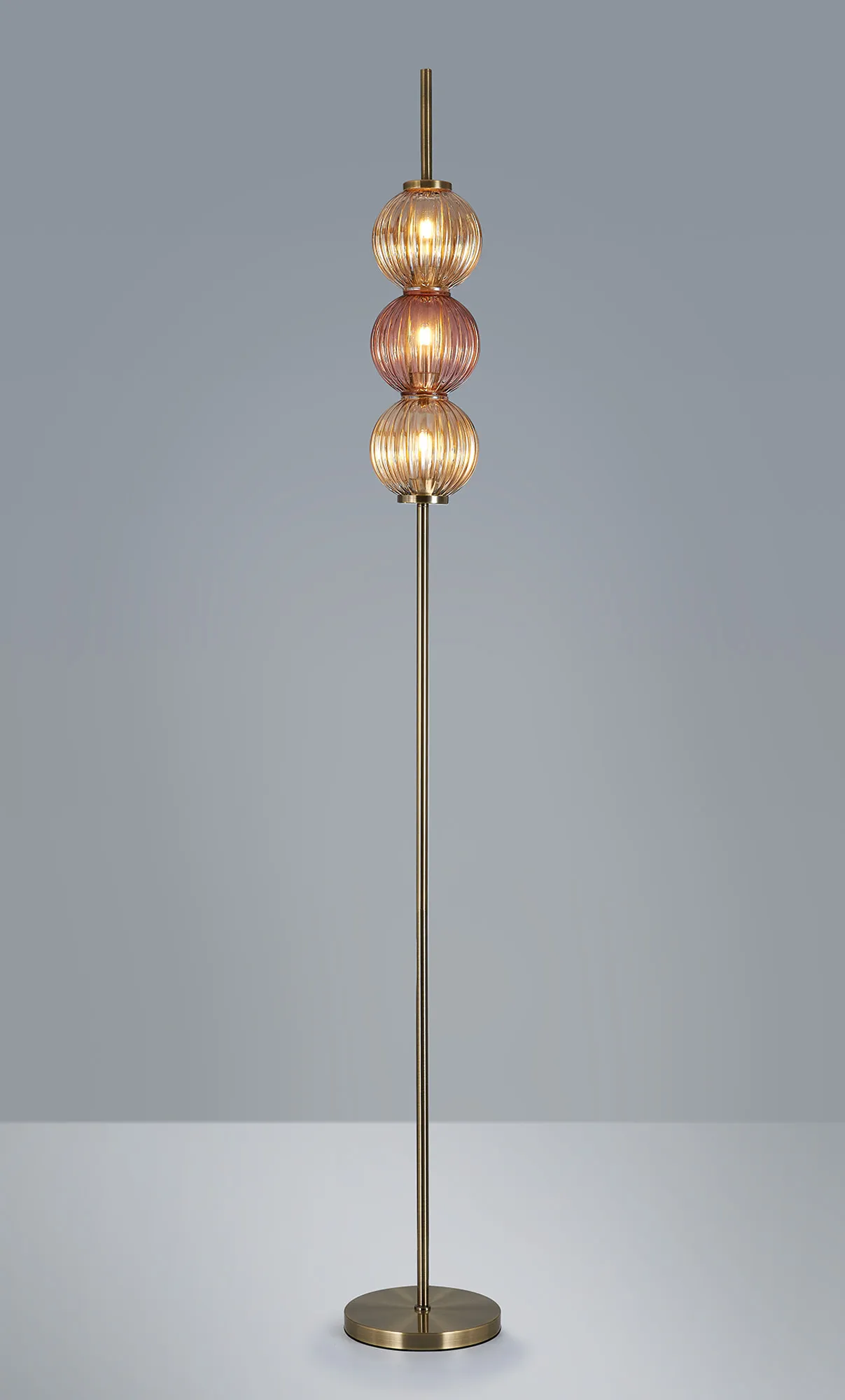 OTHER Leigh Floor Lamp, 3 x G9, Antique Brass/Amber/Blush Pink Glass