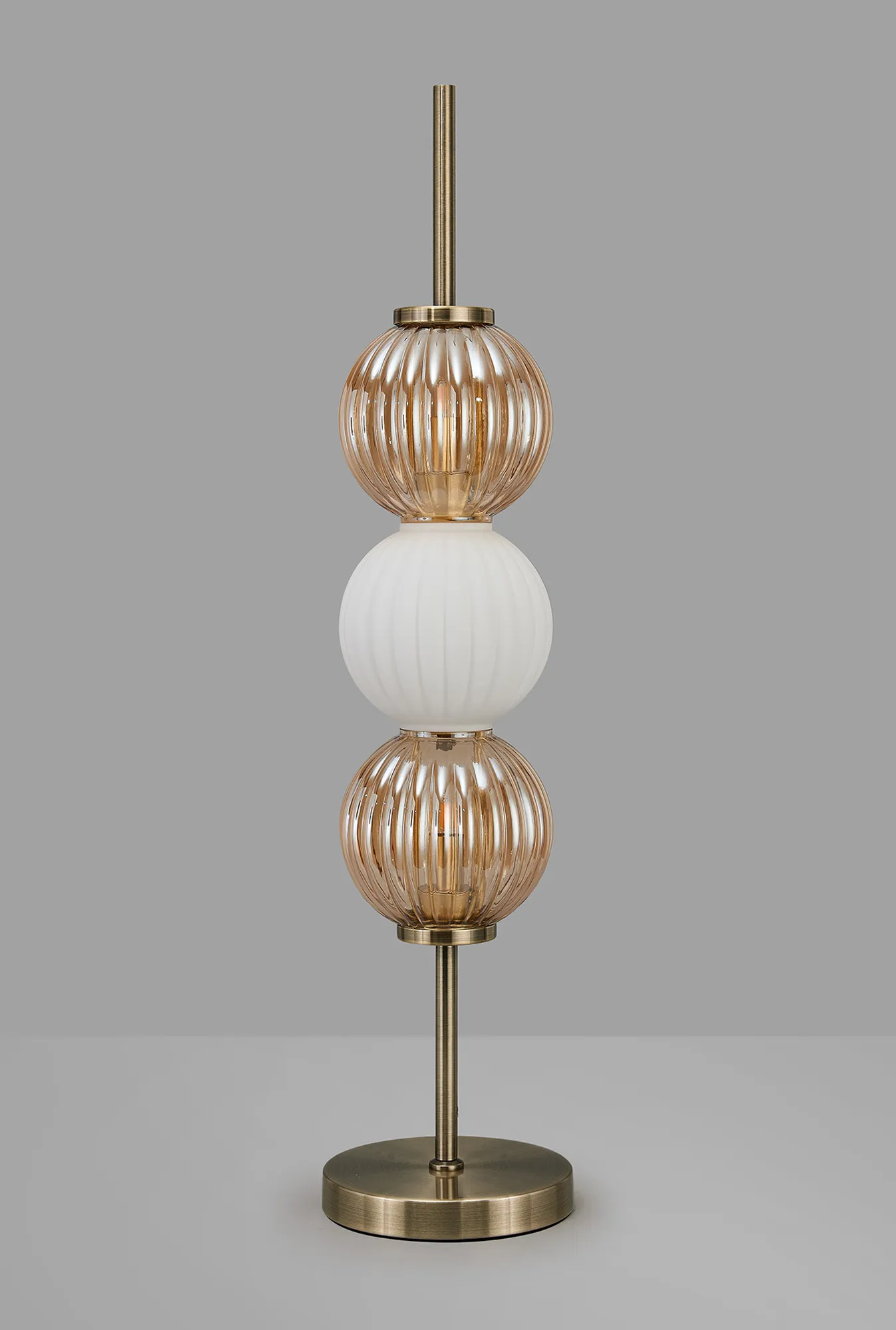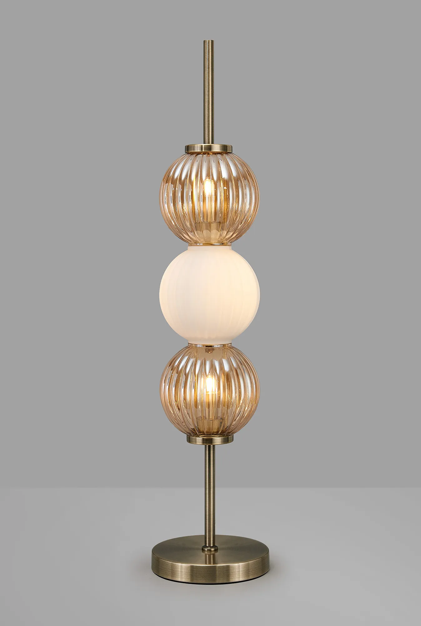 OTHER Leigh Table Lamp, 3 x G9, Antique Brass/Amber/Opal Glass
