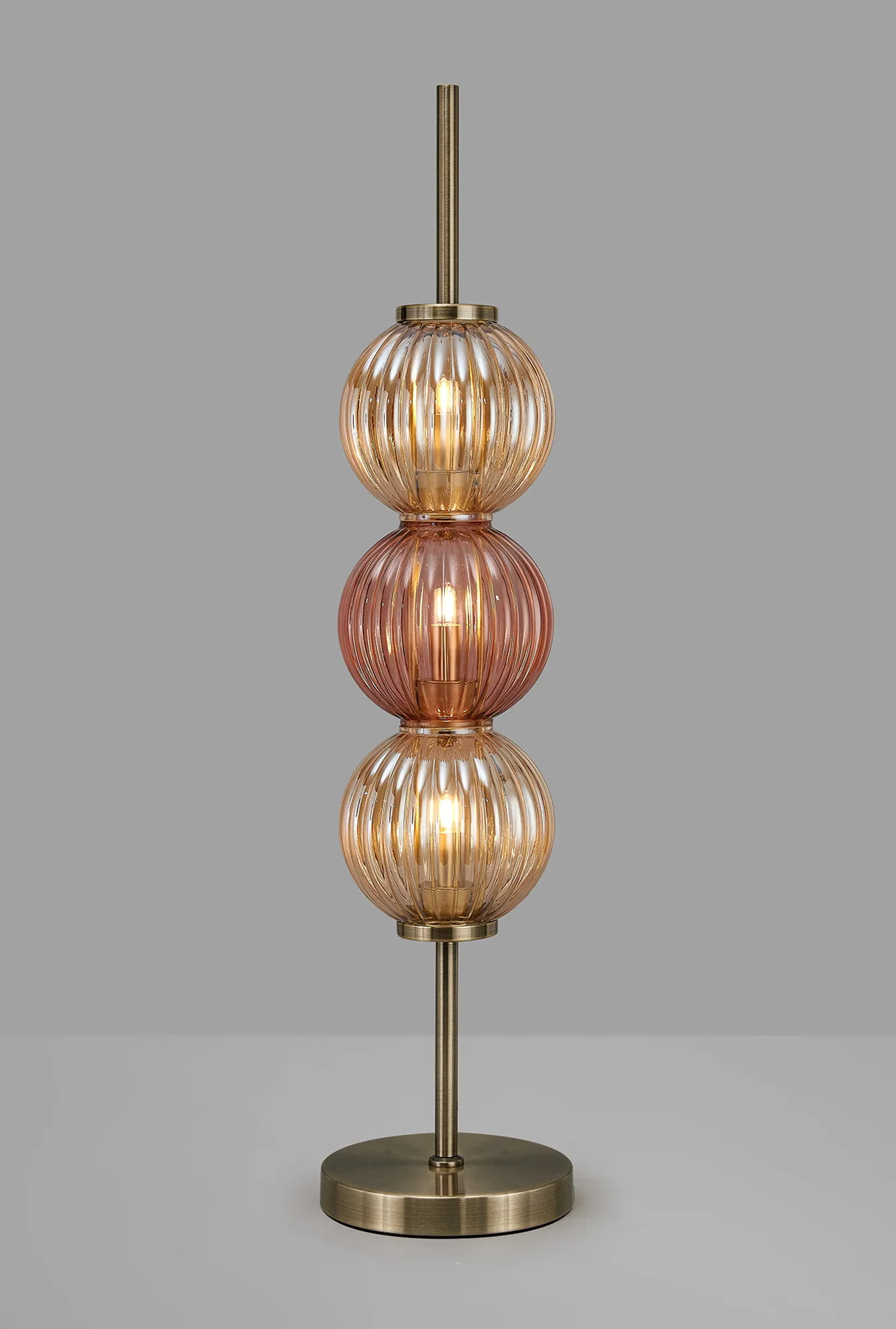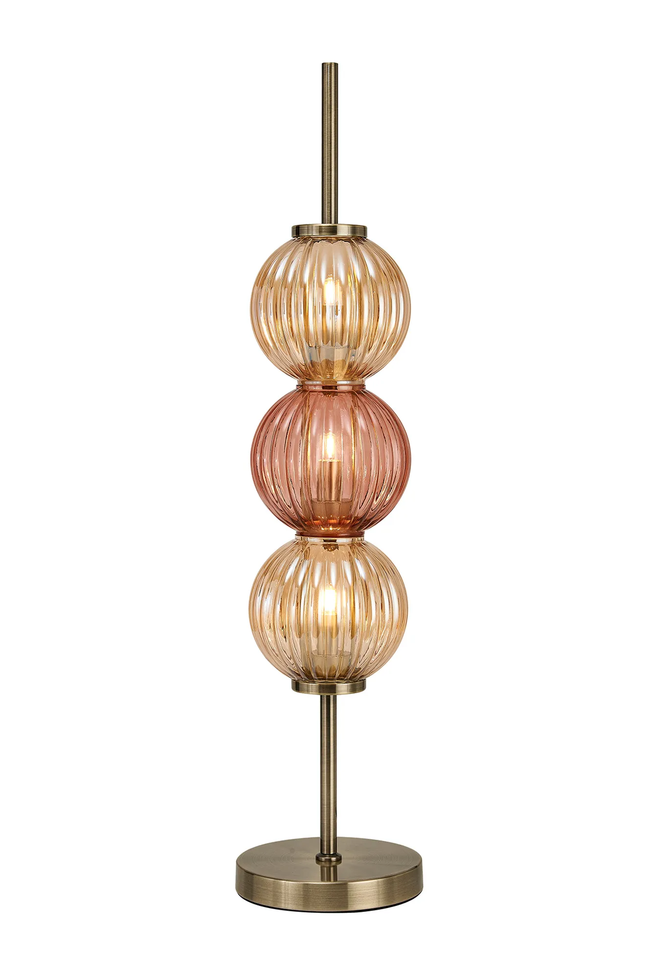 OTHER Leigh Table Lamp, 3 x G9, Antique Brass/Amber/Blush Pink Glass