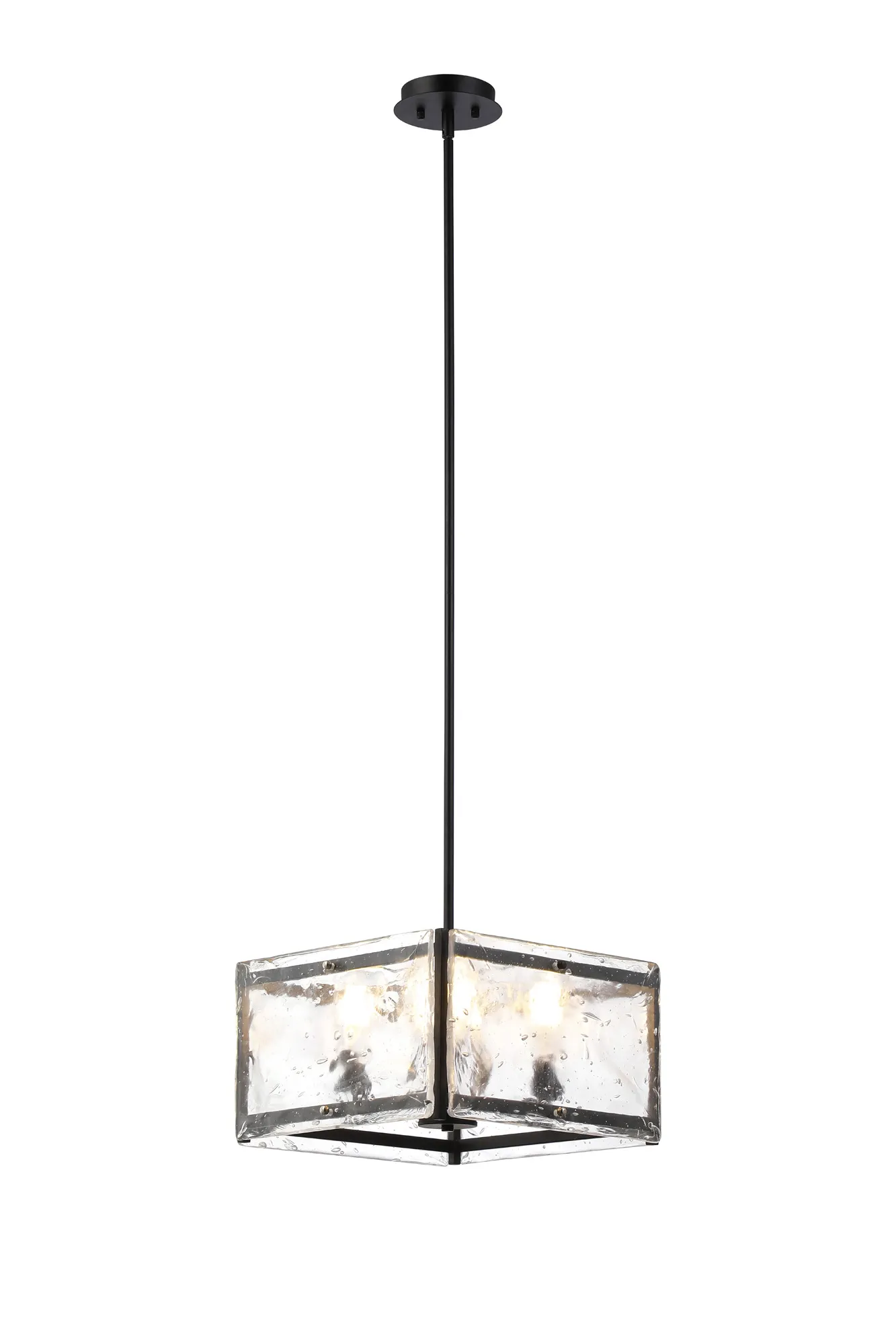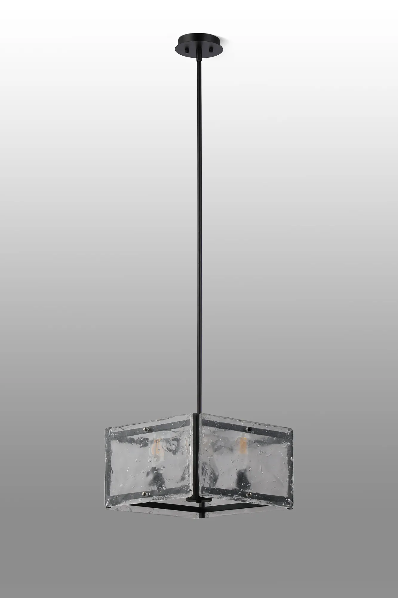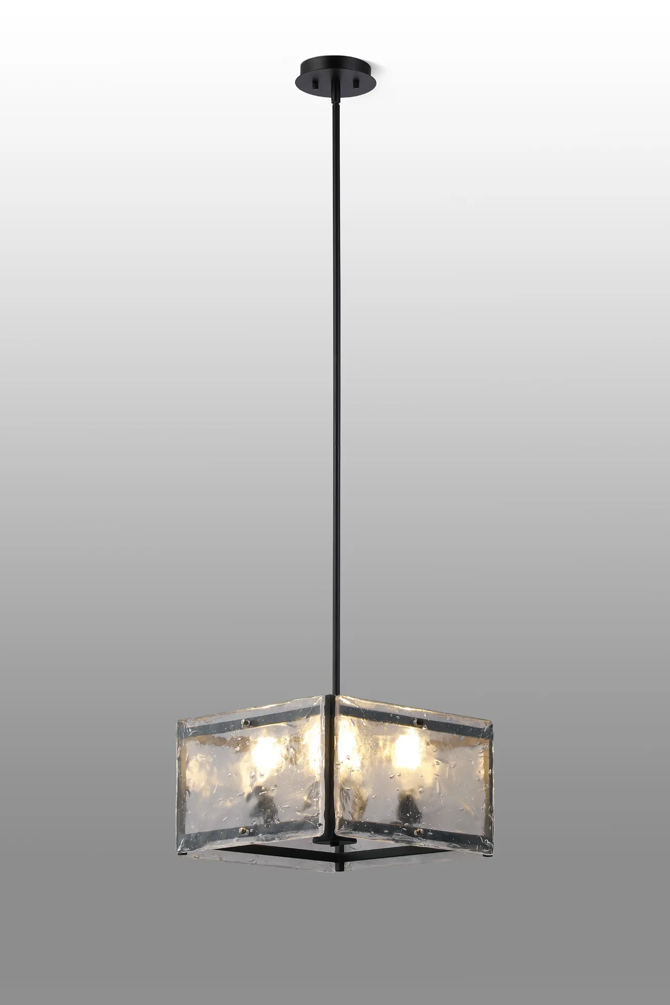 Vernon presents an E27 glass lantern design with more unique character. The fixed semi flush convertible pendants are available in either a matt black or satin nickel colour finish. Forming a three dimensional square shape, the glass panes are a true eye catching feature. Each clear piece is created with a glacial ice effect imitating all the natural ripples and water bubbles that looks enchanting when illuminated.