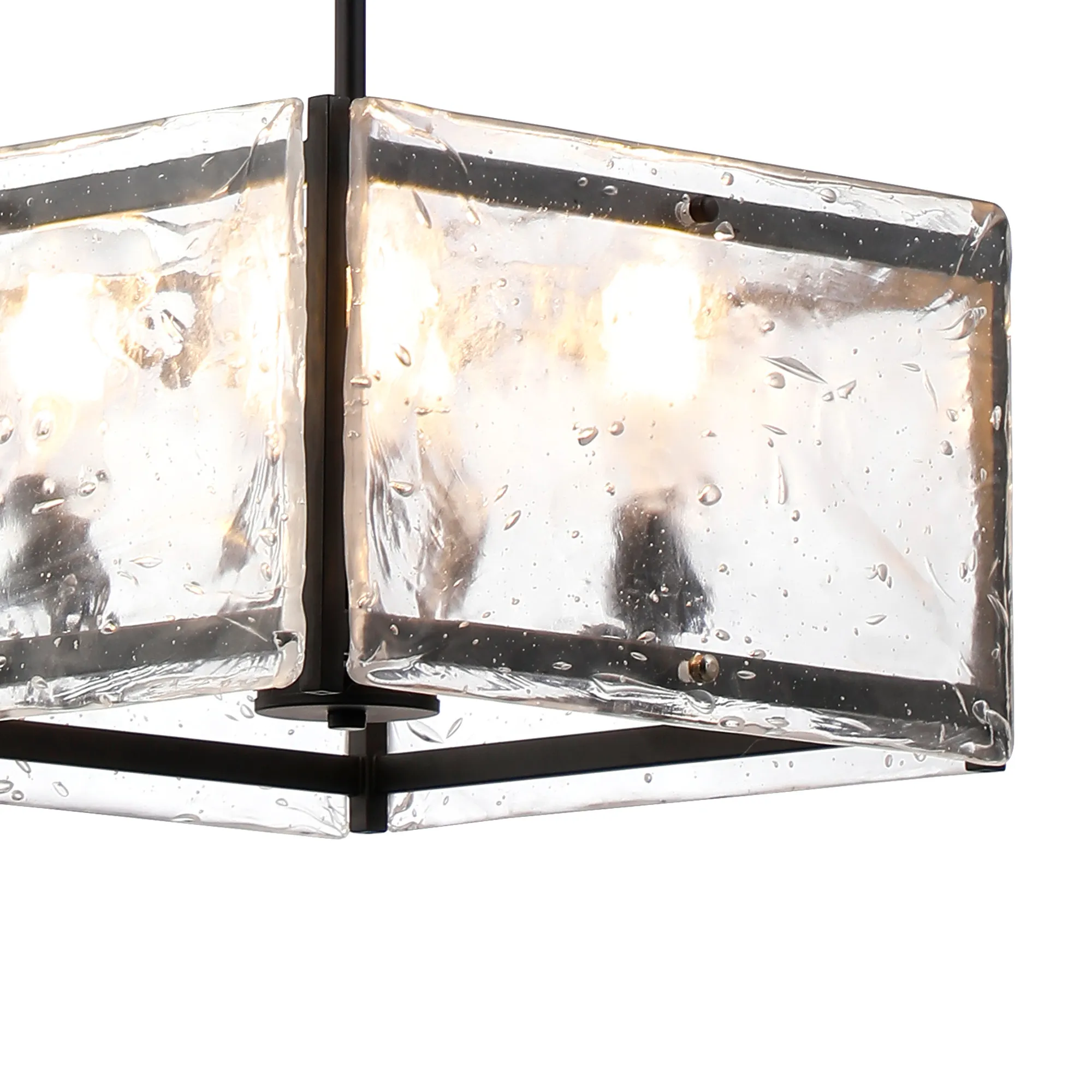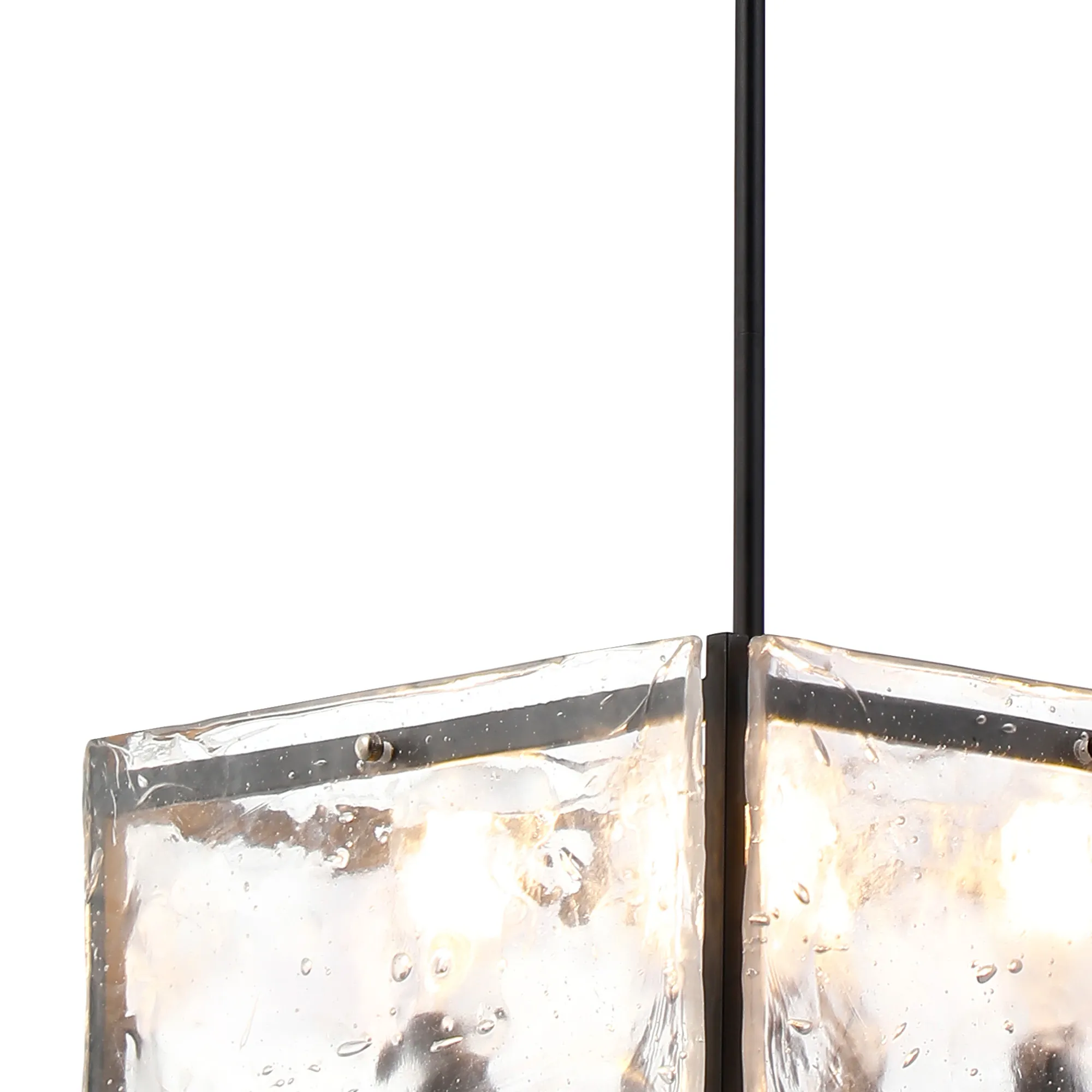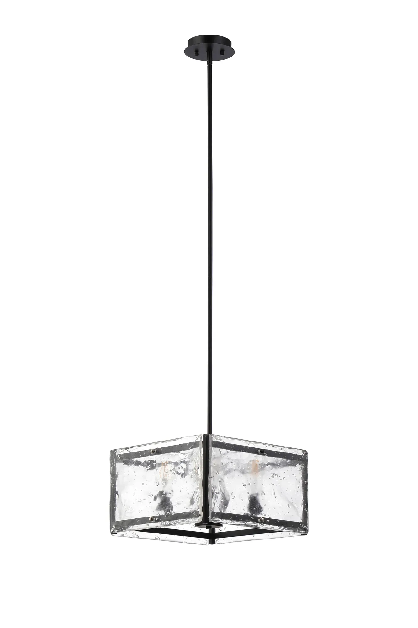 Vernon presents an E27 glass lantern design with more unique character. The fixed semi flush convertible pendants are available in either a matt black or satin nickel colour finish. Forming a three dimensional square shape, the glass panes are a true eye catching feature. Each clear piece is created with a glacial ice effect imitating all the natural ripples and water bubbles that looks enchanting when illuminated.