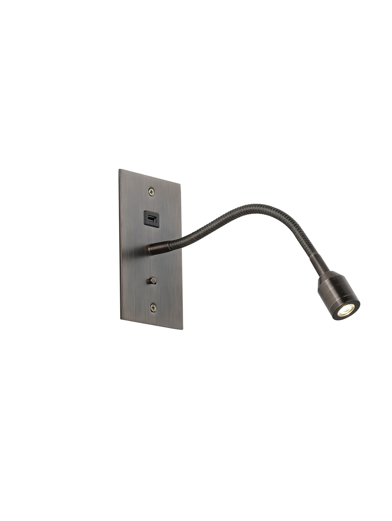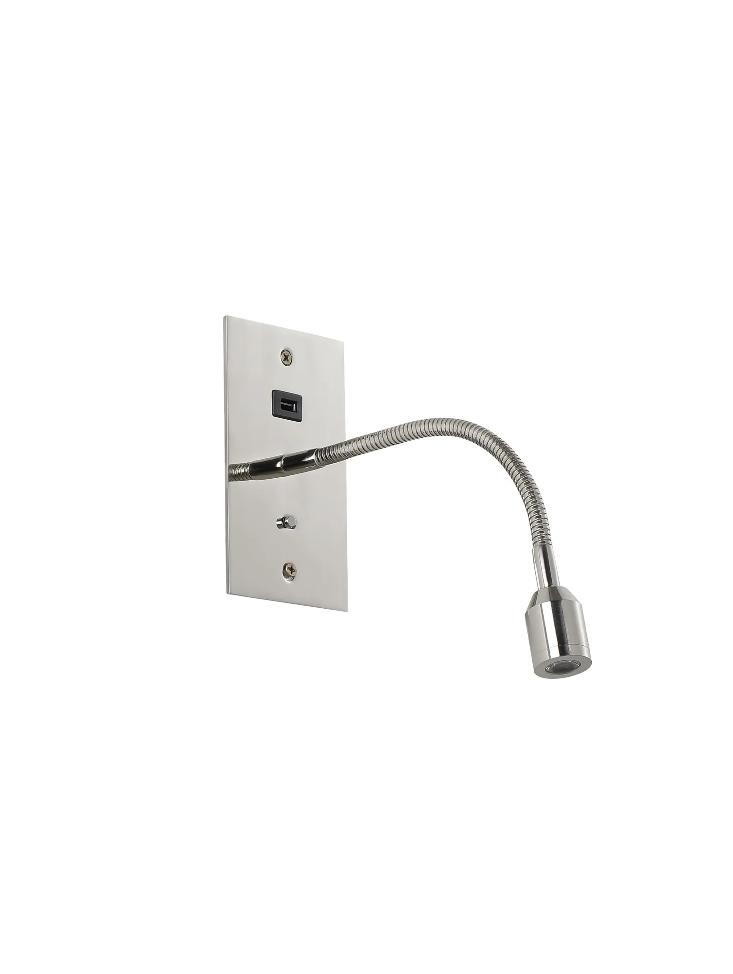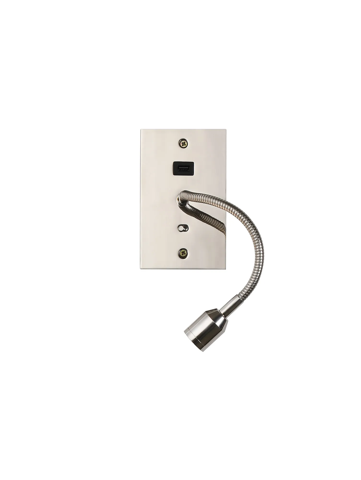 Victoria USB Wall Lamp, 1 Light Adjustable Switched Fits A Standard Double Socket Box, 1 x 3W LED, 3000K, 270lm, Satin Nickel, 3yrs Warranty