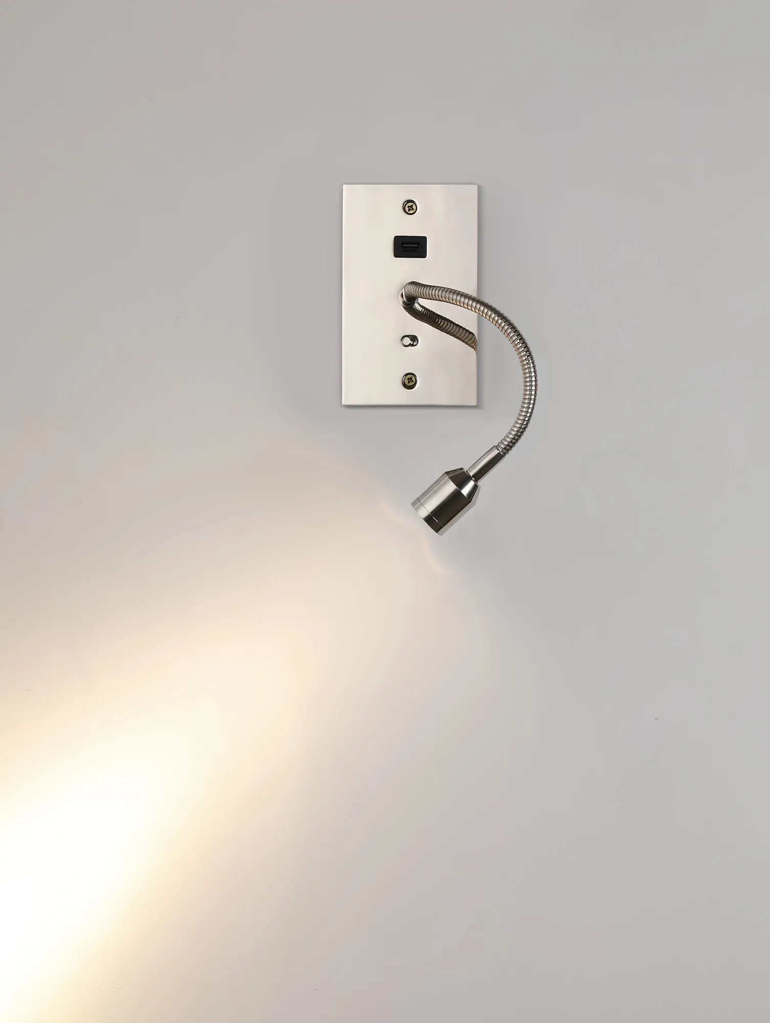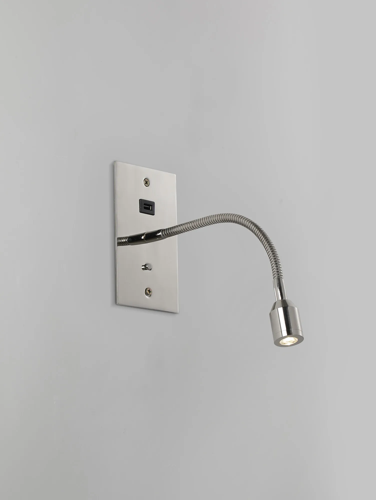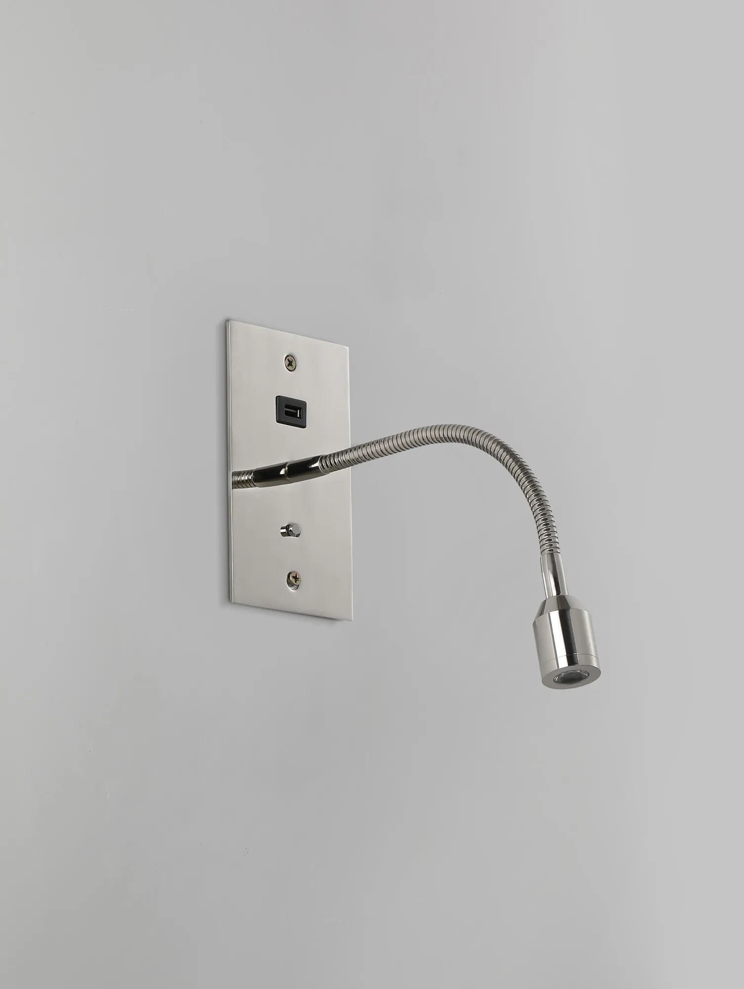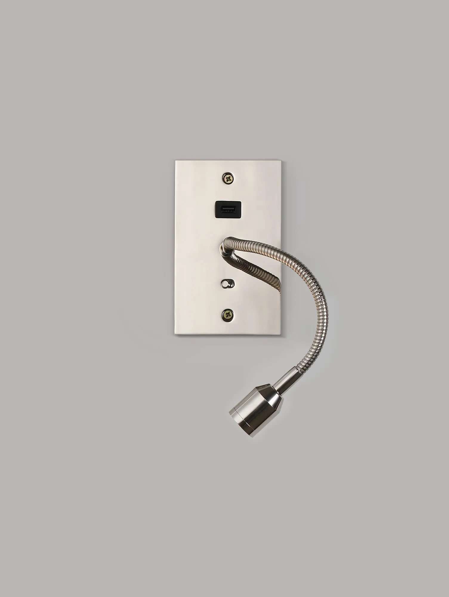 Victoria USB Wall Lamp, 1 Light Adjustable Switched Fits A Standard Double Socket Box, 3W LED, 3000K, Satin Nickel