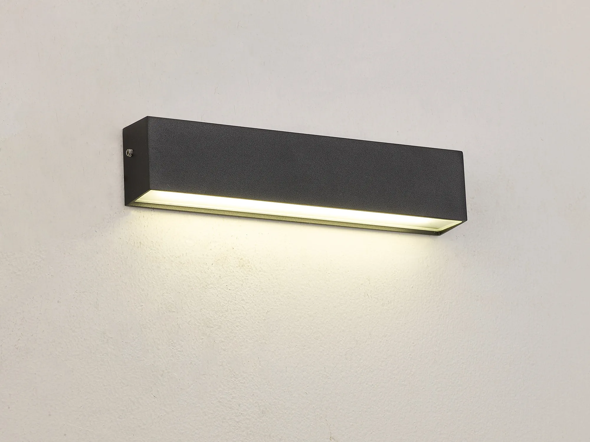 Available in three colour finishes, the Vancouver wall lamps offer a reliable outdoor lighting solution. These IP65 rated fittings are a uniform rectangular shape hosting integral 3000K LEDs. Light is emitted from the frosted diffuser along the longest edge and the narrow projection keeps the beam of light to the downward direction.