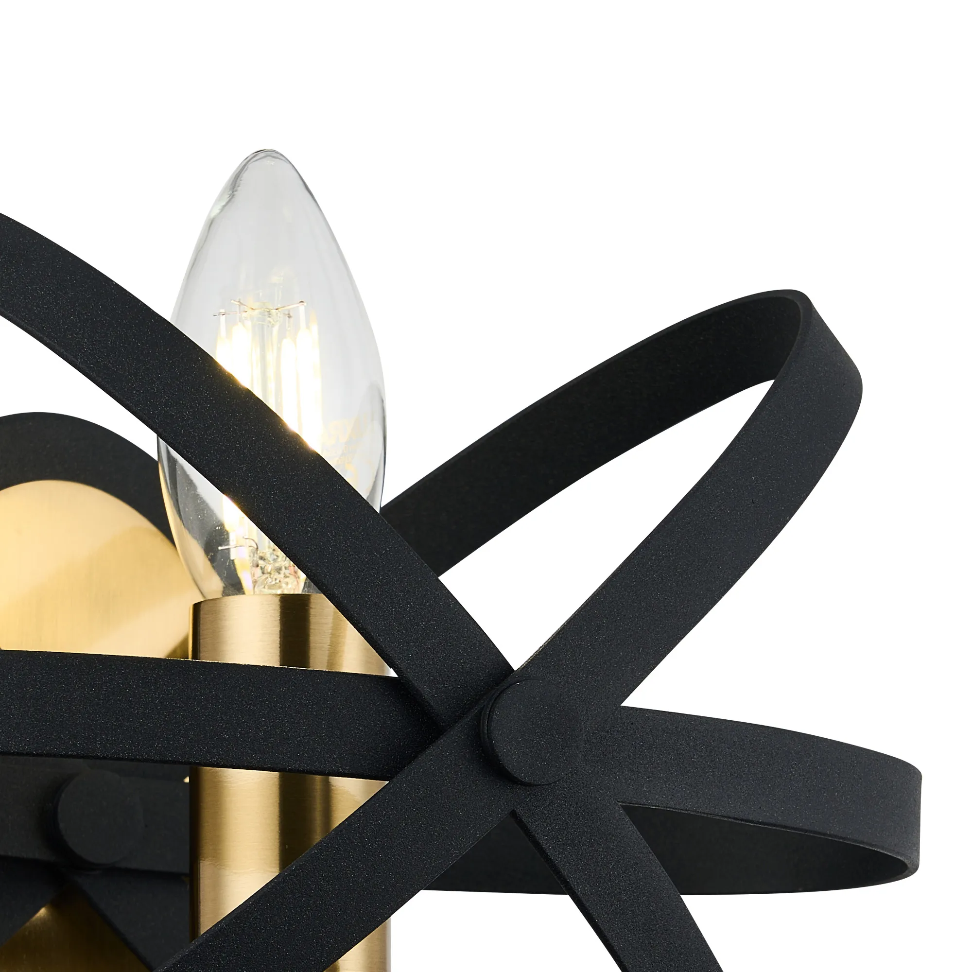 The combination of metallic framework combined with a darker decorative embellishment has proved excessively popular with some of our other ranges. In order to offer more style options within this concept we have now designed the Stronvar range. Mimicking astrological rings, the darker metalwork erratically frames the E14 lamp holders of each fitting. Originally available in a classic black and gold combination, Stronvar also now features a new colour pairing of anthracite and satin nickel.
