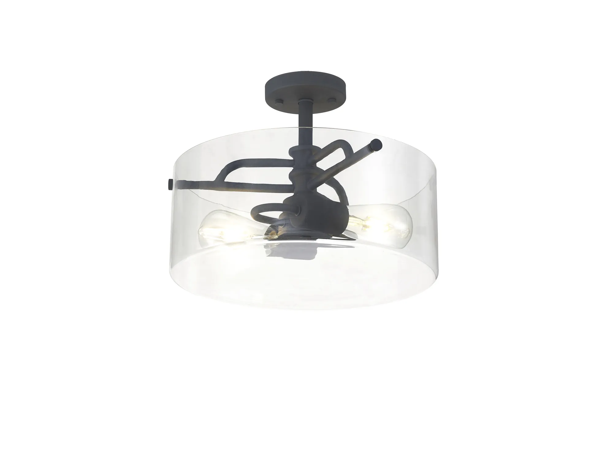 Morden Semi Flush Ceiling, 2 x E27, Antique Brass/Clear Glass