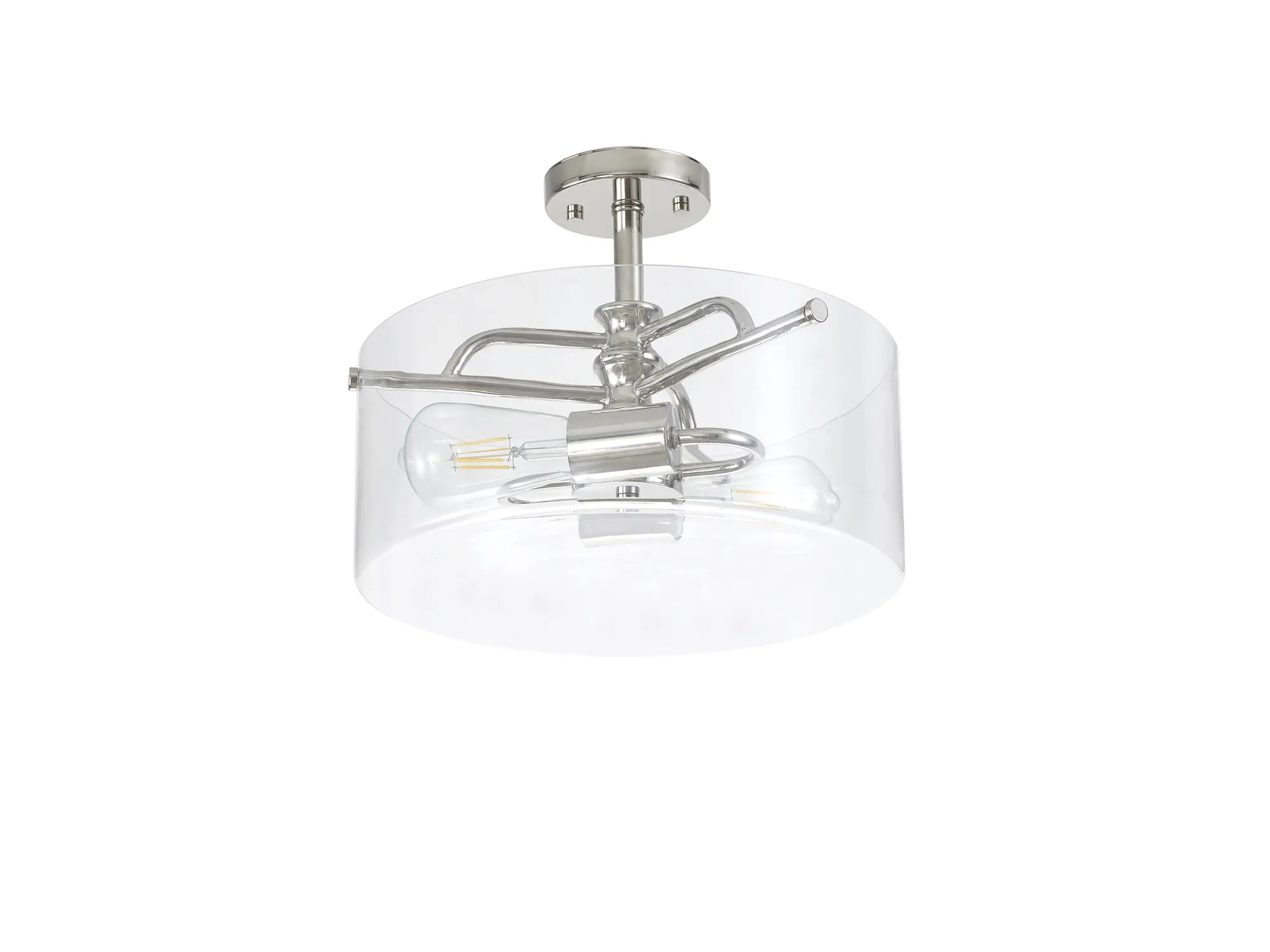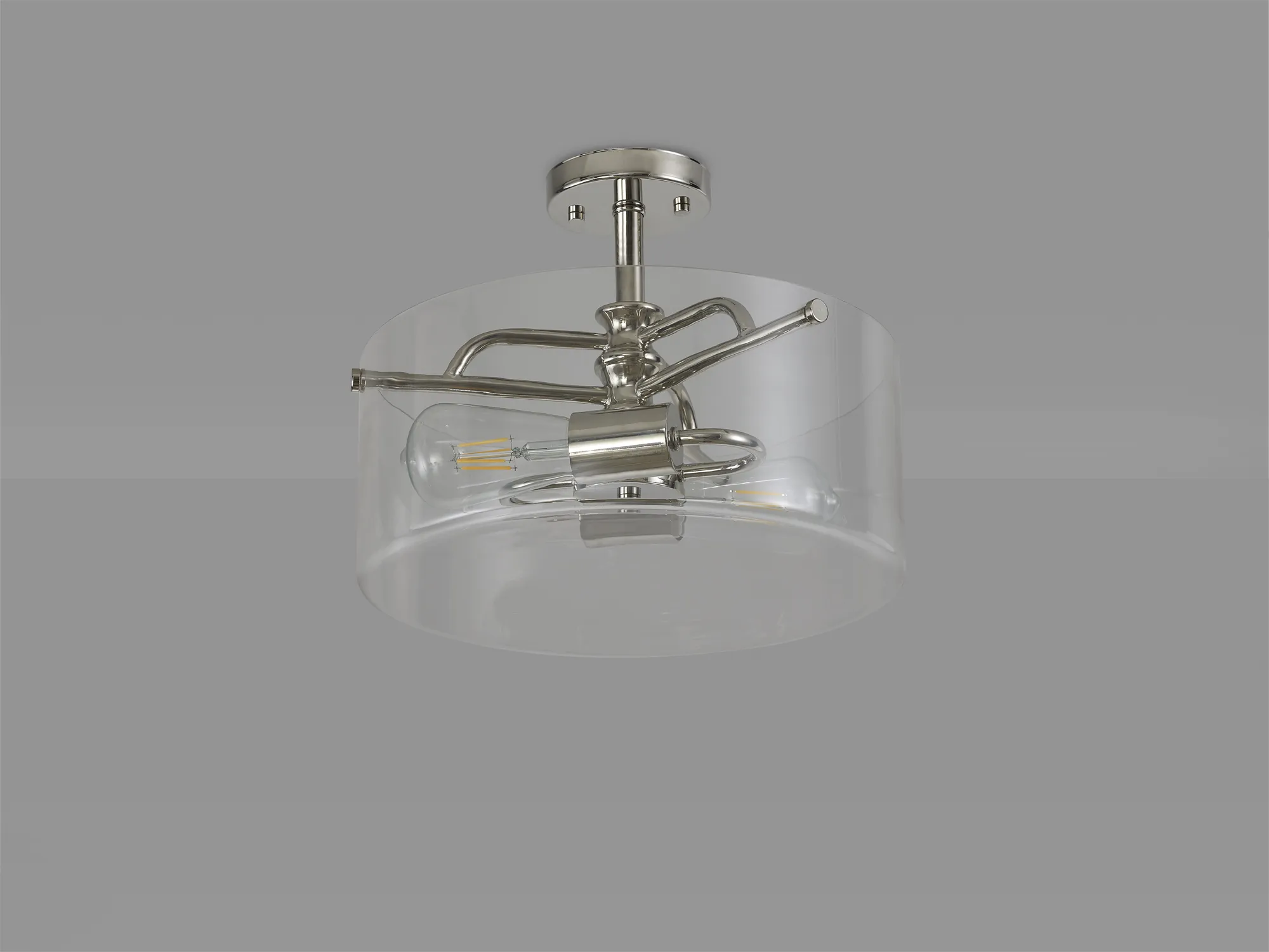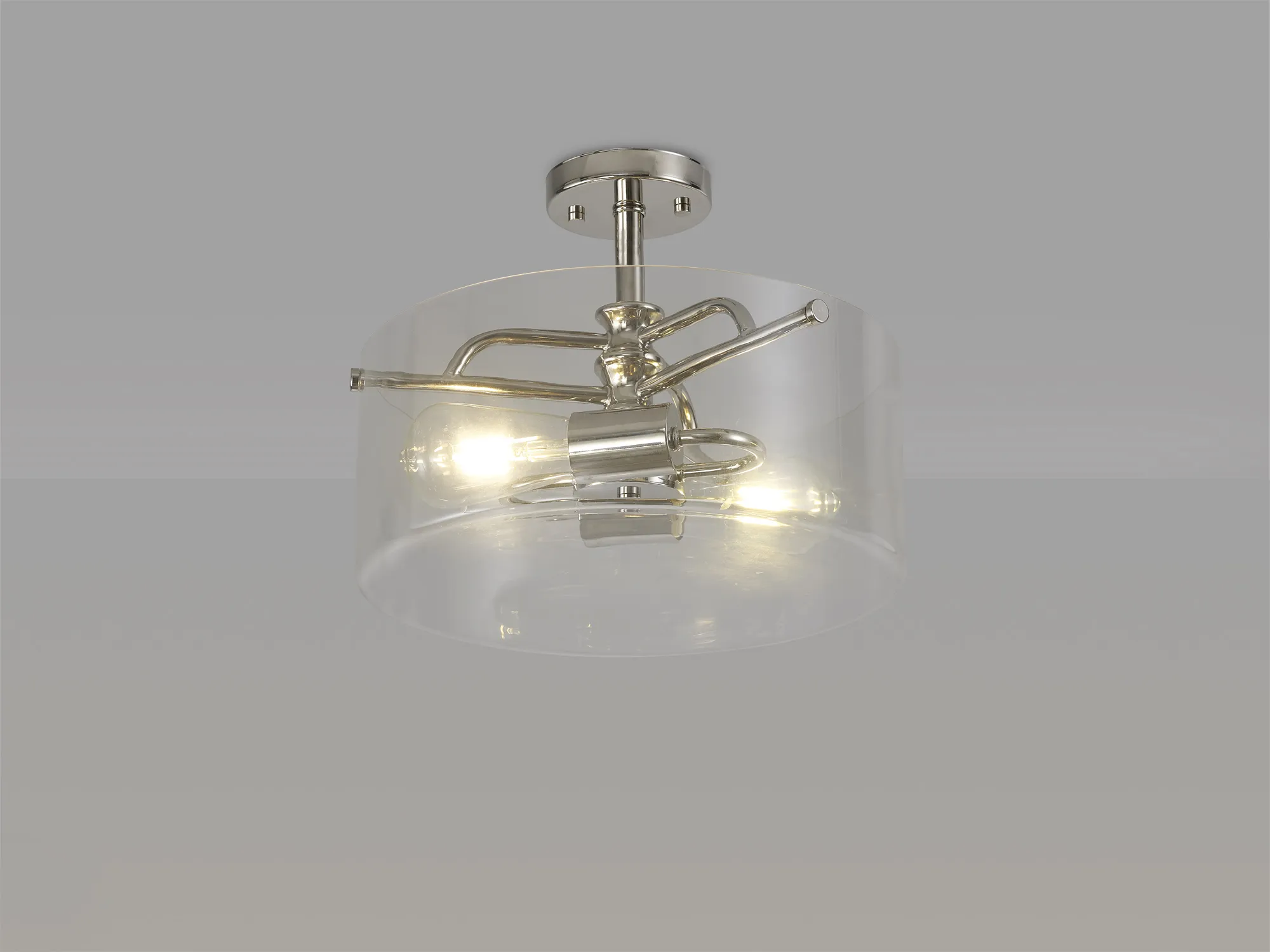 Available in four colour finishes, the Morden collection presents a stylish, two light Semi Flush design. The beautifully formed framework is enhanced and accentuated by the substantial glass diffuser. This high quality clear glass not only offers a more ambient dispersal of light, but with its clean cut and depth, also contributes to the ranges aesthetics a whole. This fashionable contemporary concept is a must to bring elegant illumination to your home, restaurant or office space.