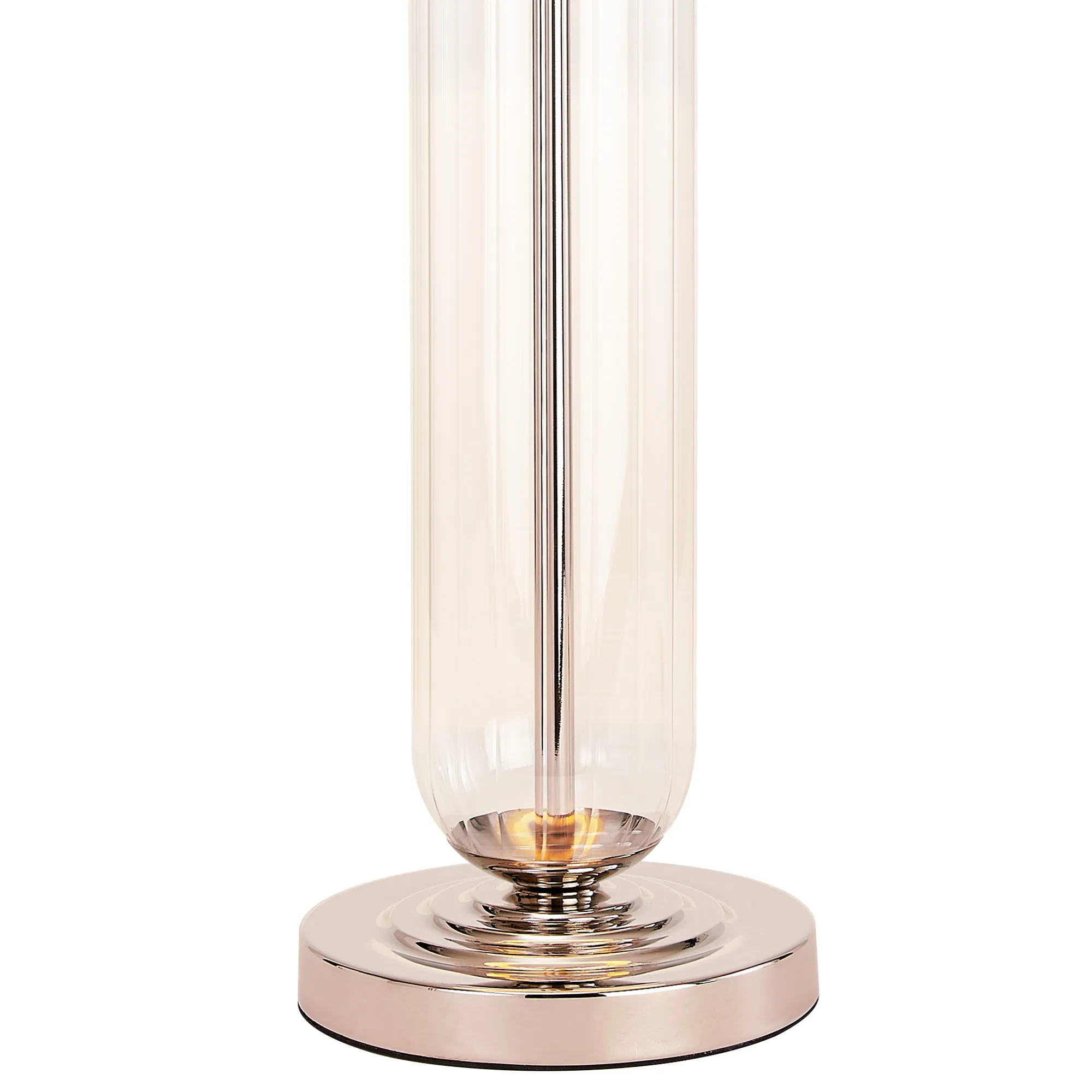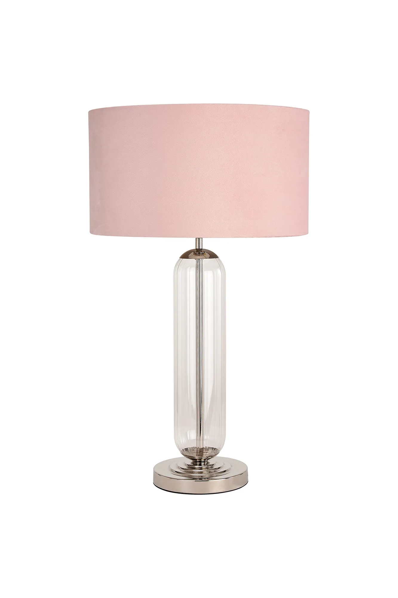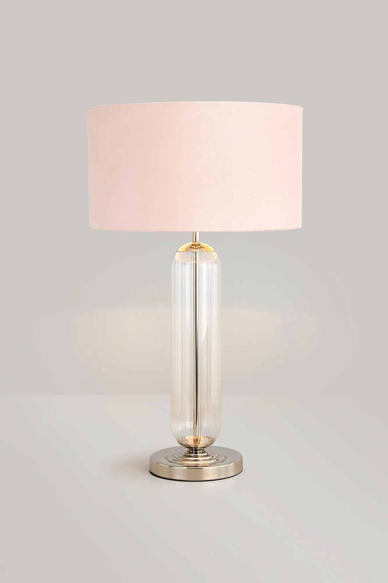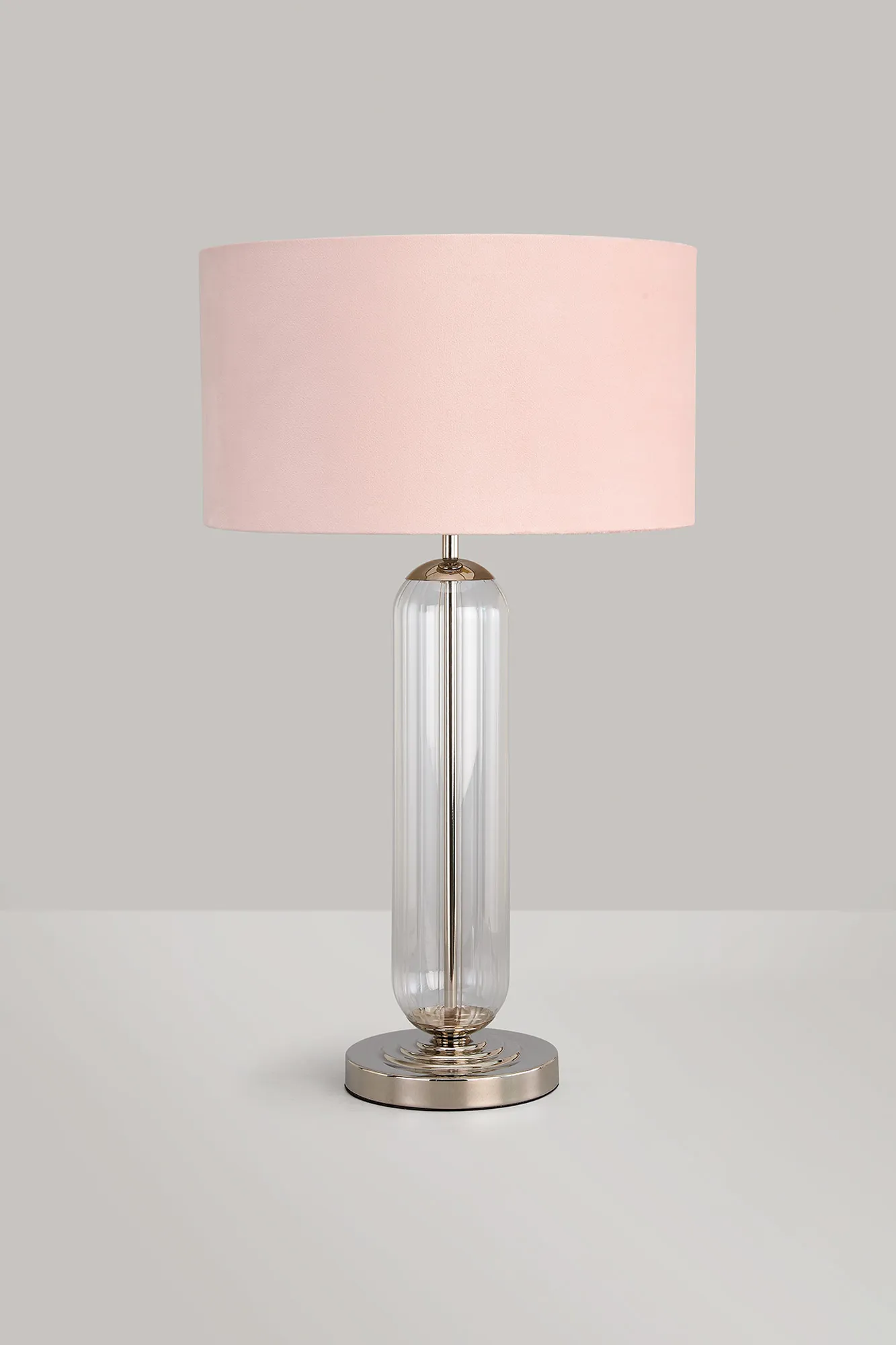 Thompson Tubular Table Lamp, 1 Light E27, Polished Nickel/Smoke Fade Glass/Light Grey 40cm Velvet Shade