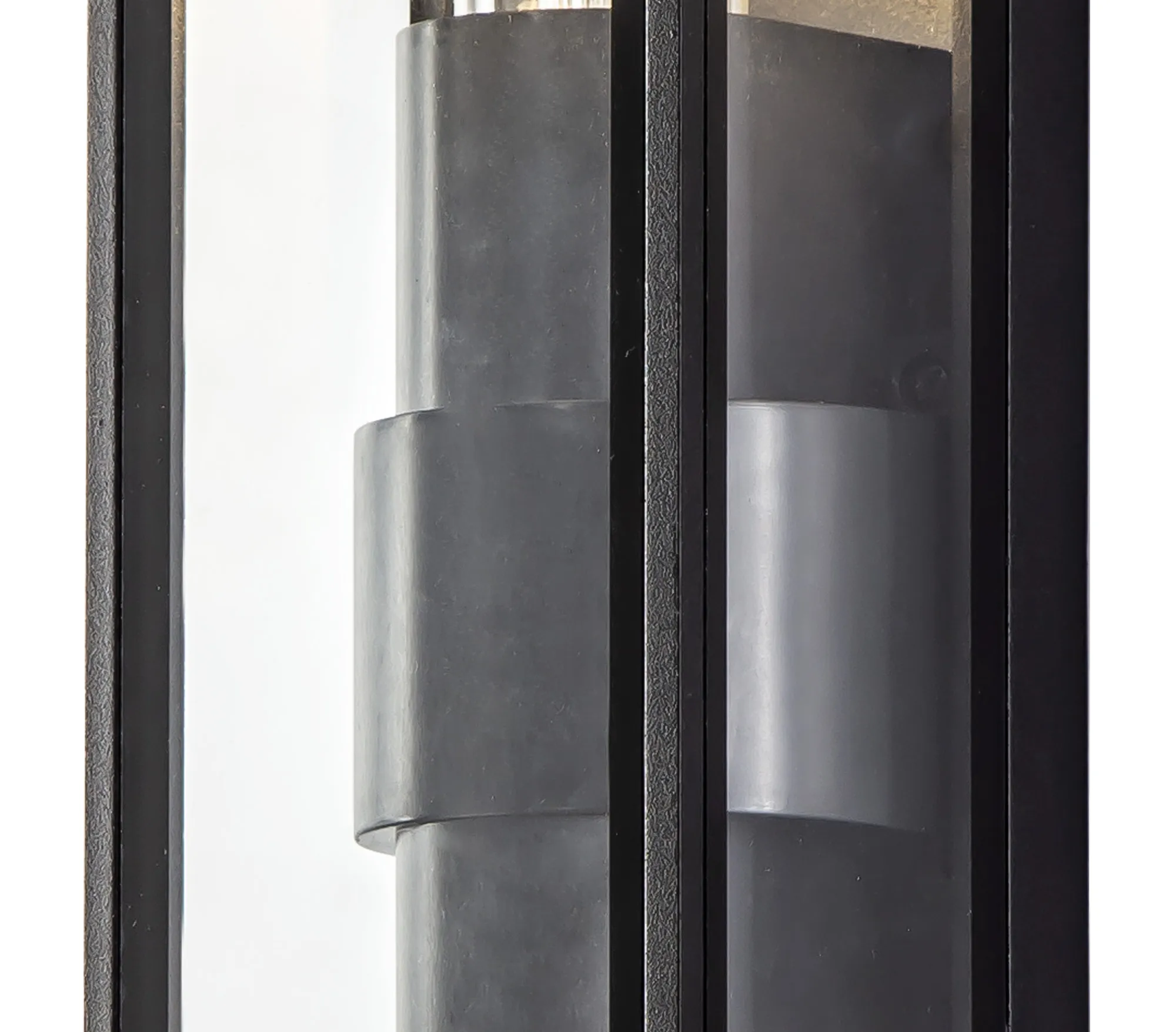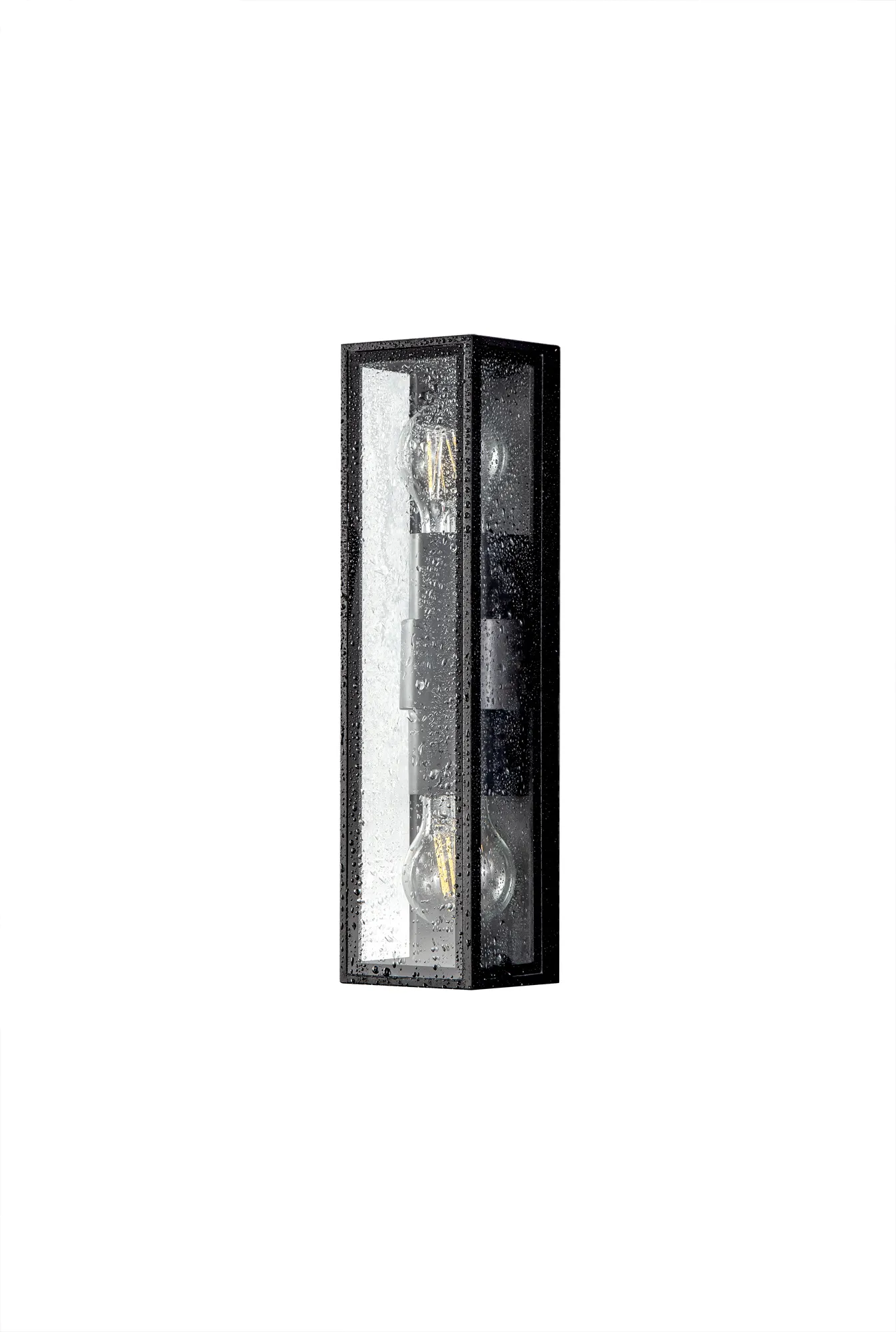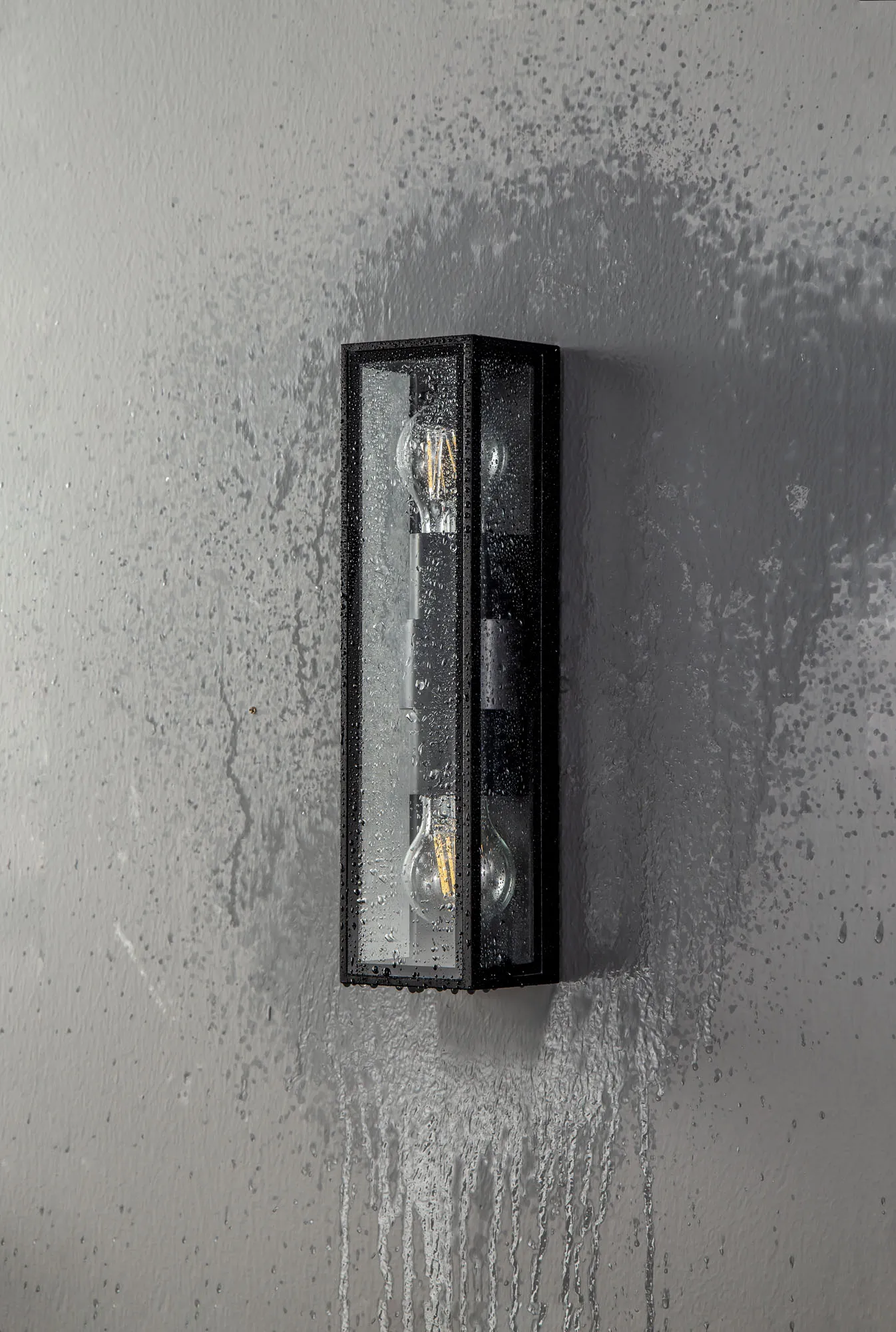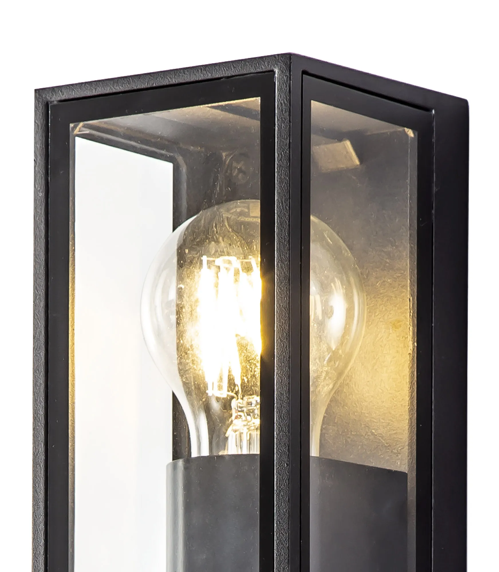 Each IP65 rated wall lamp in the Winkler range have a similar outer structure. The display casing concept sees a clear glass box housing the E27 lamp holders which is framed within an anthracite metal outline. Aswell as the one and two light E27 wall lights Winkler also includes and LED version with frosted diffuser to conceal the high quality integral LEDs.