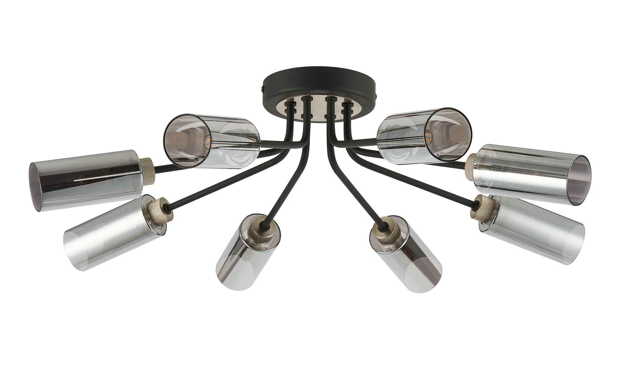 Bathurst uses contrasting colours and diamante detailing to provide an attractive collection of G9 lighting. Ceiling lights, wall, table and floor lamps are available in a satin black with gold finish or anthracite with satin nickel. Each G9 lamp holder is diffused by smoked cylindrical glass adding even more dimension and style.