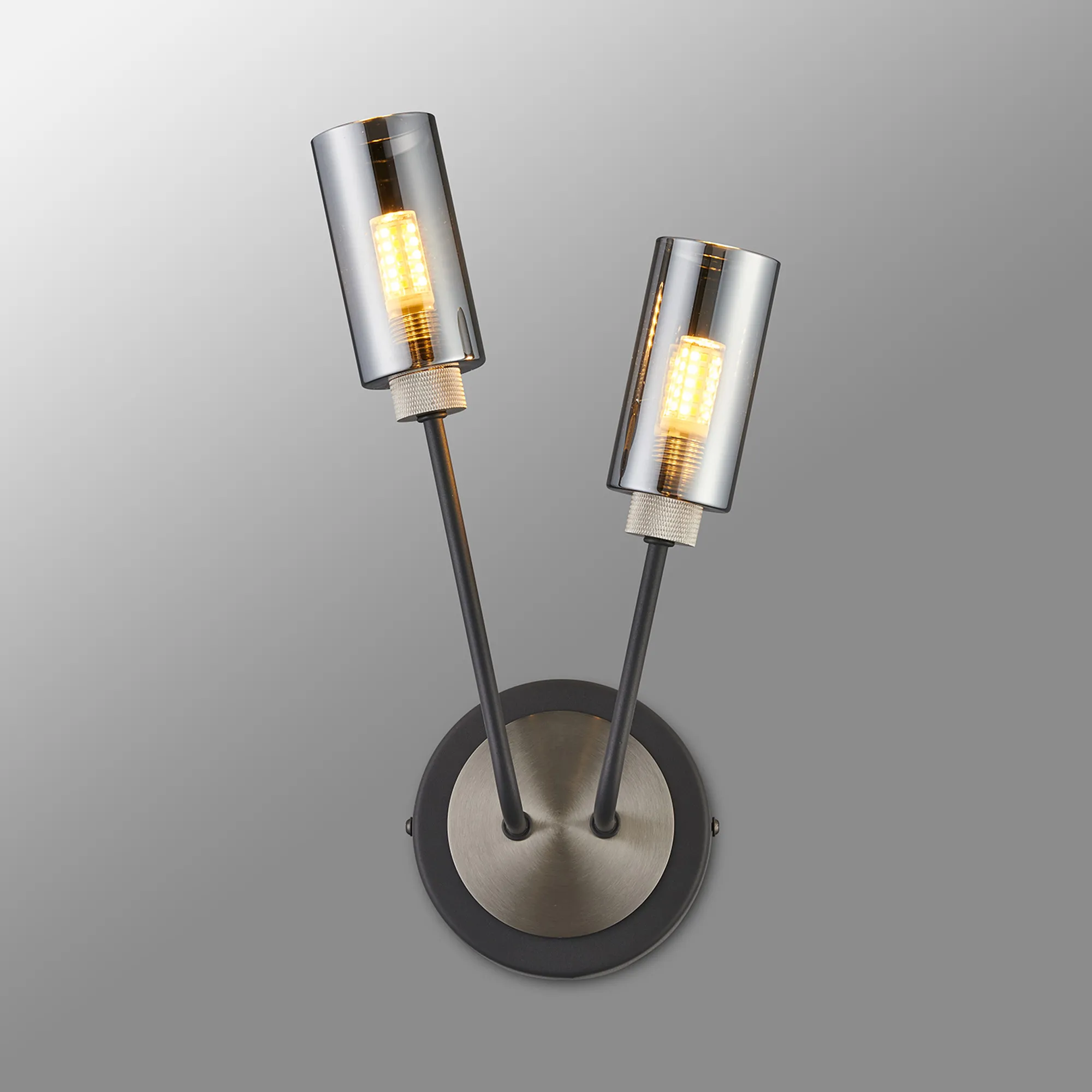 Bathurst uses contrasting colours and diamante detailing to provide an attractive collection of G9 lighting. Ceiling lights, wall, table and floor lamps are available in a satin black with gold finish or anthracite with satin nickel. Each G9 lamp holder is diffused by smoked cylindrical glass adding even more dimension and style.